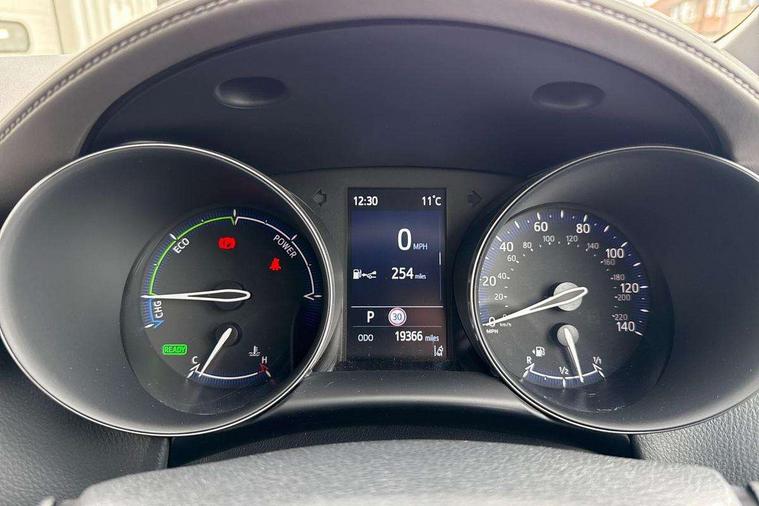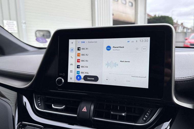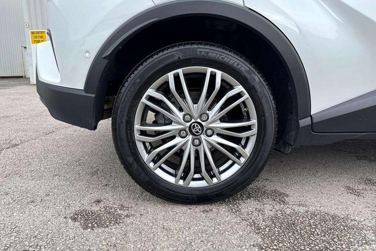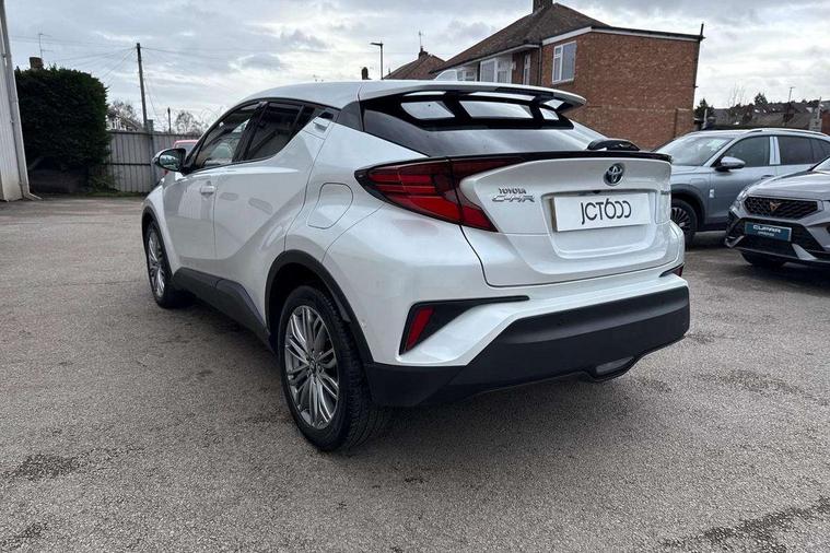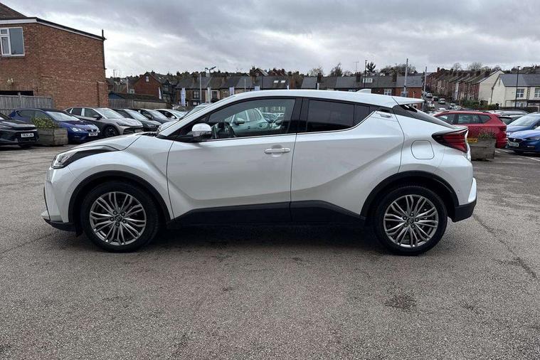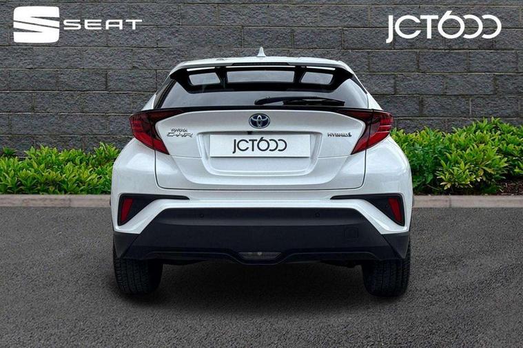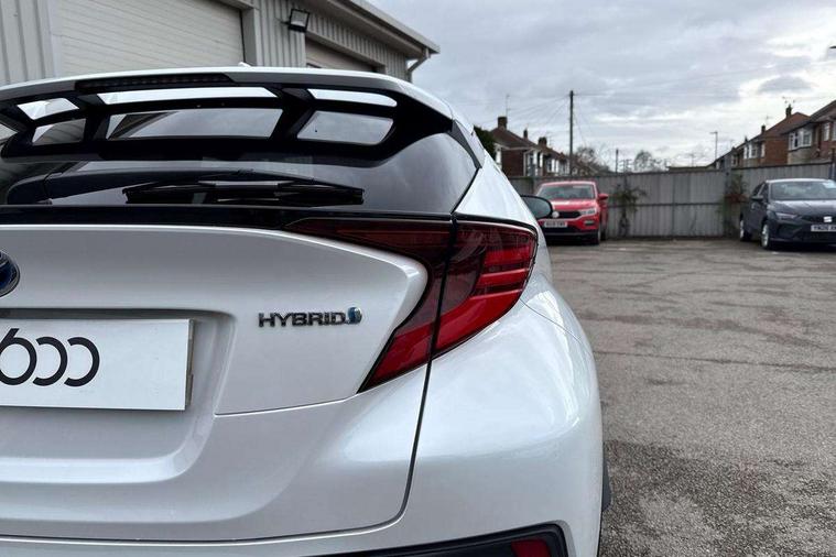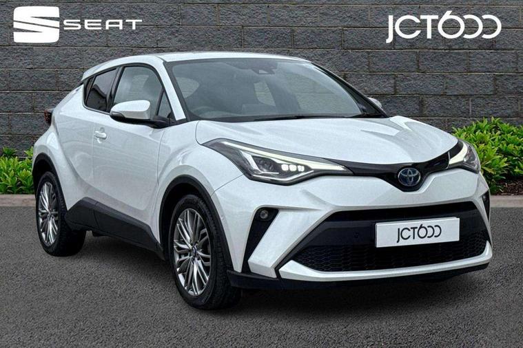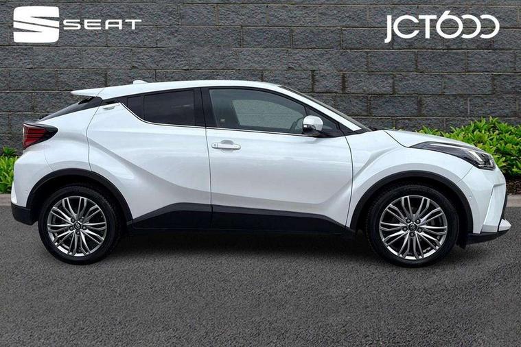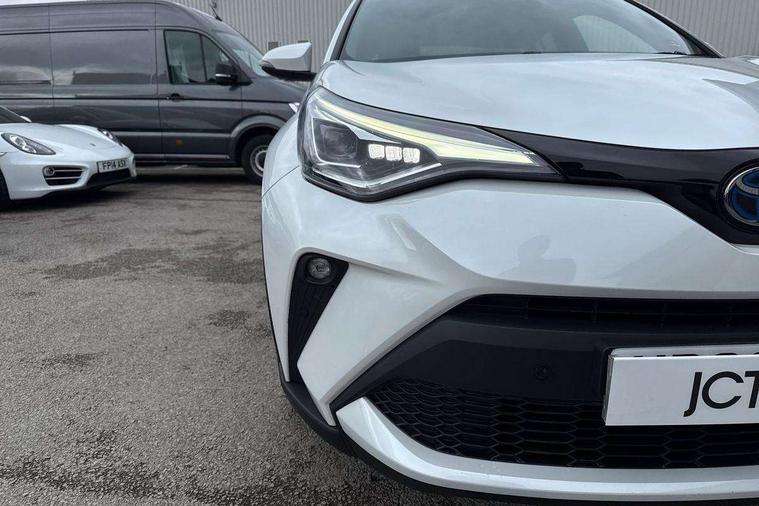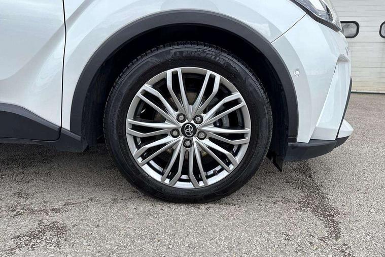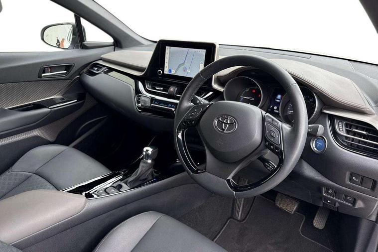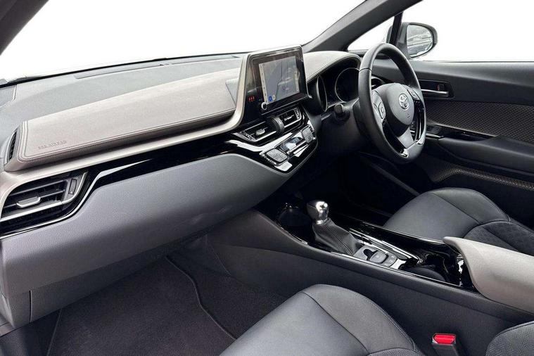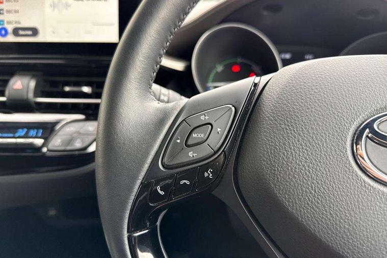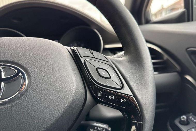 4.2" coloured TFT screen for multi-information display, Adaptive cruise control, Apple car play and Android auto, Bluetooth connectivity, E-call, Electric power steering, Hybrid system indicator, Lane departure alert with steering control, Lane trace assist, Push button tailgate release, Remote boot door release in cabin, Remote boot door release in key, Reversing camera, Road sign assist - RSA, Simple Intelligent parking assist, Smart voice assist, Touch 2 Go navigation system, Trip computer, Voice recognition, Wireless smartphone integration, Vehicle Stability Control (VSC), 6 speakers, AM/FM radio, DAB Radio (Digital Audio Broadcasting), Toyota touch 2 multimedia system with 8" display, USB connector, Wi-fi connectivity, Adaptive front light system, Adaptive LED Headlights, Anti-jam protection on power windows, Auto high beam, Auto up and down function on all power windows, Automatic headlight levelling, Automatic headlights, Automatic headlights cut-off, Black and body coloured rear bumper, Black lower front grille, Black upper front grille, Body colour door handles, Body colour door mirrors, Body colour front spoiler lip, Body coloured front bumper, Boot door release with push button, Electric heated door mirrors, Follow me home headlights, Front and rear power windows, Headlight cut off reminder, Honeycomb lower front grille, LED daytime running lights, LED fog lights, LED front light guide, LED High mounted stop light, LED rear brake lights, LED rear combination lights, Noise reduction layer on front windows and windscreen, Power adjustable door mirrors, Privacy glass, Rain sensor, Rear sequential indicators, Rear side wing doors, Rear spoiler, Rear tailgate, Rear window defogger, Rear window wiper, Shark fin antenna, UV-filter on driver and passenger windows, UV-filter on rear windows, Variable front intermittent wipers, 12v power outlet - front, 3 rear headrests, 3 seat bench in 2nd row, 3 spoke leather steering wheel, 60/40 split folding 2nd row rear seats, Adjustable rear headrests, Adjustable speed limiter switch on steering wheel, Assist grips front and centre pillar, Audio and telephone switches on steering wheel, Black front door assist grips, Blue ambient lighting on front cup holders, Blue ambient lighting on front doors, Boot light, Chrome interior door handles, Driver and front passenger personal light, Driver and front passenger Whiplash Injury Lessening seats, Driver and passenger seatback pockets, Dual zone automatic air conditioning, Floor mats, Front cupholders, Front head restraints, Front sports seats, Glovebox with internal light, Hard tonneau cover, Heated driver and front passenger seats, Heated steering wheel, Hooks for luggage holding net, Humidifying Nanoe air purifier, Illuminated entry system, Isofix attachments on outer rear seats, Leather gearshift, Light on driver sun visor, Light on passenger sun visor, Manual telescopic steering wheel, Manual tilt steering wheel, Microphone on front personal light, Mirror on driver sun visor, Mirror on passenger sun visor, Multimedia switches on steering wheel, Pollen filter, Power adjustable lumbar support on driver seat, Power tilting cushion on driver seat, Shopping bag hooks, Single front passenger seat, Slow opening on lower glovebox, Voice recognition switch on steering wheel, Leather pack - C-HR, Tech with parking sensor pack - C-HR, 16 Disk front wheel brake, 3x3 point rear seatbelts, ABS+EBD+Brake assist, Electronic parking brake, Front and rear seatbelt reminder, Front passenger airbag on/off switch, Hill start assist control (HAC), Pre collision system with pedestrian detection, Pre-tensioners and force limiters, Rear door child safety locks, SRS Airbags - Driver + Front passenger, front side, front and rear curtain and driver's knee airbags, Toyota safety sense, Tyre pressure monitoring system, Tyre pressure warning system, Acoustic vehicle alert system (AVAS), Glass-breaking alarm sensors, Immobiliser, Intrusion alarm, Intrusion sensor, Motion sensor alarm, Power door locks, Power passenger window lock, Remote central locking, Black lower dashboard, Dark brown upper dashboard, Piano black console, Silver deco line on upper dashboard, Tyre repair kit,