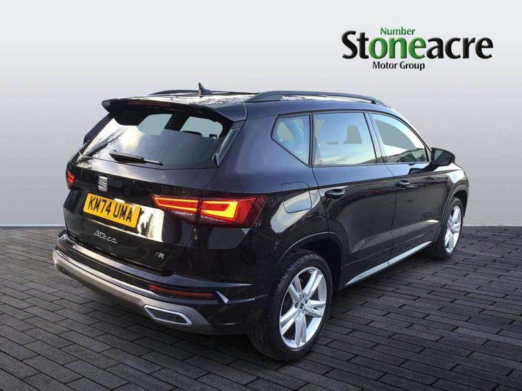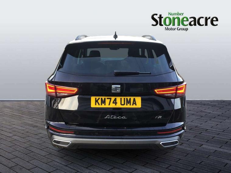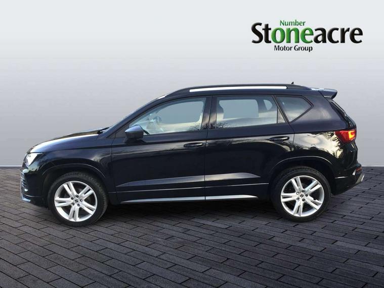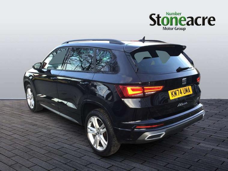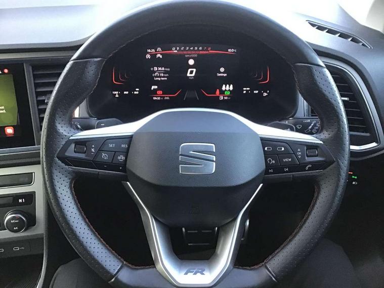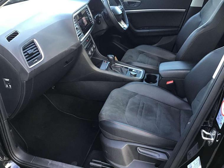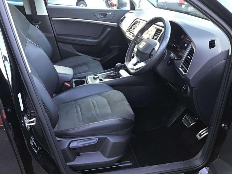 8" Digital cockpit, Colour multi-function on board computer display, Cruise control system with speed limiter, E-call, Outside temperature gauge, Progressive power assisted steering, SEAT drive profile with driving experience button - Normal, Sport, Eco and Individual mode, gearshift, steering and throttle response, Self parking functionality (includes front and rear parking sensors), Start/stop system, Tailgate, Trip computer, wired and wireless full link smartphone integration, Wireless phone charger, Steering wheel mounted audio/phone controls, Black roof rails, Black side window trim, Body colour bumpers, Body coloured wheel arch surrounds, Chrome front grille frame, Dark tinted rear windows, Daytime running lights, Door mirrors with welcome light silhouette, Dynamic headlight range control with self adjusting whilst driving, Electric adjustable/heated/folding door mirrors, Front and rear electric windows, Full LED headlamps with lens and LED front fog lamps with cornering function, Illuminated aluminium front door sill, LED 3rd brake light, LED rear tail lights with dynamic indicators, Rear exhaust tailpipe, Rear fog lights, Rear side wing doors, Rear wash/wipe, Roof spoiler, Variable front intermittent wipers, 12V socket in front, 3 seat bench in 2nd row, 60/40 split folding rear seat, Aluminium pedals, Dinamica upholstery with front comfort seats, Drawer under right front seat, Dual zone climate control, Front and rear head restraints, Front centre armrest, Front seat back storage pockets, Height adjustable driver and passenger seat with lumbar adjustment, ISOFIX points in outer rear seats with top tether anchorage points, Leather sports steering wheel and gear knob, Rear armrest and easy back seat release mechanism from boot, Single front passenger seat, Steering wheel mounted gearshift paddles, Convenience pack - Ateca, Interior lighting pack - Ateca, Navigation system pack with DAB - Ateca, Safety and driving pack with attention and drowsiness assist - Ateca, 3x3 point rear seatbelts, ABS, Traction control system (TCS), Electronic stability control (ESC) and Electronic differential lock system (XDS), Airbags - Driver and front passenger airbag with deactivation, front side, two curtain and driver's knee airbags, Electric parking brake with auto hold function, Front and rear seatbelt reminder, Front assist with autonomous emergency braking, Hill hold control, Manual rear child locks, Single tone horn, Tiredness recognition system, Tyre pressure monitoring system, Alarm, Keyless entry, Locking wheel bolts, Remote central locking, Chrome interior detailing, 18" Brillaint silver alloy wheels,