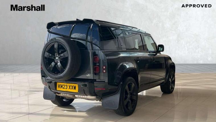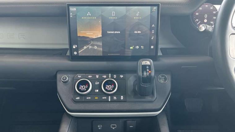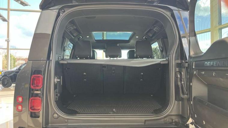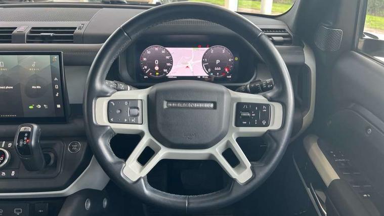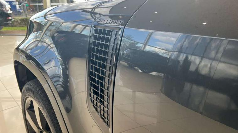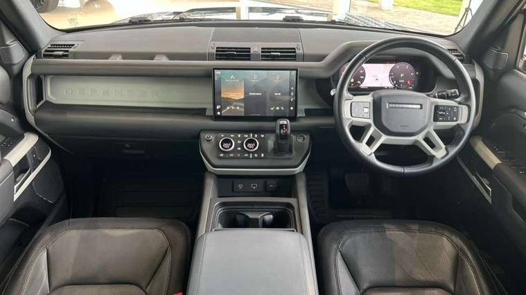 11.4" touchscreen, 360 degree parking aid, 3D Surround Camera with 360 View, 180 Rear View, Front Traffic Detection, Forward Vehicle Guidance, Tow Hitch Assist and clear sight Ground View, Adaptive cruise control, Android Auto, Apple CarPlay, Assisted tailgate with soft close, Blind spot assist, Bluetooth system, Brake pad wear indicator, Clear exit monitor, Connected navigation pro, Driver condition monitor, Electric power assisted steering (EPAS), Interactive driver display, Lane keep assist, Push button start, Rear collision monitor, Rear traffic monitor, Traffic sign recognition with adaptive speed limiter, Trip computer, Wade Sensing, 8 speed automatic transmission, All wheel drive system, Twin speed transfer box, DAB Radio (Digital Audio Broadcasting), Meridian 400w sound audio system with 11 speakers and subwoofer, Pivi pro connected, Automatic headlight levelling, Automatic headlights, Black exposed rear recovery eyes, Centre high mounted stop light, ClearSight interior rear view mirror, Electric heated/power fold door mirrors with approach lights and auto dimming driver side, Electric windows with one touch open/close and anti-trap, Follow me home lighting, Front fog lights, Heated rear window with timer, Heated windscreen, LED tail lights, Privacy glass, Puddle lights, Rain sensing windscreen wipers, Rear fog lights, Rear side wing doors, Rear wiper, Side hinged tailgate, Trailer stability assist, X-Dynamic badge, 12V power socket in loadspace, 14 way heated and cooled electric adjustable memory front seats with 4 way manual headrests, 3 seat bench in 2nd row, Alpine lights, Configurable cabin lighting, Durable rubber cabin flooring, Durable rubber loadspace flooring, Electric reach + rake adjustable steering column, Extended leather upgrade, Footwell lights, Front passenger isofix child seat attachment, Heated steering wheel, Loadspace cover, Loadspace Hook, Multifunction steering wheel, Overhead stowage for sunglasses, Premium cabin lighting, Rear headrests, Rear ISOFIX, Rear reading lights, Single front passenger seat, Standard seat configuration, Storage glovebox, Sunvisors with illuminated vanity mirrors, Online pack with data plan - Defender, 5 x 3 point seatbelts, ABS, Brake hold function, Cornering brake control (CBC), Customer configurable autolock, DSC - Dynamic Stability Control, EBD - Electronic brakeforce distribution, Electric parking brake (EPB), Emergency brake assist, Emergency braking, ESP + traction control, Front airbags with passenger seat occupant detector, HDC - Hill descent control, Hill launch assist, Low traction launch, Power operated child locks, Remote for (e-Call, Optimised assistance call, InControl app, Climate, beep and flash and door), RSC - Roll stability control, Seat belt reminder, TPMS (Tyre pressure monitoring system), Alarm, Immobiliser, Intrusion sensor, Keyless entry, Locking wheel nuts,