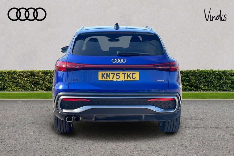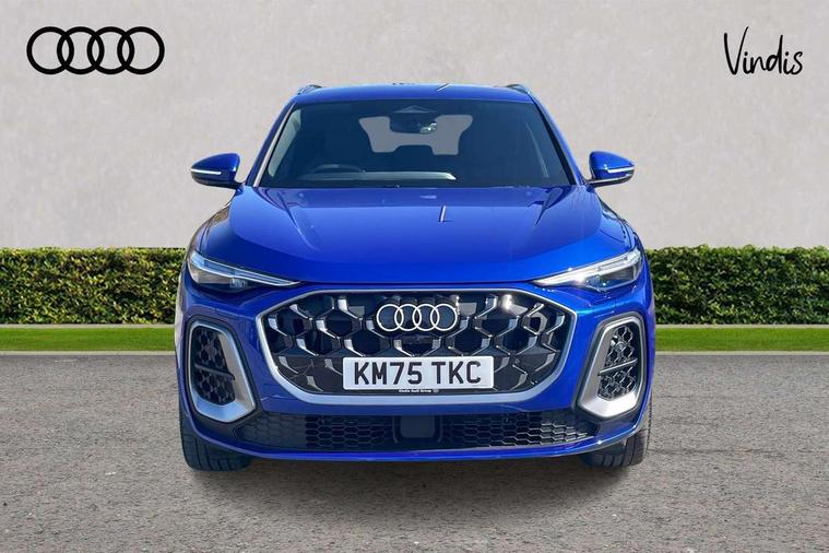 Adaptive cruise control, Attention and drowsiness detection with driver observation, Audi application store, Audi connect emergency call and service, Audi digital key, Audi drive select, Audi smartphone interface, Audi virtual cockpit plus with 11.9" OLED colour display, Camera based traffic sign recognition, Front cross traffic intersection assist, Lane change assistant with exit warning system, rear cross traffic alert and rear turn assist, Lane departure warning system, MMI navigation plus with high resolution 14.5" OLED touchscreen colour display, Park assist plus, PAS, Reversing camera, Swerve assist and front turn assist, Traffic sign based speed limiter, Audi sound system impressive sound with 8 loudspeakers including centre speaker and subwoofer, 6-channel amplifier with a total output of 180 watts, DAB Digital radio, Smartphone compartment with wireless charging, Aluminium roof rails, Auto dimming rear view mirror, Body coloured door mirrors, Electrically adjustable heated and folding + automatically dimming exterior mirrors, Front and rear electric windows, Front door sill trims with aluminium inlays, illuminated with 'S' logo, Grill frame, inlay and front air inlets in matt anthracite chrome, Headlight cleaning system, Heated rear window, High beam assist, High gloss window surrounds, LED headlights plus incl. digital DRL, dynamic coming and leaving home function with turning/all weather/motorway/manouevring and intersection lights, LED rear lights pro incl. dynamic rear indicators and illuminated light strip with animated coming and leaving home function, Logo projection light in exterior mirrors, Privacy glass, Projection third brake light for rear window in LED, Radiator grille in phantom black, Rear and side windows with heat insulating glass, Rear honeycombe grille in matt black with inlay in matt anthracite chrome, Rear side wing doors, Rear wash/wipe, S Line badge on the front wings, S line bumpers in contrasting Volcano grey metallic paint finish, Windscreen with acoustic glazing, 3 rear head restraints, 3 seat bench in 2nd row, 3 spoke leather steering wheel with multi-function buttons with touch control, flattened on top and bottom, with S badging and contrast stitching, 4 way electric lumbar support for driver and front passenger, Black carpets, Comfort centre armrest front, Deluxe 3 zone electronic climate control, Front and rear floor mats, Front sport seats with integrated head restraints, Headlining in black cloth, i-Size child seat mounting on the front passenger side and outer rear seats, i-Size and top tether on the outer rear seats, Increased charging capacity for USB ports 2X100 Watts in rear, 2X60 Watts in front, Interior trim in aluminium look, Luggage compartment lid, electrically opening and closing, Manual steering column adjustment, S embossed logo on front sport seats, Single front passenger seat, Softwrap in black, Stainless steel pedals and footrest, Steering wheel grips in perforated leather and shift paddles, Ambient lighting package plus - Q5, Rear seat bench plus pack - Q5, Storage and luggage compartment pack with luggage net - Q5, 3x3 point rear seatbelts, ABS, Acoustic vehicle alerting system, Convenience key with safelock, Driver and front passenger airbag with passenger airbag deactivation, Electric child safety locks, First aid kit with warning triangle and high visibility vests, Front emergency brake assist, Front side airbags with head airbag system and front interaction airbag, Hill hold assist, Rear seat occupant reminder, Tyre pressure loss indicator, Anti-theft wheel bolts, Thatcham approved category 1 anti theft alarm, Accent surfaces and control buttons in gloss black, Anthracite matt brushed aluminium inlays with linear embossing, Black dashboard with contrast stitching, Upper and lower interior elements in artificial leather, Tyre repair kit,