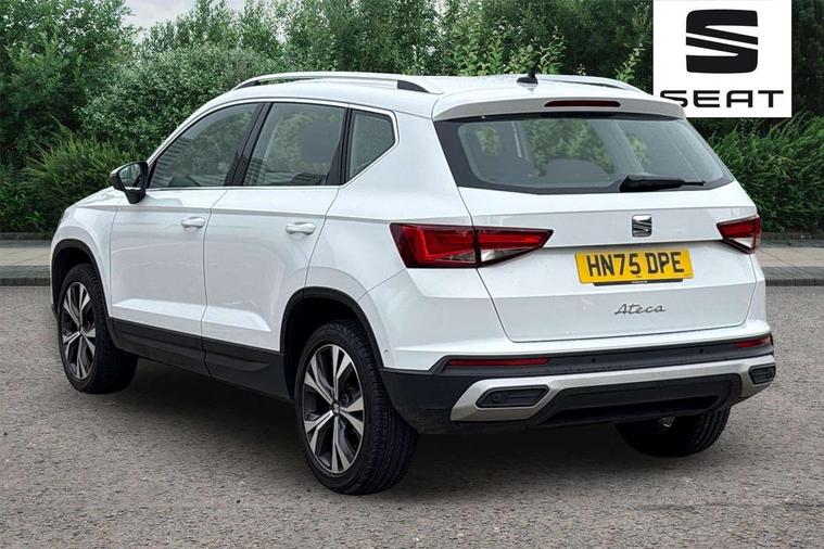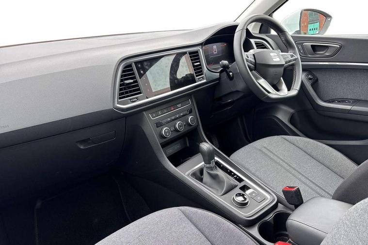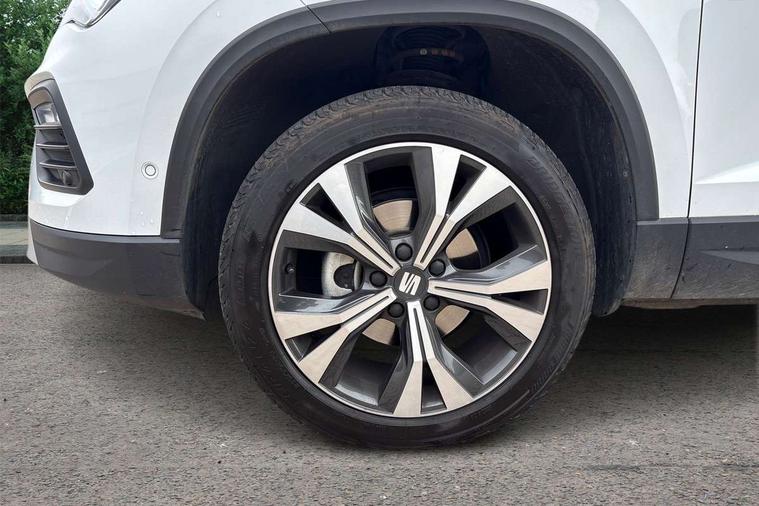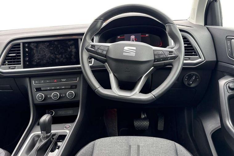 8" Digital cockpit, Bluetooth audio streaming with handsfree system, Cruise control system with speed limiter, E-call, Outside temperature gauge, PAS, Rear view camera, SEAT drive profile with driving experience button - Normal, Sport, Eco and Individual mode, gearshift, steering and throttle response, Self parking functionality (includes front and rear parking sensors), Start/stop system, Tailgate, Trip computer, wired and wireless full link smartphone integration, Wireless phone charger, Steering wheel mounted audio/phone controls, Black side window trim, Black wheel arch surrounds, Body colour bumpers, Chrome front grille frame, Chrome roof rails, Daytime running lights, Door mirrors with welcome light silhouette, Dynamic headlight range control with self adjusting whilst driving, Electric adjustable/heated/folding door mirrors, Front and rear electric windows, LED 3rd brake light, LED headlamps with lens and LED front fog lamps with cornering function, LED rear tail lights with dynamic indicators, Rear exhaust tailpipe, Rear fog lights, Rear side wing doors, Rear wash/wipe, Variable front intermittent wipers, 12V socket in front, 3 seat bench in 2nd row, 60/40 split folding rear seat, Cloth upholstery with front comfort seats, Drawer under right front seat, Dual zone climate control, Front and rear head restraints, Front centre armrest, Front seat back storage pockets, Height adjustable driver and passenger seat with lumbar adjustment, ISOFIX points in outer rear seats with top tether anchorage points, Leather sports steering wheel and gear knob, Rear armrest and easy back seat release mechanism from boot, Single front passenger seat, Steering wheel mounted gearshift paddles, Convenience pack - Ateca, Interior lighting pack - Ateca, Navigation system pack with DAB - Ateca, Safety and driving pack with attention and drowsiness assist - Ateca, 3x3 point rear seatbelts, ABS, Traction control system (TCS), Electronic stability control (ESC) and Electronic differential lock system (XDS), Airbags - Driver and front passenger airbag with deactivation, front side, two curtain and driver's knee airbags, Electric parking brake with auto hold function, Front and rear seatbelt reminder, Front assist with autonomous emergency braking, Hill hold control, Manual rear child locks, Single tone horn, Tyre pressure monitoring system, Alarm, Keyless entry, Locking wheel bolts, Remote central locking, Chrome interior detailing, 18" Performance machined alloy wheels 36/2 in nuclear grey, Tool kit,