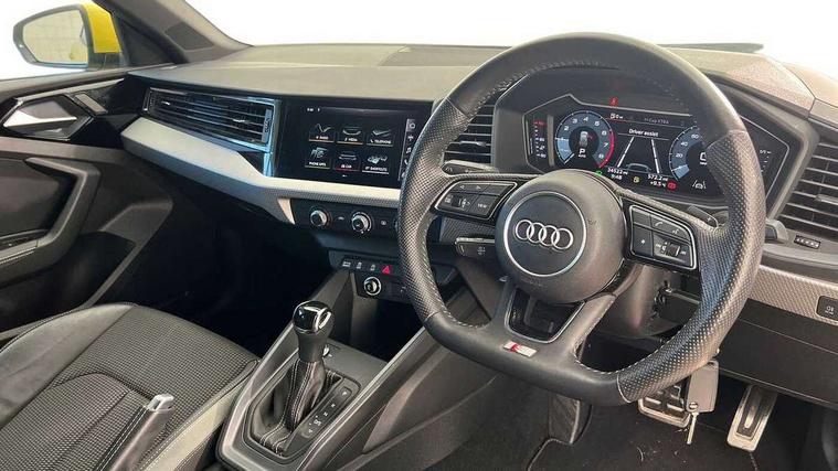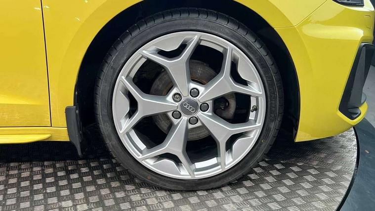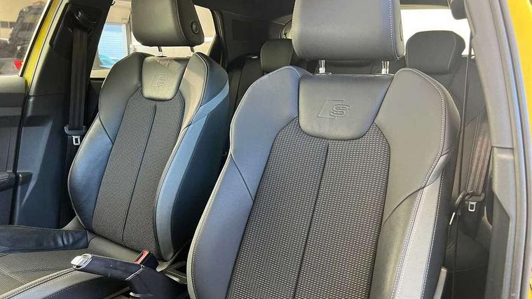 10.25" Digital instrument cluster display screen, Audi connect safety emergency and service including E-call, Audi drive select, Audi smartphone interface, Automatic start/stop system, Bluetooth interface, Driver's information system, Electromechanical power steering, Lane departure warning system, Service interval indicator, Speed limiter, Voice control system, Washer fluid level indicator, Sports suspension, 1 x SDXC card reader, 1 x USB type C and 1 USB type A charging points, Audi music interface, Bluetooth audio streaming, DAB Digital radio, MMI radio plus with 8.8" colour MMI display screen and MMI touch, Auto dimming rear view mirror, Body colour side sill mouldings, Body coloured bumpers, Body coloured door mirrors, Door sills with aluminium inlays and S Line logo, Electric front and rear windows, Front side air inlets in grained matt black and C frame in titanium black, Heat insulating glass windscreen and side windows, Heated rear windscreen, LED headlights with LED rear lights + dynamic rear indicators, Matt aluminium silver tailpipe trim, Matt black radiator grille frame, Matt platinum grey in front spoiler clip and rear diffuser clip, Rain and light sensors, Rear fog lights, Rear wiper, S line badges on front wings, S line exterior bumpers, S line roof spoiler, Side air inlet frames titanium black, Side front spoiler lips in grained matt black, 12V socket in centre console with two cup holders, 3 rear seats, Black cloth headlining, Driver and passenger seat with manual height adjust with forward and backwards adjustment, Front and rear black floor mats with contrast stitching in fine silver, Front head restraints, Height and reach adjustable steering wheel, ISOFIX child seat mounting in front passenger and rear outer seats, Leather gear knob with aluminium trim, Leatherette handbrake grip, Luggage compartment light with front and rear reading lights, Lumbar adjustment for front seats, Rear head restraints, Split folding rear seats, Stainless steel pedals, 3x3 point rear seatbelts, Audi pre-sense front with pedestrain and cyclist recognition, Brake assist function, Driver and front passenger airbag with front side and head airbags, Electronic Stability Control including ABS, EBD, ASR and EDL, Front and rear seatbelt reminder, Front passenger airbag deactivation switch, Hill hold assist, Seatbelt height adjustment for front seats, Seatbelt monitoring, Tyre pressure warning light, Warning triangle and first aid kit, Anti theft alarm, Anti theft wheel bolts and loose wheel warning, Immobiliser, Remote central locking with 2 remote folding keys, Aluminium trim for control switches, air vents and digital instrument cluster, Silver grey inlays polygon structure in diamond paint finish, Structured grey accent areas including air vents, door handle recesses and centre console in quartz paint finish,