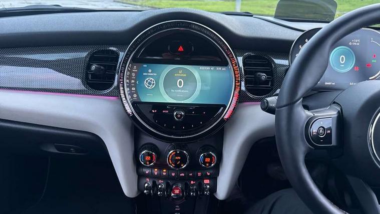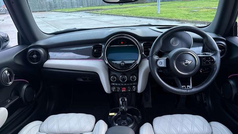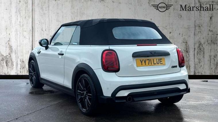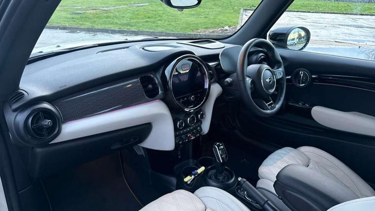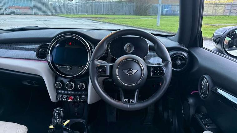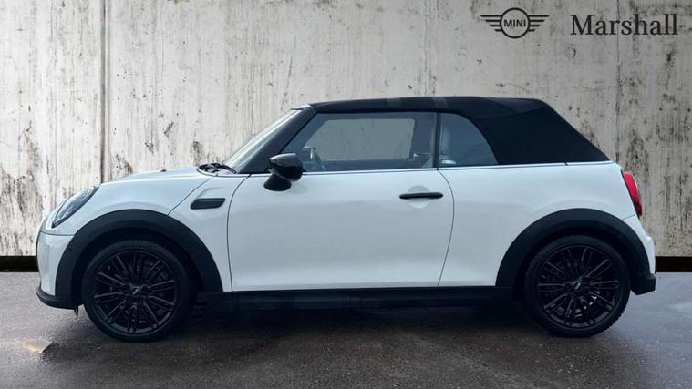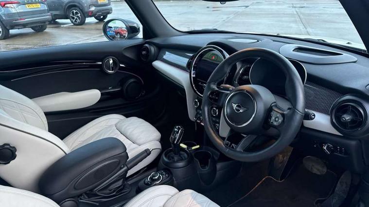 Apple CarPlay, Automatic start/stop function with brake energy recuperation, Compatible mobile phone bluetooth with audio streaming, Cruise control with brake assist, Electro-mechanical speed dependant steering assistance, Instrument cluster, MINI Driving Modes - centre toggle switch to control driving setting (sport, mid and green), Mini E-call, MINI TeleServices, On board computer, Rear park distance control, Service interval indicator, Double Vanos system, Fully variable valve control, High precision injection, Performance Control, Steptronic transmission with double clutch, 8.8" touchscreen with LED ring, FM tuner and DAB digital radio, Automatic headlight activation switch, Body colour fuel filler cap, Dynamic brake lights, Electric windows, Fully electric black softtop with integrated sunroof functionality, Heated rear window, Heated windscreen washer jets, LED headlight with closed ring and daytime driving lights, Left exhaust tailpipe with chrome finisher, Metal door sill strips with MINI imprint, Mini Yours soft top - Black/Union Jack, Model logo Cooper on right of tailgate, Radiator grille bars, tailgate handle, lower front grille grating, rear central fog light in chrome, Rain sensor window wipers, Rear fog lights, Rear LED lights with union jack design, Side scuttle panel with integrated indicator, Sun/heat protection glass, White indicator lenses, 12V Accessory socket in centre console, 4 lashing eyes in luggage compartment, 50/50 split folding rear seats, Chrome interior highlights, Colour line - Carbon black, Cupholders, Easy Load boot handles, Front and rear head restraints, Front and rear isofix with front passenger airbag deactivation, Glove compartment, Height and length steering column adjustment, Interior lighting with 12 different colours running across the dashboard, underneath door bezel illuminated laser engraved design on central display, Leather gearshift lever and handbrake gaiters, LED reading lights, vanity mirror lights, front foot well light and spotlight on front seats, Manual air conditioning, Mechanical seat adjustment, driver seat height adjust, forward/back and front seats backrest, MINI Yours walk nappa leather steering wheel with grey seam and MINI Yours badge on piano black lower steering wheel spoke, Multifunction steering wheel, Sports steering wheel, Storage compartments in doors, Sunvisors with vanity mirrors, Velour floor mats, Convertible pack with comfort access - Mini Convertible, 3 point seatbelts on all four seats, 6 Airbags - front, side and seat belt tensioners, Active rollover protection, Anti-lock braking system (ABS), DSC - Dynamic Stability Control, Front and rear disc brakes, Hill start assist, Single tone fanfare horn, Tyre pressure monitoring system, Alarm system with tilt sensor, monitoring doors, bonnet interior and tailgate, Electronic vehicle immobiliser, Keyless Go, Tool kit,