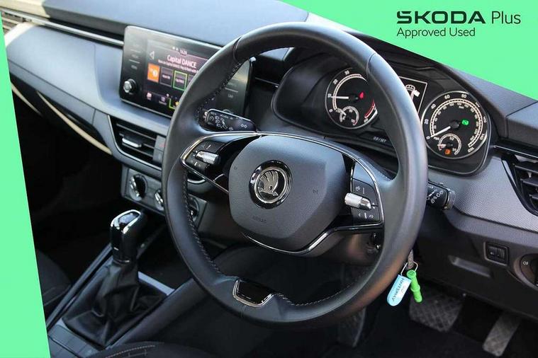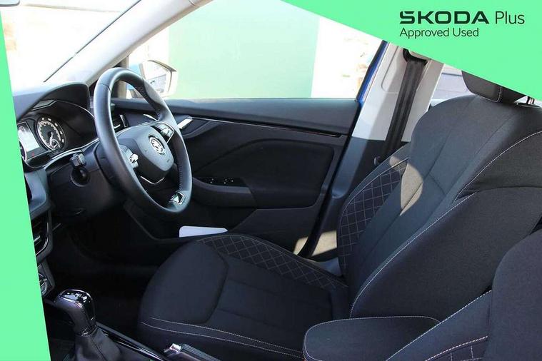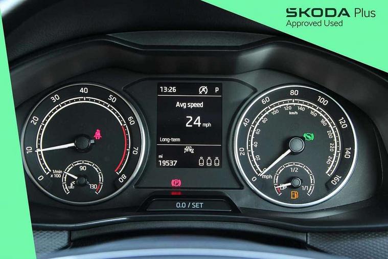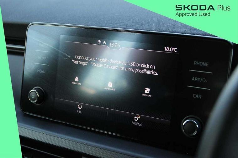 Bluetooth system, E-call, Front assist system, PAS, Service indicator, Speed limiter, Wireless Smartlink for Apple CarPlay (wired for Android Auto), 8 Speakers, Auxiliary input socket, DAB Digital radio, Body colour bumpers, Body colour door mirrors and handles, Chrome grille surround, Dimming rear view mirror with black surround, Electrically adjustable and heated door mirrors, Front and rear electric windows, Headlight range control, Heated rear window, LED rear lights - low functionality, LED third brake light, Light sensors, Rain sensor, Rear fog lights, Rear side wing doors, Rear wiper, 12V Accessory socket in centre console, 3 seat bench in 2nd row, Chrome inner door handles, Cloth upholstery, Front head restraints, Glove compartment with illumination, Ice scraper, Isofix child seat fittings on outer rear seats, ISOFIX on front passenger seat, Manual lumbar support for front seats, Rake/reach adjustable steering wheel, Reading lights, Single front passenger seat, Sun visors with illumination on front passenger, Textile floor mats, Third rear headrest, Top tether for front passenger seat, Umbrella in driver's door, 3x3 point rear seatbelts, Airbags - driver and front passenger, ESP, Front passenger airbag deactivation switch, Front side airbags with curtain airbags, Hill hold control, Manual parking brake, Manual rear child locks, One tone horn, Rear disc brakes, Seatbelt reminder for driver an co-driver, Traction control, Tyre pressure monitor, Anti-theft alarm system with interior monitoring, backup horn, towing protection and remote central locking with SAFE system, Anti-theft wheel bolts, Electronic engine immobilizer,
