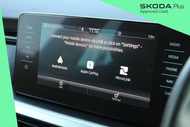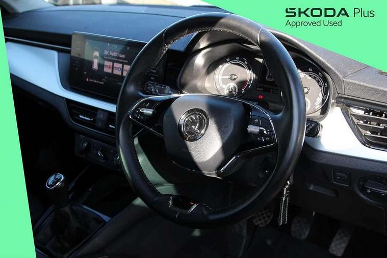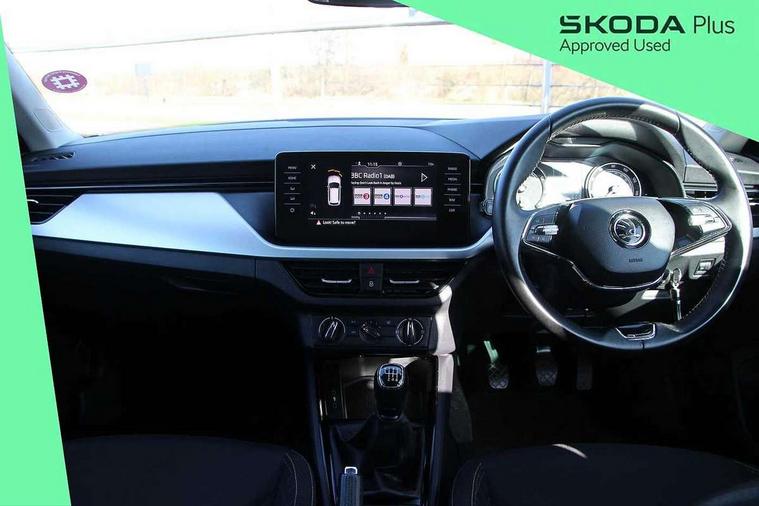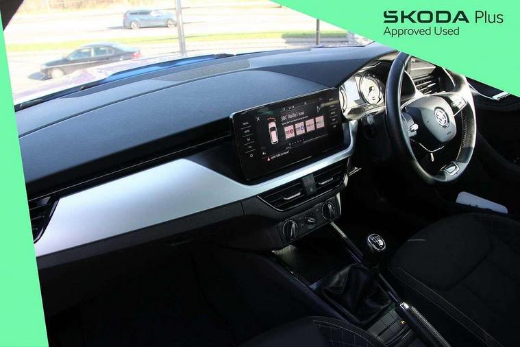 Amundsen satellite navigation with 9.2" glass colour touchscreen display, web radio, voice control and traffic sign recognition, Bluetooth system, E-call, Front assist system, Gesture control, PAS, Service indicator, Speed limiter, Wireless SmartLink for apple car play, android auto and mirrorlink, 8 Speakers, Auxiliary input socket, DAB Digital radio, Body colour bumpers, Body colour door mirrors and handles, Chrome grille surround, Dimming rear view mirror with black surround, Electrically adjustable and heated door mirrors, Front and rear electric windows, Headlight range control, Heated rear window, LED rear lights - low functionality, LED third brake light, Light sensors, Privacy glass, Rain sensor, Rear fog lights, Rear side wing doors, Rear wiper, 12V Accessory socket in centre console, 3 seat bench in 2nd row, Chrome inner door handles, Cloth upholstery, Front head restraints, Glove compartment with illumination, Height adjustable driver and front passenger seats - manual, Ice scraper, Isofix child seat fittings on outer rear seats, ISOFIX on front passenger seat, Manual lumbar support for front seats, Rake/reach adjustable steering wheel, Reading lights, Single front passenger seat, Sun visors with illumination on front passenger, Textile floor mats, Third rear headrest, Top tether for front passenger seat, Umbrella in driver's door, 3x3 point rear seatbelts, Airbags - driver and front passenger, ESP, Front passenger airbag deactivation switch, Front side airbags with curtain airbags, Hill hold control, Manual parking brake, Manual rear child locks, One tone horn, Rear disc brakes, Seatbelt reminder for driver an co-driver, Traction control, Tyre pressure monitor, Anti-theft alarm system with interior monitoring, backup horn, towing protection and remote central locking with SAFE system, Anti-theft wheel bolts, Electronic engine immobilizer, Silver haptic decorative insert on the dashboard with hot stamping in glossy black,