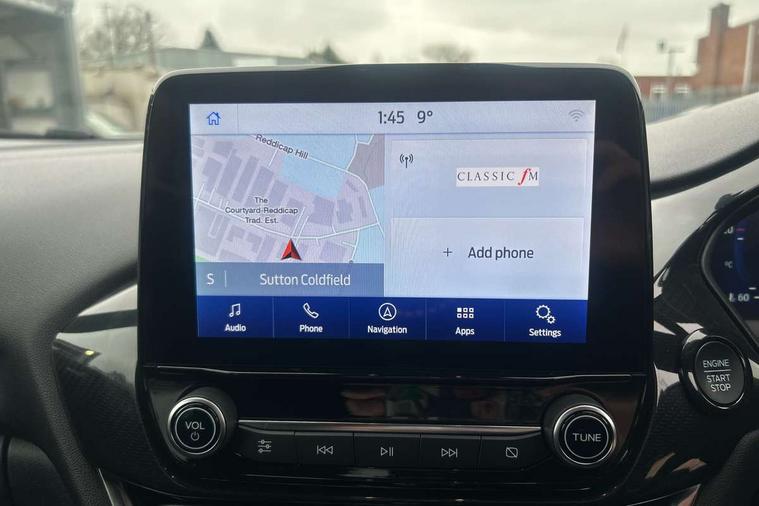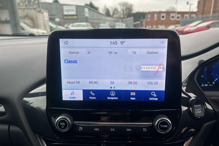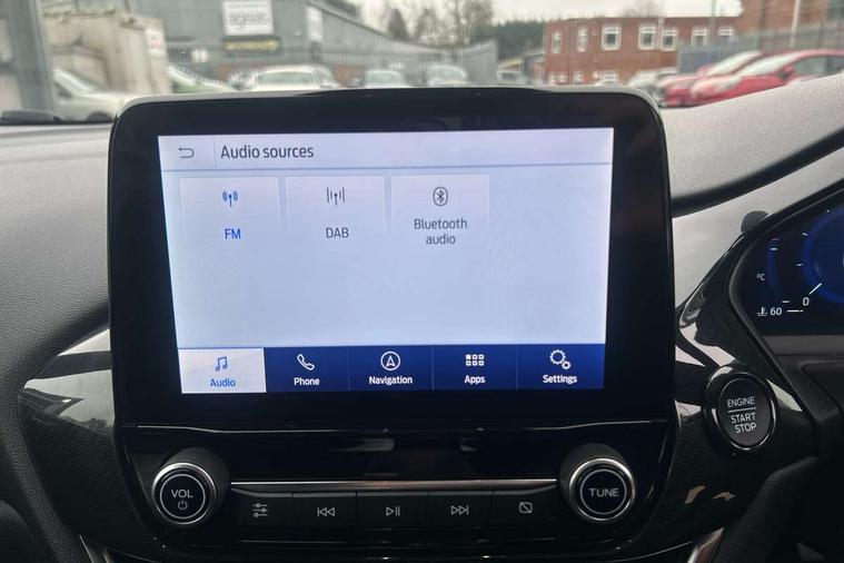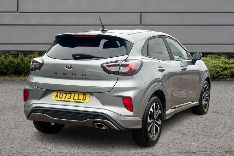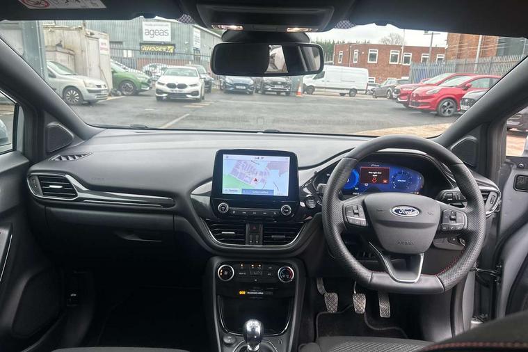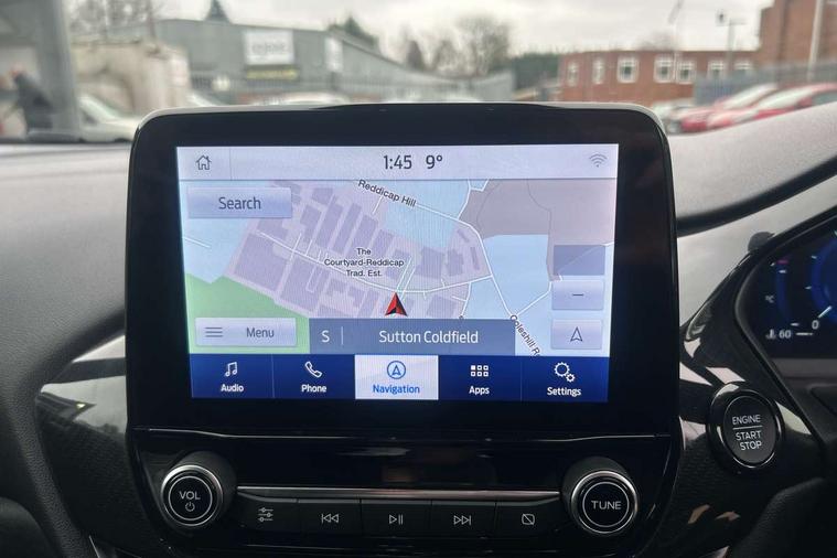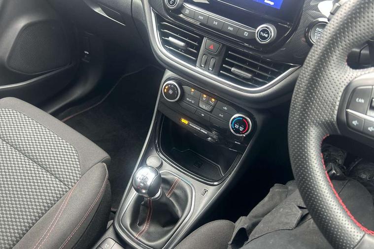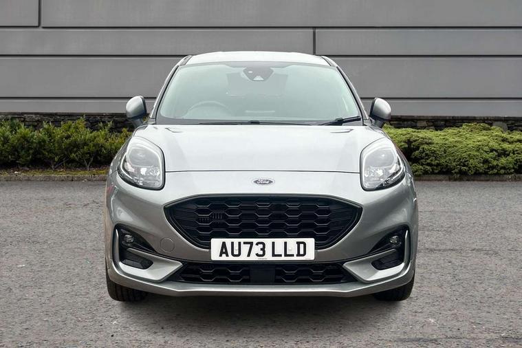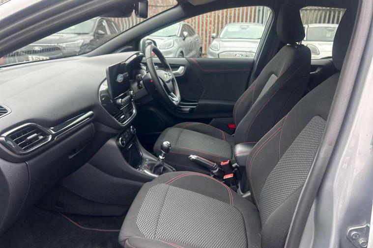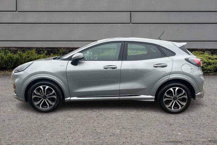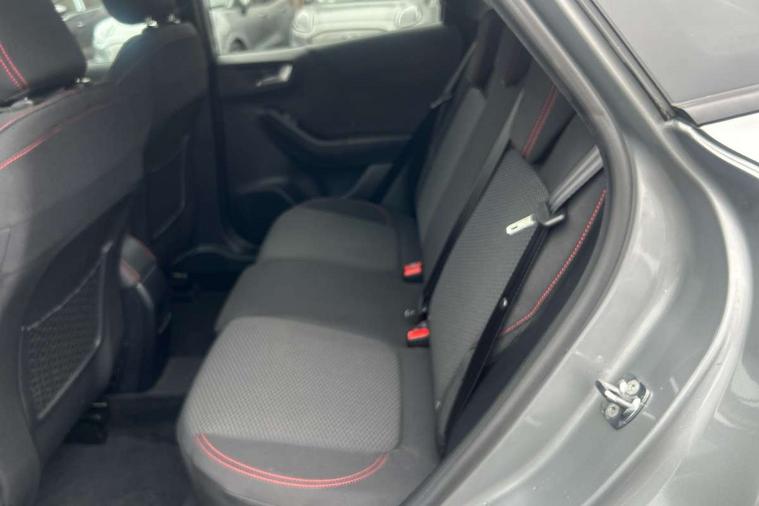 Driver impairment monitor, Emergency call service, Ford easy fuel, Full digital 12.3" instrument cluster, Lane keeping aid with lane departure warning, Power assist steering, Power start button, Rear parking sensor, Selectable drive modes(Normal, Eco, Sport, Slippery and Trail), Speed sign recognition, Sport suspension, Automatic headlights with auto high beam, Automatic rain sensing wipers, LED rear lamps, Power foldable heated door mirrors with puddle lamps, Projector headlamps with LED day time running lights and front fog lamps, Quickclear heated windscreen, Rear side wing doors, Rear wiper, ST-Line body styling kit with unique grille and large body colour rear spoiler, Third brake light, 3 seat bench in 2nd row, Centre console with armrest and stowage, Ford megabox extended bootspace, Front and rear head restraints, Front floor mats, Manual 2 way passenger seat adjustment, Manual 4 way driver seat adjust with lumbar adjustment, Single front passenger seat, ST- Line cloth trim with red stitching, ST-Line flat bottomed sensico leather steering wheel with leather handbrake and aluminium gear knob, Ford SYNC 3 navigation pack - Puma, 3 rear seatbelts, Child safety lock, Electronic stability control (ESC) and hill start assist, Pedestrian/cyclist detection & post-collision braking, Pre collision assist system, Tyre pressure monitoring system (TPMS), Thatcham alarm,