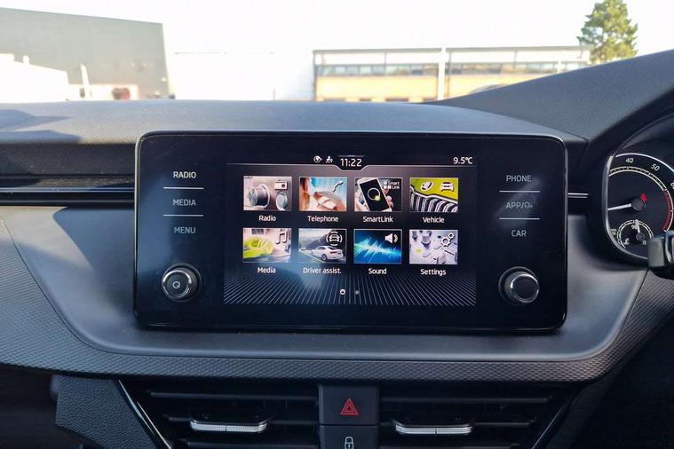 Bluetooth system, E-call, Front assist system, PAS, Service indicator, Speed limiter, Wireless Smartlink for Apple CarPlay (wired for Android Auto), 8 Speakers, Auxiliary input socket, DAB Digital radio, Body colour bumpers, Body colour door mirrors and handles, Chrome grille surround, Dimming rear view mirror with black surround, Electrically adjustable and heated door mirrors, Front and rear electric windows, Headlight range control, Heated rear window, LED rear lights - low functionality, LED third brake light, Light sensors, Rain sensor, Rear fog lights, Rear side wing doors, Rear wiper, 12V Accessory socket in centre console, 3 seat bench in 2nd row, Chrome inner door handles, Cloth upholstery, Front head restraints, Glove compartment with illumination, Ice scraper, Isofix child seat fittings on outer rear seats, ISOFIX on front passenger seat, Manual lumbar support for front seats, Rake/reach adjustable steering wheel, Reading lights, Single front passenger seat, Sun visors with illumination on front passenger, Textile floor mats, Third rear headrest, Top tether for front passenger seat, Umbrella in driver's door, 3x3 point rear seatbelts, Airbags - driver and front passenger, ESP, Front passenger airbag deactivation switch, Front side airbags with curtain airbags, Hill hold control, Manual parking brake, Manual rear child locks, One tone horn, Rear disc brakes, Seatbelt reminder for driver an co-driver, Traction control, Tyre pressure monitor, Anti-theft alarm system with interior monitoring, backup horn, towing protection and remote central locking with SAFE system, Anti-theft wheel bolts, Electronic engine immobilizer,