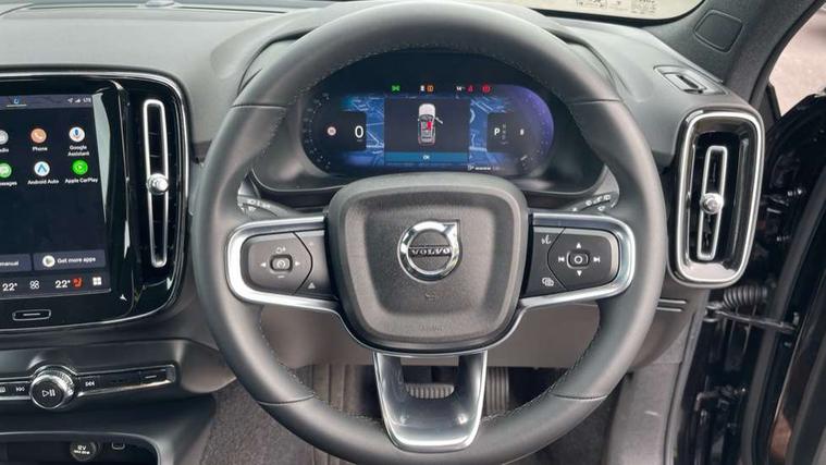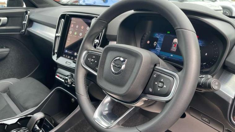 12.3" Progressive Driver Display, 9" centre console portrait touch screen, Adjustable steering wheel force, Android auto (Wired), Apple carplay (wired), Bluetooth handsfree system, Driver alert control, Driver assistance (pilot assist and adaptive cruise control), Driver awareness - Blind spot information system with steer assist, cross traffic alert with autobrake and rear collision warning and mitigation, E-call, Front and rear parking sensors, Front park assist, Google automotive services - Enabled entertainment apps, navigation with google maps, voice recognition with google assistant, Hands free power tailgate, Intelligent speed assistance, Lane keeping aid, Oncoming Lane Mitigation, Speed sensitive steering, Volvo cars services with app - Driving journal, emergency and breakdown call, engine remote start, remote door locking/unlocking and vehicle dashboard, Wireless/Inductive Mobile Phone Charging, Automatic transmission with start/stop and manual change functions, Dynamic chassis, DAB Digital radio, Steering wheel mounted remote controls, Adaptive brake lights with high level LED brake lights, Auto dimming feature for exterior door mirrors, Auto dimming interior mirror, Auto folding and heated power door mirrors, Automatic headlamp levelling, Automatic LED Headlights + Active high beam incorporating daytime running lights, Front aluminium tread plates, Front and rear electric windows, High gloss black front and rear skid plate, High gloss black front bumper deco, High gloss black mesh front grille with high gloss black surround, High gloss black window trim, Home safe and approach lighting, Integrated roof rails in high gloss black, LED front fog lights, Puddle lights, Rain sensor with automatic windscreen wiper activation, Rear side wing doors, Rear wiper, Roof antenna, Roof spoiler, Visible VIN plate, 12V socket in front tunnel console and luggage compartment, 2-Zone electronic climate control with CleanZone air quality system and pollen filter, 3 seat bench in 2nd row, 3 Spoke tailored steering wheel with chrome trim, 60/40 versatile split folding rear seat, Centre console cupholders and storage, Charcoal carpet and floor mats, Charcoal headlining, Connect suede textile/microtech upholstery, Flexible load floor and grocery bag holder, Front headrests, Front seat cushion extensions, Glovebox bag hook, Heated front seats, Height adjustable passenger seat, Height/reach adjustable steering column, High gloss centre tunnel deco, High level illumination - Front door pocket, front side step (under door), tailgate, instrument panel, front door inlay, rear courtesy&reading lights, Integrated waste bin, Isofix attachments on outer rear seats, Load cover, Load protection net, Mid level illumination - Front footwell, luggage & glovebox compartment, front cabin courtesy & reading lights, illuminated vanity mirrors+ticket holder, Multi directional lumbar support for driver and passenger seat, Power driver seat with memory + exterior mirrors memory, Rear armrest with cupholders, Rear headrests, Single front passenger seat, Underfloor luggage compartment storage, Climate pack without heated front seats - XC40, 3x3 point rear seatbelts, City safety with steering support with Pedestrian + cyclist + front collision warning with full auto brake and rear auto brake, Driver and passenger airbags, Drivers knee airbag, Electronic parking brake with auto hold, First aid kit, Front and outer rear seatbelt reminder and pretensioners, Front seats SIPS airbags, Hill descent control - Off-road drive mode, Hill start assist, IC (Inflatable Curtains) - Full Length, Passenger airbag cut-off device, Power child locks on rear doors, Road sign information display, Run off Road Protection, SIPS (Side Impact Protection System), Slippery road and hazard light alert, Stability and Traction Control with Spin control, Engine Drag Control and Corner Traction Control, Tyre pressure monitoring system, Vehicle deceleration control with Anti-lock Brake System, Electronic Brake Distribution and Emergency Brake Assist, Warning triangle, WHIPS whiplash protection system - front, 2 x Key integrated remote control central locking including with deadlocking system and auto open/close windows, Anti-theft alarm including immobiliser/volume sensor + level sensor, Keyless drive includes keyless entry and keyless start, Locking wheel nuts,
