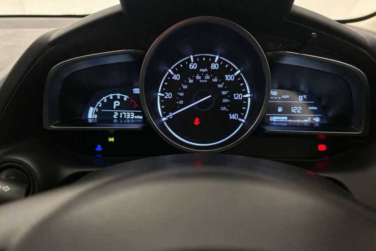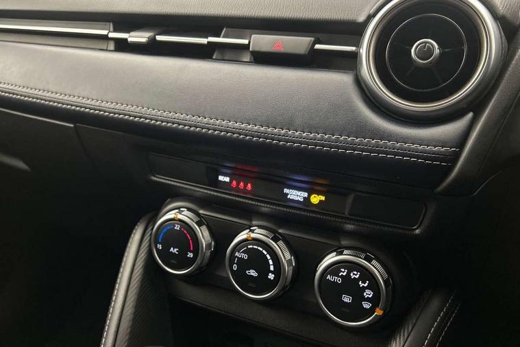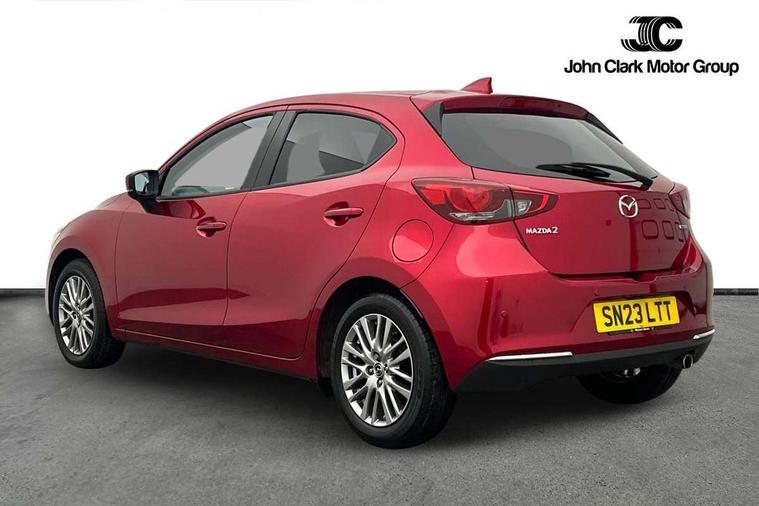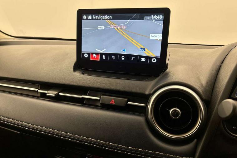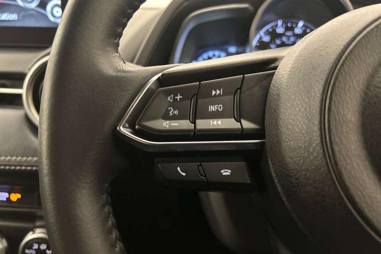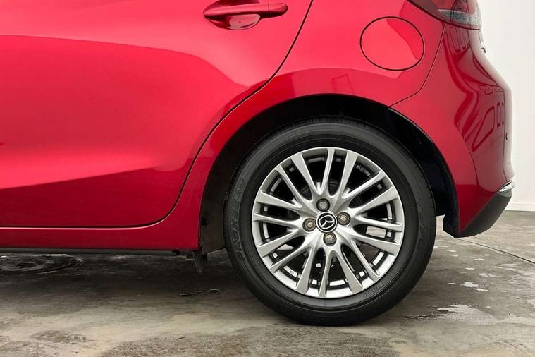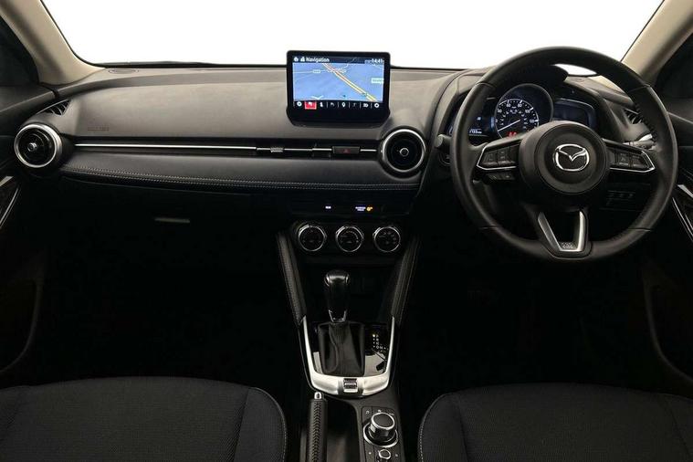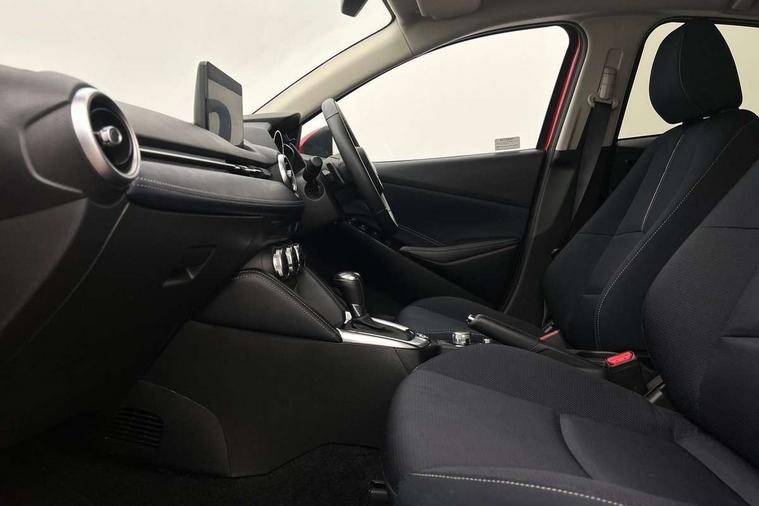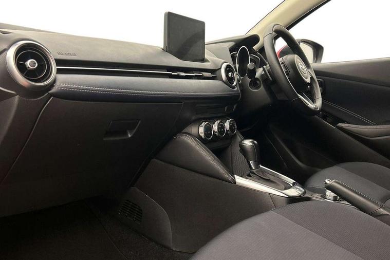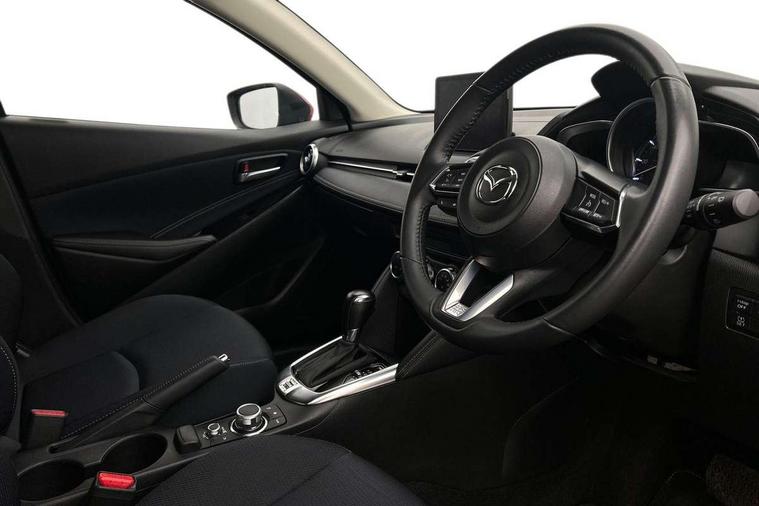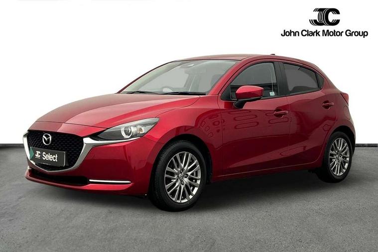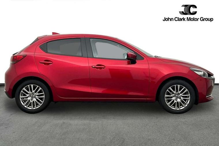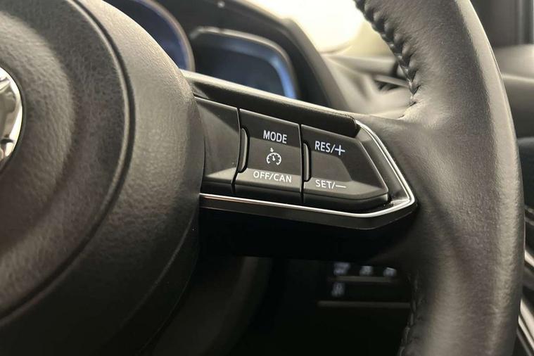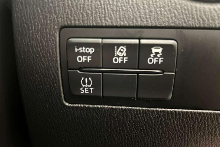 Adjustable speed limiter, Analogue speed display meter, Cruise control, Digital instrument cluster, Digital rev counter, Drive mode selection and paddle shift, E-call, Emergency stop signalling system, Engine start/stop button, Integrated bluetooth, Lane departure warning system, Lane keep assist, Mazda connect with 8" colour touch screen, Navigation system, PAS, Rear parking sensor, Service indicator, Trip computer, Wireless Apple CarPlay and wired Android Auto, i-stop, AM/FM/DAB radio with 6 speakers with USB and AUX inputs, Multimedia Commander including separate volume dial, Steering wheel mounted audio/bluetooth controls, Auto dimming rear view mirror, Auto headlight levelling, Body colour door mirrors, Body coloured front bumper with bright lower bezel, Body coloured rear bumper with bright lower mouldings, Chrome exhaust tailpipes, Chrome finish signature wing on front grille, Chrome front lower bezel, Chrome rear lower bezel, Coming/leaving home lighting function, Dusk sensing headlights, Electric adjustable/heated/folding door mirrors, Electric front/rear windows with one touch auto up/down for driver's window, Gloss black front grille, LED Headlights, LED indicator lights, LED third brake light, Privacy glass, Rain sensing front wipers with adjustable sensitivity and speed, Rear side wing doors, Rear wiper, Shark fin antenna, Signature LED daytime running lights, 3 seat bench in 2nd row, 60/40 split rear seats, Climate control air conditioning, Cloth upholstery, Driver, Front passenger and two rear grab handles with coathooks, Drivers seat manual slide recline and height adjustment, Drivers/front passengers covered vanity mirrors and drivers ticket holder, Folding rear seats, Front centre storage with two cupholders, Front head restraints, Front passenger and driver door pockets, Front passenger seat manual slide, recline and height adjust, Front passenger seatback pockets, Gear shift indicator, Glovebox, Interior courtesy light with integrated spotlight, ISOFIX child seat anchorage points attached on outer rear seats, Leather handbrake, Leather steering wheel and gear knob, Luggage compartment light, Satin silver dials, Single front passenger seat, Three height adjustable rear head restraints, Tilt/telescopic adjustable steering wheel, 2x3 point front seatbelts with pre-tensioners, 3 point seatbelts on all rear seats, Anti-lock braking system (ABS), Autonomous emergency braking, Collision mitigation braking system, Dynamic stability control + Traction control, ESP, Front and rear curtain airbags, Front driver, passenger and rear seat seatbelt warning, Front dual stage driver and single stage front passenger airbags, Front side airbags, Front smart city brake support, G-Vectoring control plus, Hill launch assist, Manual child lock in rear doors, Passenger airbag cut-off switch, Tyre pressure monitoring system, Deadlocking system, Immobiliser, Power door locks, Remote central locking, Smart keyless entry, Thatcham accredited alarm and immobiliser, Dark blue soft touch dashboard, 16" Bright finish alloy wheels, Emergency tyre repair kit,