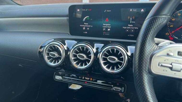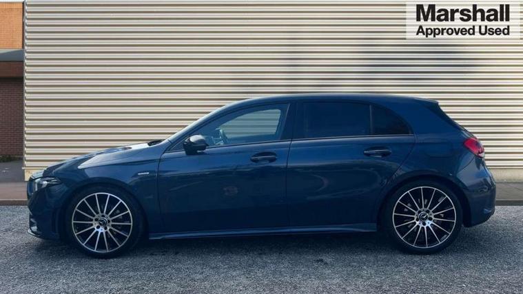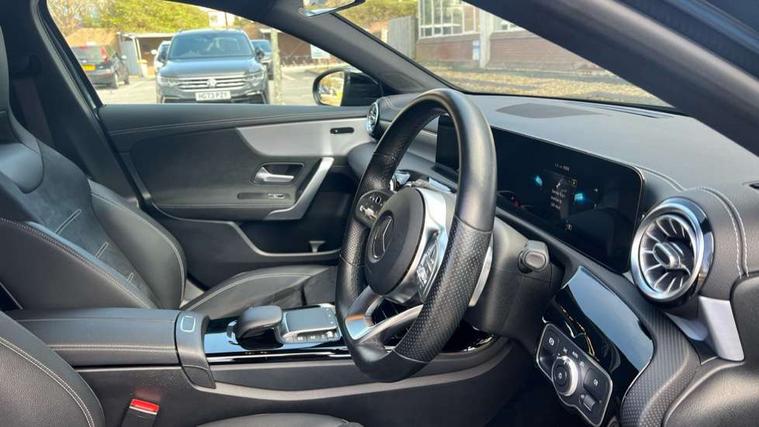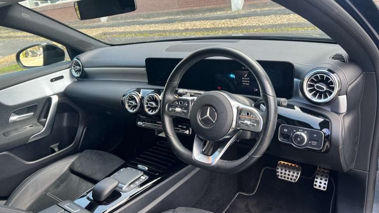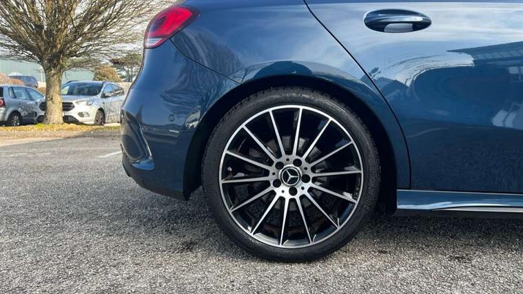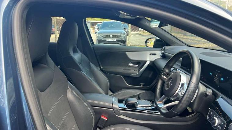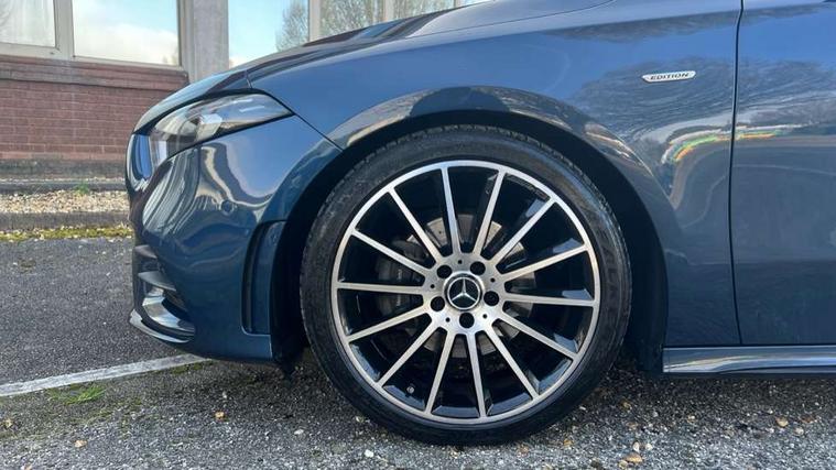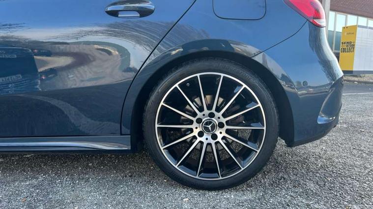 10.25" Digital instrument cluster display screen, 10.25" media display, 180 degree rear view camera with parking guidelines, Active parking assist with visual and audible warning of detected obstacles, Attention assist, Brake pad wear indicator warning light, Car wash mode, Cruise control + speed limiter, Direct steering, Dual bluetooth interfaces, DYNAMIC SELECT with a choice of driving modes (ECO, Comfort, Sport and Individual), ECO start/stop function, Fluid level warning indicator for fuel, oil, coolant and washer fluid, Hard-disk navigation, Hey Mercedes Voice activation, Lamp failure indicator, Mercedes me connect including emergency call system, accident recovery, breakdown and maintenance management, Mercedes me remote services, Outside temperature gauge, Owners manual in English, Pre-installation for private car sharing, Preinstallation for Mercedes Benz link, Service indicator (ASSYST), Smartphone integration with Apple CarPlay and Android auto, Speed limit assist, Speed sensitive power steering, Trip computer, Ultrasonic sensors positioned in the front and rear bumpers, Wireless charging, Lowered comfort suspension, Rear axle torsion beam, 2 USB ports (type C) in rear stowage compartment and one in front of center console, 6 speakers, MBUX multimedia system with DAB digital radio and touchpad including satellite navigation, Mercedes-Benz sound system - 100W, 4 Electric Front and Rear windows, Adaptive brake lights, Black chrome plated tailpipe trim, Body colour bumpers, Body colour door handles, Body colour side skirt, Diamond radiator grille with pins in black and black louvre, Edition badging on the front wings, Electric adjustable and heated door mirrors with integrated LED side indicators, Headlamp assist automatic headlamp activation, Heated glass rear windscreen + timer control, LED high performance headlamps with integrated LED daytime running lights, LED tail lamp, LED third brake light, Panoramic sliding sunroof, Privacy glass, Radio aerial, Rain sensing windscreen wipers with two sensitivity settings, Rear fog lights, Rear wiper, 3 Spoke flat bottom leather multi function steering wheel with perforated leather in grip area, 40:20:40 split folding rear seats, Artico man-made leather/ Dinamica microfiber upholstery, Auto Mercedes-Benz child seat recognition sensor, Black air vents with surround in silver chrome, Black roof lining, Brushed stainless steel sports pedals with rubber studs, Floor mats with black top stitching and embroidered edition logo and piping in light grey, Floor mats with stitched edging and AMG lettering, Front centre armrest with storage compartment, Front door sills with Mercedes Benz lettering, Front seat backs luggage nets, Front seat cushion length adjustment, Galvanished gear shift paddles on steering wheel, Heated front seats, Height/reach adjustable steering column, Interior lighting - 64 colour Ambient lighting, Interior mirror with reading lamps in black and frameless, Rear head restraints, Seat occupancy sensor for front passenger seat, Sports seats with integrated headrests, Stowage compartment in centre console with retractable cover, Sunvisors with illuminated vanity mirrors, Touchpad on center console, Twin front cupholders, Two zone thermotronic luxury automatic climate control, Light and sight pack - A Class, Mirror package - A Class, Night pack - A Class Exclusive Edition, Seat comfort pack - A Class, 3 rear 3 point seatbelts, ABS with Brake Assist, Active bonnet, Active brake assist includes forward collision warning system with autonomous braking, Adaptive brake assist with hold function and hill start assist, Black seatbelts, Bonnet with power domes, Childproof locks manually operated for rear doors and electrically operated for rear power windows, Crash responsive emergency lighting, Driver and passenger head and side airbags, Drivers knee airbag, Dual stage driver/passenger airbags, Electronic parking brake, ESP curve dynamic assist, ESP with ASR, Front and rear seatbelt reminder, ISOFIX and top tether child seat fixing points in two outer rear seats, Tyre pressure monitoring system, Warning triangle and first aid kit, Window airbags, Alarm system/interior protection/immobiliser, Keyless Go, Remote central locking and crash sensor with emergency opening function, Urban guard vehicle protection system with immobiliser and interior protection, Light longitudinal grain aluminium trim painted, 19" AMG multi spoke light alloy wheels painted in titanium grey with high sheen finish, Summer tyres, Tirefit sealant kit,