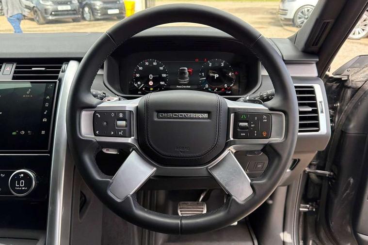 11.4" touchscreen, 3D surround camera, Adaptive cruise control, Blind spot assist, Driver condition monitor, Electric power assisted steering (EPAS), Front and rear parking aids, Interactive Driver display, Lane keep assist, Pivi pro connected, Power inner tailgate, Rear collision monitor, Rear traffic monitor, Remote, Remote boot release, Speed proportional steering, Sport shift selector, Traffic sign recognition adaptive speed limiter, Trip computer, Tyre pressure monitor, Wade Sensing, Wireless device charging, 1 USB-C (power only), 1 USB-A & 1 USB-C (power & data) in Row 1, 2 USB-C in Row 2 and 2 USB-C in Row 3 all power only, Android Auto, Apple CarPlay, Digital Audio Broadcast radio-DAB, Dynamic volume control, Meridian surround sound system - 14 speaker + subwoofer, 18 channel amplifier, 700W, Acoustic laminated windscreen, Animated directional indicators, Auto dimming rear view mirror, Auto High Beam Assist, Automatic headlight levelling, Black roof rails, Centre high mounted stop light, Darkened LED tail lights, Dynamic body style, Electric heated/power fold memory door mirrors with approach lights and auto dimming driver side, Electric windows with one touch open/close and anti-trap, Heated rear window, Heated windscreen, Matrix LED headlights with signature DRL, Obscured row 2 and row 3 windows, Privacy glass, Puddle lights, Rain sensitive windscreen wipers, Rear fog lights, Rear wash wiper, Treadplates with metal inserts, Variable intermittent wiper, Central hinged twin lidded storage, Configurable cabin lighting, Electric adjustable steering column, First and second row door bins, Fixed bulkhead behind row1, Footwell lights, Front passenger seat ISOFIX points, Glovebox storage, High sided rubber mats, In-facia storage, Leather steering wheel, Loadspace cover, Loadspace hooks, Loadspace light, Loadspace rubber mat, Lockable glove box, Lower centre console storage, Luggage tie downs in loadspace, Multi function steering wheel, Overhead lighting console, Shopping bag hook, Third row storage, Twin front cupholders with cover, Two zone climate control, Under floor stowage, Windsor leather upholstery, Online pack with data plan - Discovery, Customer configurable autolock, Electronic traction control, Emergency braking, Front side airbags, Power operated child locks, Seat belt reminder, Immobiliser, Intrusion sensor, Keyless entry system, Locking wheel nuts, Perimeter and volumetric alarm, Remote central locking, 12V power sockets in row1, row2 and load space, ABS and EBA, Adaptive dynamics, Brake pre-fill technology, CBC - (Cornering brake control), Dynamic stability control, Electronic air suspension, Electronic brake force distribution (EBD), Front axle open differential, Gradient acceleration control, Hill Descent Control, Hill launch assist, Particulate filter (DPF), Push button start, Roll stability control, Stop/start function, Torque vectoring brake, Trailer stability assist, All terrain tyres,