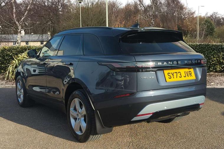 Android Auto, Apple CarPlay, Bluetooth connectivity, Brake pad wear indicator warning light, Driver condition monitor, eCall emergency call system, Front and rear parking aid, InControl remote, Land Rover InControl apps, Lane keep assist, Pivi pro with connected navigation, Service indicator, Speed proportional electronic power assisted steering (EPAS), Traffic sign recognition with adaptive speed limiter, Trip computer, Voice control system, Wireless device charging, 8 speed automatic transmission, All terrain progress control, Coil suspension system, Open differential with torque vectoring by braking, Single speed transfer box, DAB radio, Steering wheel mounted controls, 3rd brake light, Acoustic laminated windscreen, Auto dimming interior rear view mirror, Auto high beam assist, Automatic headlamp levelling, Automatic headlights, Body coloured bumpers, Boot protection plate, Electric windows with one touch open/close and anti trap, Flush deployable exterior door handles, Follow me home headlights, Heated rear window with timer, Heated washer jets, LED headlights with signature DRL, Metal front tread plates, Metal load space scuff plates, Power fold, auto-dimming, heated door mirrors with memory and approach lights, Rain sensor windscreen wipers, Rear animated directional indicators, Rear fog lights, Rear side wing doors, Rear wash/wipe, Tailgate/boot lid spoiler, Trailer stability assist, Velar badge, 14 way electrically adjustable front seats with driver's memory function, 3 seat bench in 2nd row, Ambient lighting, Driver/passenger sunvisors with illuminated vanity mirrors, Electrically adjustable steering column, Heated steering wheel, Isofix system on outer rear seats, Light oyster morzine headlining, Loadspace cover, Overhead lighting console, Overhead stowage for sunglasses, Passive front headrests, Rear air vents, Rear centre headrest, Single front passenger seat, Twin front cupholders, Twin sliding front centre armrest, Online pack with data plan - Velar, Power socket pack 2 - Velar, 355mm Front and 325mm Rear brakes, 3x3 point rear seatbelts, Anti-lock braking system (ABS), Cornering brake control, Curtain airbags, Customer configurable autolock, Door side intrusion beams, Driver airbag, DSC - Dynamic Stability Control, Electronic brake force distribution, Electronic parking brake, Electronic traction control, Emergency braking, Front and rear seatbelt reminder, Hill descent control, Hill launch assist, Low traction launch, Passenger airbag, Power operated child locks, Rear airbags, Roll stability control, Side airbags, Tyre pressure monitoring system (TPMS), Global lock and unlock switch on driver door, Immobiliser, Intrusion sensor, Keyless entry, Lock only switch on front passenger door, Locking wheel nuts, Perimetric alarm, Remote central locking, All season tyres,