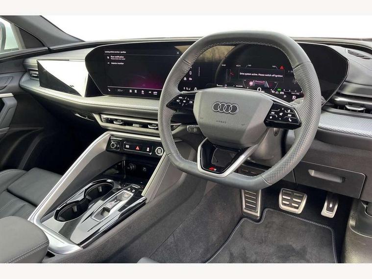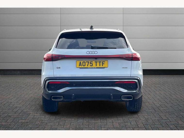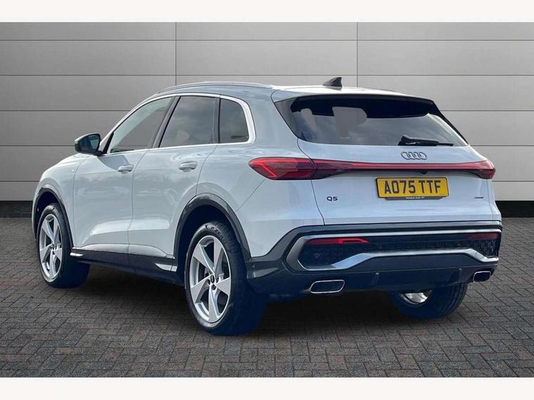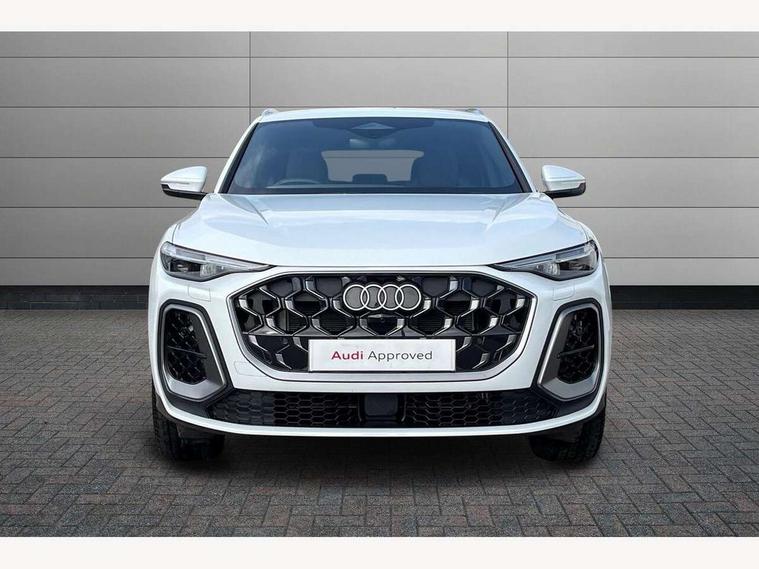 Adaptive cruise control, Advanced driver attention alert, Audi application store, Audi connect emergency call and service, Audi drive select, Audi smartphone interface, Audi virtual cockpit plus with 11.9" OLED colour display, Camera based traffic sign recognition, Fatigue monitor, Front cross traffic intersection assist, Lane departure warning system, MMI navigation plus with high resolution 14.5" OLED touchscreen colour display, Park assist plus, Parking system plus with 360 display, PAS, Reversing camera, Traffic sign based speed limiter, 2 USB-C ports in both the front and rear, Audi sound system impressive sound with 8 loudspeakers including centre speaker and subwoofer, 6-channel amplifier with a total output of 180 watts, DAB Digital radio, Smartphone compartment with wireless charging, Aluminium roof rails, Auto dimming rear view mirror, Body coloured door mirrors, Coming/leaving home lighting function, Electrically adjustable heated and folding + automatically dimming exterior mirrors, Front and rear electric windows, Front door sill trims with aluminium inlays, illuminated with 'S' logo, Grill frame, inlay and front air inlets in matt anthracite chrome, Headlight cleaning system, Heated rear window, High beam assist, High gloss window surrounds, LED headlights plus incl. digital DRL, dynamic coming and leaving home function with turning/all weather/motorway/manouevring and intersection lights, LED rear lights pro incl. dynamic rear indicators and illuminated light strip with animated coming and leaving home function, Logo projection light in exterior mirrors, Privacy glass, Projection third brake light for rear window in LED, Radiator grille in phantom black, Rear and side windows with heat insulating glass, Rear honeycombe grille in matt black with inlay in matt anthracite chrome, Rear side wing doors, Rear wash/wipe, S Line badge on the front wings, S line bumpers in contrasting Volcano grey metallic paint finish, Towbar preparation, Windscreen with acoustic glazing, 3 rear head restraints, 3 seat bench in 2nd row, 3 spoke leather steering wheel with multi-function buttons with touch control, flattened on top and bottom, with S badging and contrast stitching, Comfort centre armrest front, Deluxe 3 zone electronic climate control, Front and rear floor mats, Front sport seats with integrated head restraints, Headlining in black cloth, Heated front seats, i-Size child seat mounting on the front passenger side and outer rear seats, i-Size and top tether on the outer rear seats, Interior trim in aluminium look, Luggage compartment lid, electrically opening and closing, Manual steering column adjustment, S embossed logo on front sport seats, Single front passenger seat, Softwrap in leatherette, Stainless steel pedals and footrest, Steering wheel grips in perforated leather and shift paddles, Ambient lighting package plus - Q5, 3x3 point rear seatbelts, ABS, Acoustic vehicle alerting system, Convenience key with safelock, Driver and front passenger airbag with passenger airbag deactivation, Electric child safety locks, First aid kit with warning triangle and high visibility vests, Front emergency brake assist, Front side airbags with head airbag system and front interaction airbag, Hill hold assist, Rear seat occupant reminder, Tyre pressure loss indicator, Anti theft alarm, Anti-theft wheel bolts, Accent surfaces and control buttons in gloss black, Anthracite matt brushed aluminium inlays with linear embossing, Black dashboard with contrast stitching, Upper and lower interior elements in artificial leather, Tyre repair kit,