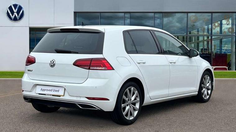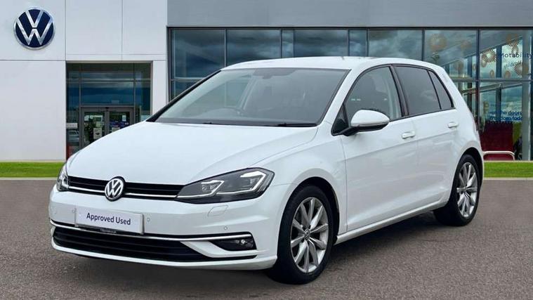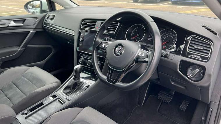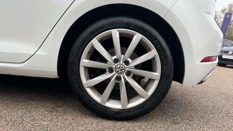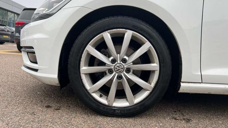 Chrome plated air vent surround, Chrome plated electric mirror adjustment switch surround, Chrome-plated light switch surround, Piano black decorative inserts in centre console, Tumbler decorative inserts, Ambient lighting pack - Golf, Convenience Pack - Golf, Mirror pack - Golf, Winter pack - Golf, Steel space saver spare wheel, Alarm with interior protection and deactivation via infotainment system, Electronic engine immobiliser, Composition media system, DAB Digital radio receiver, Driver Personalisation profile selection, MP3/WMA compatability, Multi device interface (MDI) via USB connection, Premium USB cable in choice of either Apple or Android smartphone compatibility, SMS Functionality, Title and cover art display, USB and SD card connectivity, Volkswagen media control, 3 rear three point seatbelts, Airbags - Driver's and front passenger's, curtain airbag, Driver's knee, front side impact and passenger's airbag deactivation switch, Anti-lock Braking System (ABS) with Hydraulic Brake Assist (HBA), Automatic post collision braking system, Child locks on rear doors, Driver/Passenger optimised head restraints, Electronic parking brake with auto hold, Electronic stability control (ESC) including Electronic differential lock (EDL) and ASR (Traction control) with deactivation via infotainment system, Front ventilated disc brakes and rear disc brakes, Pre crash preventive occupant protection, Three point height adjustable front seatbelts with tensioners, Tyre pressure loss indicator, Black front air intake and radiator grille with chrome insert, Black rear diffuser, Body colour bumpers, Body colour door handles, Body colour door mirrors with integrated indicators, Chrome trimmed front air intake surrounds, Dusk sensor + automatic driving lights, Electric front windows, Electric rear windows, Electrically adjustable and heated door mirrors, Fully galvanised body, Heated rear windscreen, High level 3rd brake light incorporating LED Technology, LED front fog lights with static cornering light function, Range adjustable headlights via infotainment system with LED daytime running lights, Rear fog lamp, Rear number plate lights incorporating LED technology, Rear tinted glass 65% light absorbing from B pillar backwards, Rear window aerial, Rear window wash/wipe with intermittent wipe, Reflectors in all doors, Tailgate with integrated rear roof spoiler, Windscreen wipers/ intermittent wipe + 4 position delay, 12V socket in luggage compartment, 3 rear headrests, 4 load lashing points in luggage compartment, 60/40 split folding rear seat backrest, Bag hook in luggage compartment x 2, Climate control - 2 zone electronic air conditioning with automatic air recirculation and allergy filter, Cooled glovebox, Cover for storage compartment in centre, Dust/pollen filter, Front + rear carpet mats, Front centre armrest with storage compartment and two rear air vents, Front seat back storage pockets, Grab handles front x 2, rear x 2 with integrated coat hooks, Height and reach adjustable steering wheel, Illuminated vanity mirrors, Instrument lighting white adjustable panel illumination, Interior light delay, Isofix preparation for 2 rear child seats, Load through provision with rear centre armrest and cupholders x2, Luggage compartment lighting, Overhead storage box, Pearl grey headlining, Storage box in luggage compartment, Storage compartment in roof console with cover, Storage compartments in centre console, Storage compartments in front doors, Storage compartments in rear doors, Stowable luggage compartment cover, Sun visors, Variable boot floor, height adjustable and removable, 'Lights On' Reminder warning buzzer, ACC - Adaptive cruise control with front assist, forward collision warning, distance monitoring, city emergency brake and speed limiter, Bluetooth telephone and audio connection for compatible devices, Brake pad wear indicator warning light, Driver alert system, Driving Mode Selection with four preset modes - Eco, normal, sport or individual modes, Misfuelling protection device, Multifunction computer with visual gear change recommendation for fuel consumption, Power assisted speed sensitive electro-mechanical steering, Push tank flap, Speed limit display, Speedo, rev counter, electronic odometer, trip, service interval display, exterior temperature and fuel gauge, Stop/start system, Think blue trainer driver tips and journey analysis, Warning buzzer and light for front seatbelts unfastened, Battery regeneration during braking, Diesel particulate filter, XDS electronic differential lock,
