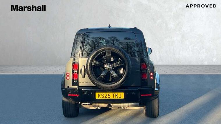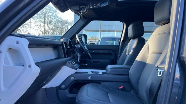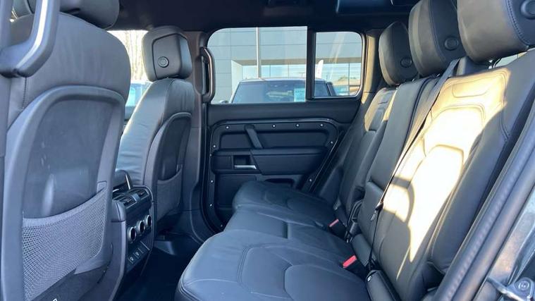 1 x USB-C (power only) & 1 x USB-C (power & data) in Row 1, 2 x USB-C in Row 2, 11.4" touchscreen, 2 x USB-C in Row 3, 360 degree parking aid, 3D Surround Camera with 360 View, 180 Rear View, Front Traffic Detection, Forward Vehicle Guidance, Tow Hitch Assist and clear sight Ground View, Adaptive cruise control, Android Auto, Apple CarPlay, Blind spot assist, Bluetooth system, Brake pad wear indicator, Clear exit monitor, Connected navigation pro, Driver condition monitor, Electric power assisted steering (EPAS), Interactive driver display, Lane keep assist, Push button start, Rear collision monitor, Rear traffic monitor, Traffic sign recognition with adaptive speed limiter, Trip computer, Wireless device charging, 8 speed automatic transmission, All wheel drive system, Twin speed transfer box, DAB Radio (Digital Audio Broadcasting), Meridian 700w surround sound audio system with 15 speakers, Pivi pro connected, Automatic headlight levelling, Automatic headlights, Black exposed rear recovery eyes, Body coloured bonnet, Centre high mounted stop light, Electric heated/power fold door mirrors with approach lights and auto dimming driver side, Electric windows with one touch open/close and anti-trap, Follow me home lighting, Front fog lights, Heated rear window with timer, Heated windscreen, Illuminated metal treadplates with brand name script, LED tail lights, Matrix LED headlights with signature DRL, Privacy glass, Puddle lights, Rain sensing windscreen wipers, Rear fog lights, Rear side wing doors, Rear wiper, Side hinged tailgate, Sliding panoramic roof, Standard tail door, Trailer stability assist, X-Dynamic badge, 12V power socket in loadspace, 2 seat bench in 3rd row, 3 seat bench in 2nd row, Alpine lights, Configurable cabin lighting, Durable rubber cabin flooring, Durable rubber loadspace flooring, Electric reach + rake adjustable steering column, Electrically adjustable steering column, Extended leather upgrade, Footwell lights, Front head restraints, Front passenger isofix child seat attachment, Heated steering wheel, Loadspace cover, Loadspace Hook, Multifunction steering wheel, No flat load floor storage, Overhead stowage for sunglasses, Rear headrests, Rear ISOFIX, Rear reading lights, Single front passenger seat, Soft close tail door, Storage glovebox, Sunvisors with illuminated vanity mirrors, Twin front cupholders, Air suspension pack - Defender SE/HSE/X-Dynamic SE/X-Dynamic HSE, Non-smoker package, Online pack with data plan - Defender, 7 three point seatbelts, ABS, Brake hold function, Cornering brake control (CBC), Customer configurable autolock, Driver and passenger airbags, DSC - Dynamic Stability Control, EBD - Electronic brakeforce distribution, Electric parking brake (EPB), Emergency brake assist, Emergency braking, ESP + traction control, Front airbags with passenger seat occupant detector, HDC - Hill descent control, Hill launch assist, Low traction launch, Power operated child locks, Remote for (e-Call, Optimised assistance call, InControl app, Climate, beep and flash and door), RSC - Roll stability control, Seat belt reminder, TPMS (Tyre pressure monitoring system), Alarm, Immobiliser, Intrusion sensor, Keyless entry, Locking wheel nuts, Secure tracker pro,