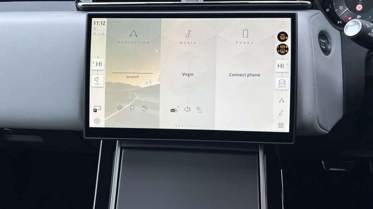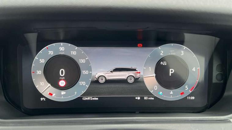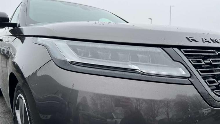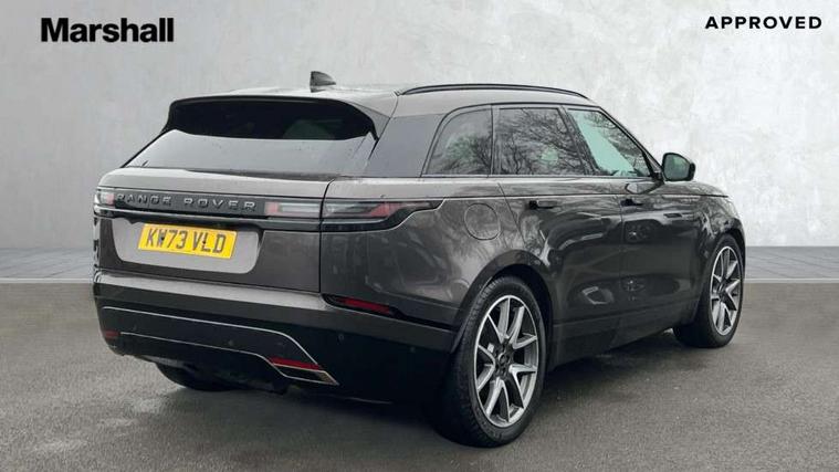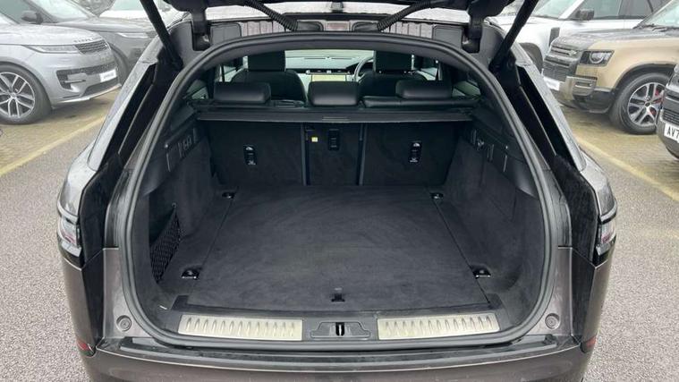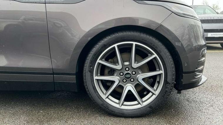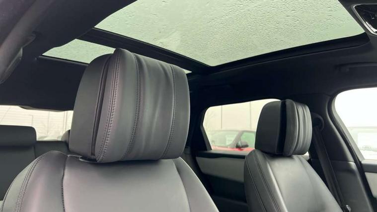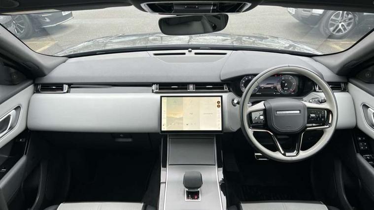 Adaptive cruise control with steering assist, Android Auto, Apple CarPlay, Blind spot assist, Bluetooth connectivity, Brake pad wear indicator warning light, Driver condition monitor, eCall emergency call system, Front and rear parking aid, InControl remote, Land Rover InControl apps, Lane keep assist, Pivi pro with connected navigation, Rear collision monitor, Rear traffic monitor, Service indicator, Speed proportional electronic power assisted steering (EPAS), Traffic sign recognition with adaptive speed limiter, Trip computer, Voice control system, Wireless device charging, 8 speed automatic transmission, Adaptive dynamics, All terrain progress control, Electronic air suspension, Open differential with torque vectoring by braking, Single speed transfer box, DAB radio, Steering wheel mounted controls, 3rd brake light, Acoustic laminated windscreen, Auto dimming interior rear view mirror, Automatic headlamp levelling, Automatic headlights, Body coloured bumpers, Boot protection plate, Electric windows with one touch open/close and anti trap, Flush deployable exterior door handles, Follow me home headlights, Heated rear window with timer, Heated washer jets, Metal front tread plates, Metal load space scuff plates, Pixel LED headlights with signature DRL, Power fold, auto-dimming, heated door mirrors with memory and approach lights, Rain sensor windscreen wipers, Rear animated directional indicators, Rear fog lights, Rear side wing doors, Rear wash/wipe, Tailgate/boot lid spoiler, Trailer stability assist, Velar badge, 3 seat bench in 2nd row, Ambient lighting, Bright metal pedals, Carpet mats, Driver/passenger sunvisors with illuminated vanity mirrors, Ebony morzine headlining, Electrically adjustable steering column, Extended leather upgrade, Heated steering wheel, Isofix system on outer rear seats, Loadspace cover, Overhead lighting console, Overhead stowage for sunglasses, Passive front headrests, Rear air vents, Rear centre headrest, Single front passenger seat, Twin front cupholders, Twin sliding front centre armrest, Online pack with data plan - Velar, Power socket pack 2 - Velar, 380mm front brakes and 325mm rear brakes, 3x3 point rear seatbelts, Anti-lock braking system (ABS), Cornering brake control, Curtain airbags, Customer configurable autolock, Door side intrusion beams, Driver airbag, DSC - Dynamic Stability Control, Electronic brake force distribution, Electronic parking brake, Electronic traction control, Emergency braking, Front and rear seatbelt reminder, Hill descent control, Hill launch assist, Low traction launch, Passenger airbag, Power operated child locks, Rear airbags, Roll stability control, Side airbags, Tyre pressure monitoring system (TPMS), Global lock and unlock switch on driver door, Immobiliser, Intrusion sensor, Keyless entry, Lock only switch on front passenger door, Locking wheel nuts, Perimetric alarm, Remote central locking, All season tyres,