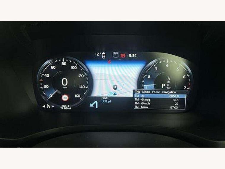 12.3" Active TFT crystal driver's instrument display, 9" centre console touch screen, Adjustable steering wheel force, Bluetooth handsfree system, Drive mode settings, Driver alert control with lane keeping aid, E-call, Front and rear park assist, Information centre, Oncoming Lane Mitigation, Sensus navigation with European mapping and traffic information, Service interval indicator, Speed limiter, Speed sensitive steering, Trip computer, Voice activated control for key functions, Volvo on call app, Lowered sports chassis, DAB Digital radio, Adaptive brake lights with high level LED brake lights, Auto dimming interior mirror, Automatic headlight levelling system, Automatic LED Headlights + Active high beam incorporating daytime running lights, Body colour bumpers, Colour coordinated auto folding and heated power door mirrors, Dark tinted windows for rear side windows and cargo area, Dual integrated exhaust pipes with high gloss black surround, High gloss black door mirrors and window surround, High gloss black mesh front grille with high gloss black surround, Home safe and approach lighting, Integrated roof rails in high gloss black, Power front and rear windows, Rain sensor with automatic windscreen wiper activation, Rear side wing doors, Rear wiper, Roof antenna, Roof spoiler, Visible VIN plate, 12V socket in front + tunnel console and cargo area, 3 seat bench in 2nd row, A-pillar parking ticket holder, B Pillar ventilation, Bright metal luggage compartment threshold, Cargo load hooks, Centre console cupholders, Charcoal headlining, Contour sports seats with nappa leather/textile upholstery, Extended front seat cushions, Floor mats, Front footwell illumination, Front head restraints, Front reading lights + Theatre lighting and centre armrest storage illumination, Front/rear door pockets and front cupholder illumination, Glovebox compartment with illumination, Heated front seats, Height/reach adjustable steering column, High gloss black steering wheel remote infotainment controls, Illuminated vanity mirrors + ticket holder, ISOFIX attachment on outer rear seats, Load cover, Load protection net, Luggage compartment illumination, Multi directional lumbar support, Multicolour theatre lighting and puddle lights, Rear armrest with storage + cupholders, Rear footwell and side step illumination, Single front passenger seat, Sport leather gear knob, Sports pedals, Tailgate illumination and ambient door lighting, Tailored sports steering wheel, Underfloor cargo storage, Versatile split folding rear seat - 60/40, WHIPS - Whiplash Protection System, 5 x 3 point seatbelts, City safety with steering support with Pedestrian + cyclist + large animal detection + front collision warning with full auto brake, Dual stage driver/passenger airbags, First aid kit, Hill start assist, IC (Inflatable Curtains) - Full Length, Passenger airbag cut-off switch, Power parking brake with auto hold function, Road sign information display, Run off Road Mitigation, Run off Road Protection, Seatbelt reminder and pretensioners for all seats, SIPS (Side Impact Protection System), SIPS airbags, Slippery road and hazard light alert, Stability and Traction Control with Spin control, Engine Drag Control and Corner Traction Control, Tyre pressure monitoring system, Vehicle deceleration control with Anti-lock Brake System, Electronic Brake Distribution and Emergency Brake Assist, Warning triangle, Anti-theft alarm including immobiliser/volume sensor + level sensor, Care key with user defined top speed, Key integrated remote control central locking + fuel flap with deadlocking system and auto open/close power windows, Keyless drive (incudes keyless entry and start) with remote tag and handsfree tailgate open/close, Locking wheel nuts, Private locking for tailgate, Metal mesh inlays,