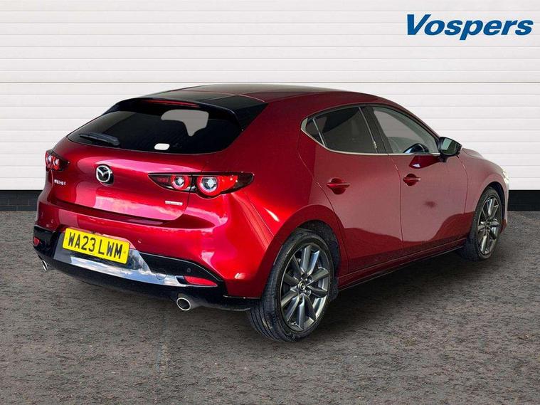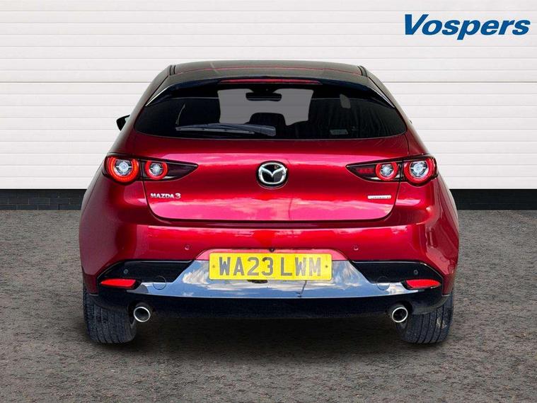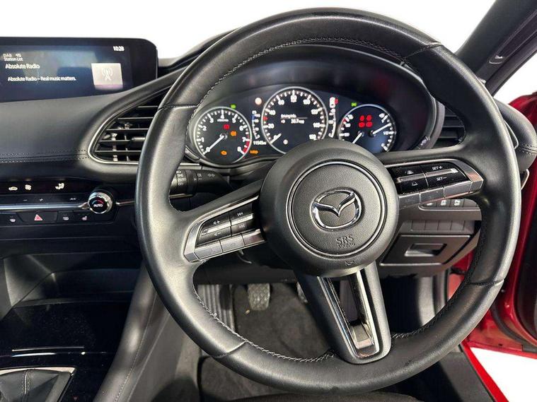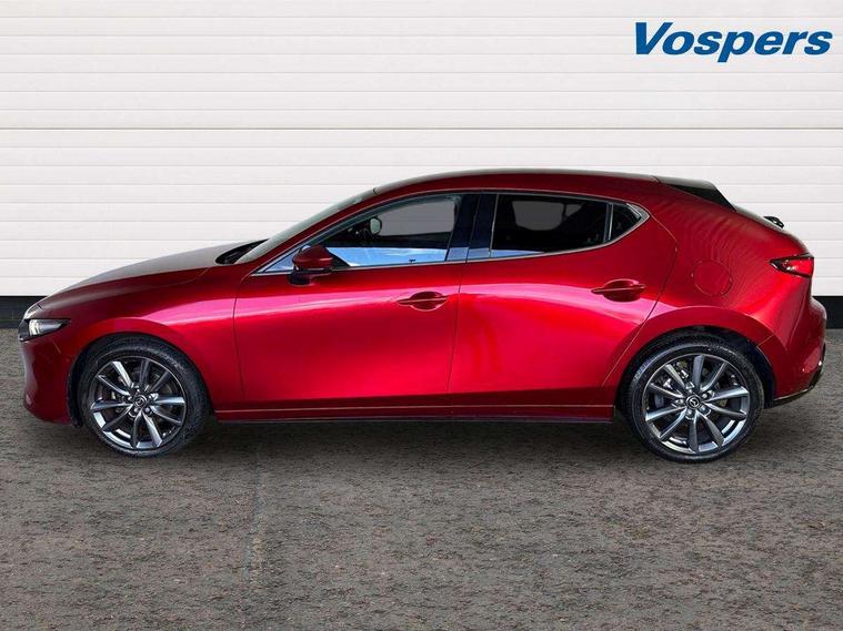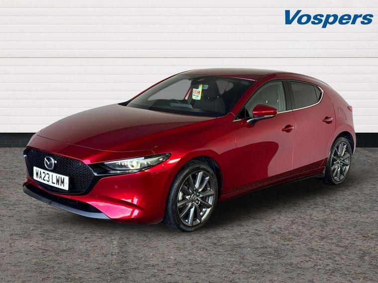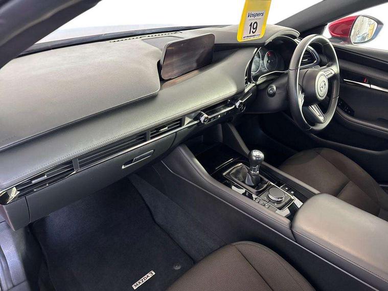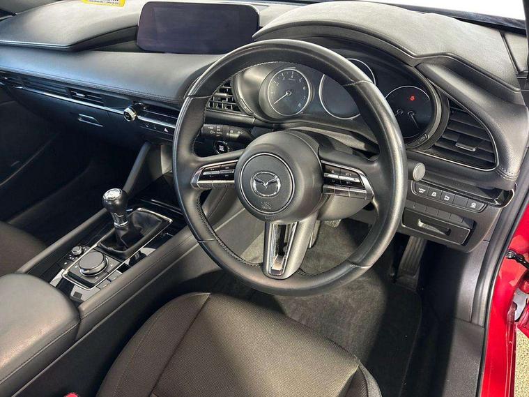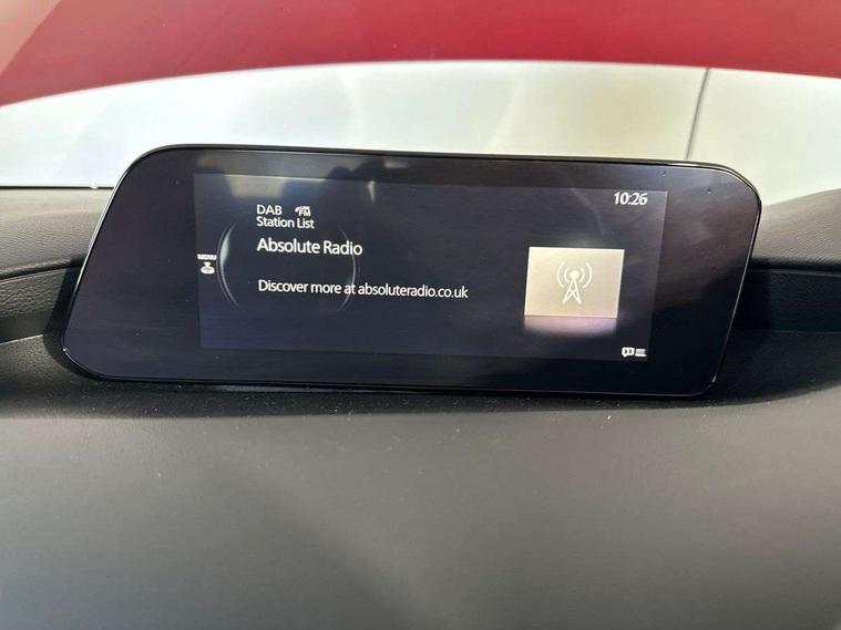 7" colour TFT display, 8.8" Colour centre touch screen display with Mazda Connect infotainment, Apple car play/Android Auto, Audio transfer from bluetooth devices, Blind spot monitoring with rear cross traffic alert, Colour active driving display inc Windscreen projected, Traffic Sign Recognition, turn-by- turn navigation and Mazda Radar Cruise Control information, Digital instrument cluster, Driver attention alert system, E-call with GPS, Emergency stop signalling system, Engine start/stop button, Front and rear parking sensor with audible and visual warning, Head up Display, Integrated bluetooth with steering wheel mounted controls, Intelligent speed assist, Lane keep assist system (LAS) with Lane departure warning system (LDWS), Mazda connected services, Mazda Navigation System with european mapping, Mazda Radar Cruise Control, Mobile App interface, Multimedia Commander, PAS, Reversing camera, Service indicator, Tailgate, Traffic sign recognition (TSR), Trip computer, Cylinder Deactivation, i-stop, Mazda Multimedia System with AM / FM / DAB radio with 8 speakers, Adaptive LED Headlights, Auto dimming driver's door mirrors, B-pillar garnish in piano black, Body coloured, electrically adjustable, heated auto power folding door mirrors with integrated indicators, Coming/leaving home lighting function, Dark metallic finish signature wing, Dual chrome tailpipes tip, Dusk sensing headlights, Electric front/rear windows with one touch/auto up/down, Frameless auto dimming interior rear view mirror, Front body coloured bumper with black lower bezel, Front kodo turn signal, Gloss black finish front grille, Gloss black rear roof spoiler, LED indicator lights, LED third brake light, Privacy glass with dark tinting on rear side windows and rear window, Rain sensing front wipers with adjustable sensitivity and speed, Rear colour coded bumper with gloss black lower moulding, Rear fog lights, Rear side wing doors, Signature LED daytime running lights, Signature LED rear combination lights, Speed adjustable rear wash wiper with intermittent wipe, 12v electrical power outlet, 3 seat bench in 2nd row, 60/40 split fold down rear seats, Black cloth door panel inserts, Chrome interior trim accents with steering wheel centre bezel, surround of engine start / stop button and glove box handle, Cloth upholstery, Dark roof headlining, ceiling and pillars, Driver, front passenger and two rear door pockets, Driver, Front passenger and two rear grab handles with coathooks, Driver/passenger sunvisors + vanity mirrors (drivers side with ticket holder), Drivers seat manual slide recline and height adjustment, Dual zone climate control air conditioning, Folding rear centre armrest with two cup holders, Front and rear courtesy lamps, Front armrest, Front centre storage with two cupholders, Front head restraints, Front passenger seatback pocket, Front passengers seat manual slide, recline and height adjustment, Gear shift indicator, Heated front seats with 3 stage setting, Illuminated glovebox, Interior colouration dashboard and doorcards in black with dark stitching, ISOFIX child seat anchorage points attached on outer rear seats, Leather wrapped gear shift knob, Leather wrapped steering wheel, LED interior light, Luggage compartment light, Power outlet in luggage compartment, Roof mounted sunglasses holder, Single front passenger seat, Three height adjustable rear head restraints, Tilt/height adjustable steering wheel, USB input, 3 point ELR front seatbelts with pretensioners, 3 rear 3 point seatbelts with ELR, Anti-lock braking system (ABS), Drivers knee airbag, DSC - Dynamic Stability Control, Dual stage driver and single stage passenger airbags, EBD - Electronic brakeforce distribution, Electronic parking brake with auto disengage function and auto hold function, Front and rear curtain airbags, Front passenger airbag cut-off switch, Front side airbags, Front smart city brake support, G-Vectoring control plus, Hill launch assist, Intelligent Traction Control system, Manual child lock in rear doors, Mild Hybrid system with regenerative braking, Seatbelt reminder for driver/front passenger and rear seats, Tyre pressure monitoring system (TPMS), Auto door lock when driving, Remote central locking + deadlocks, Smart keyless entry, Thatcham accredited alarm and immobiliser, 18" Grey alloy wheels, Emergency tyre repair kit,