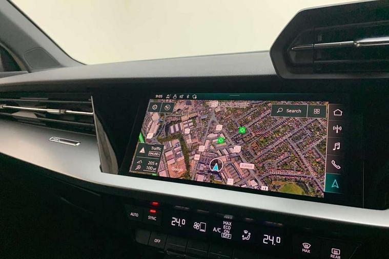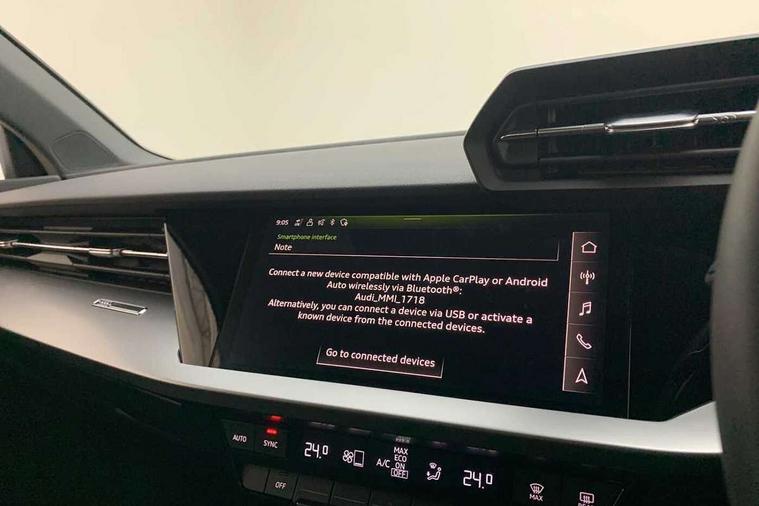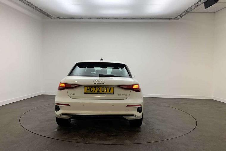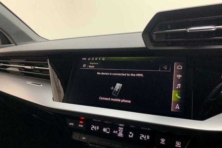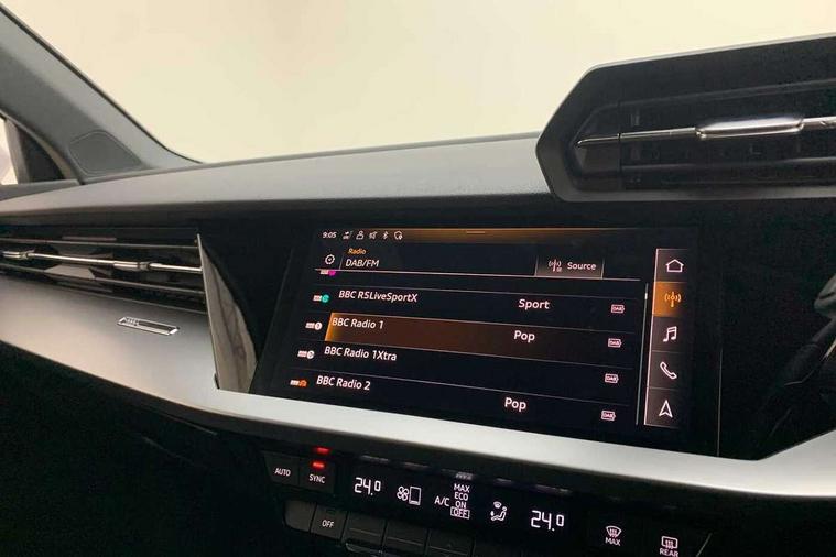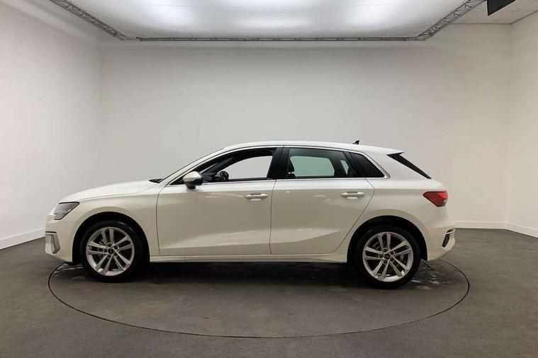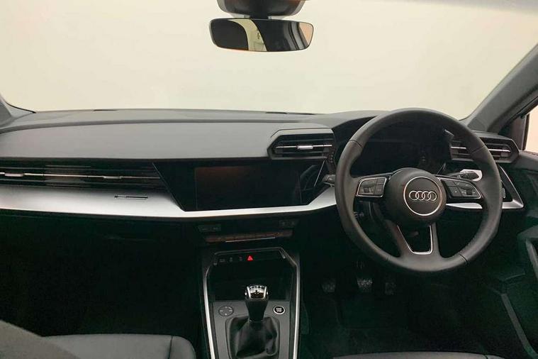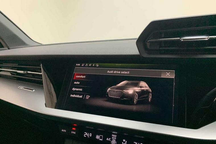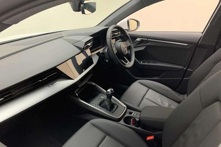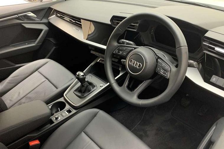 Inlays with silk effect paint in platinum grey, Aluminium interior elements pack - A3 Sportback, Sport styling pack - A3 Sportback, Anti theft alarm, Anti-theft wheel bolts, Electronically operated child lock, Immobiliser, Remote control central locking, 2xUSB-C connection with data and charging functions, 6 passive loudspeakers, DAB Digital radio, 3x3 point rear seat belts, Audi pre sense front, Driver and front passenger airbag with passenger airbag deactivation, Electronic Stabilisation Control (ESC) including ABS, ASR and EDL, First aid kit with warning triangle and 2 safety vests, Front side airbags with head airbags and interaction airbag, Pre-sense front with pedestrian and cyclist detection, Seatbelt monitoring, Tyre pressure loss indicator, 3rd brake light, Acoustic glass windscreen, Aluminium window trim, Auto dimming frameless rear view mirror, Body colour exterior mirrors, Body colour roof spoiler, Electrically adjustable/heated/folding/dimming door mirrors with kerb view includes integrated LED indications + kerb view function for passenger side, Front electric windows, LED daytime running lights, LED headlights and halogen rear lights, Light and rain sensors, Rear electric windows, Rear side wing doors, Rear window, rear door windows and rear side windows in clear glass, Rear wiper, 12V socket and storage compartment in front centre console, 3 seat bench in 2nd row, 40/20/40 split folding rear seat bench with cupholder, Dual zone electronic climate control, Front and rear centre armrest, Front and rear headrests, Front door sill trims with aluminium inlay, Front/rear floor mats, Height and reach adjustable steering wheel, Interior lighting - Front and rear roof module including reading lights, glove compartment light and right hand side, Luggage compartment floor covering, Manual boot compartment lid, Manually adjustable front seats, Seat side bolsters, Single front passenger seat, Steel grey cloth headlining, Twin leather upholstery, Audi drive select (Auto, Comfort, Dynamic and Individual), Audi smartphone interface, Audi Virtual Cockpit - 10.25" digital and colour instrument cluster, Automatic start/stop system with recuperation, Bluetooth interface, Collision avoidance assistant, Cruise control, e-Call (emergency call), Electromechanical power speed sensitive steering, Lane departure warning system, MMI Navigation Plus with high resolution 10.1" colour touch screen display, Rear parking sensors, Service indicator, Trip computer, Voice control system with natural language interaction, Standard suspension,