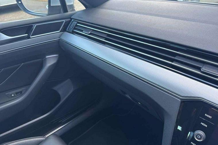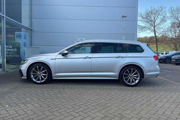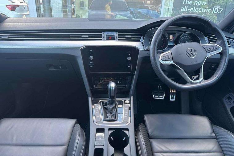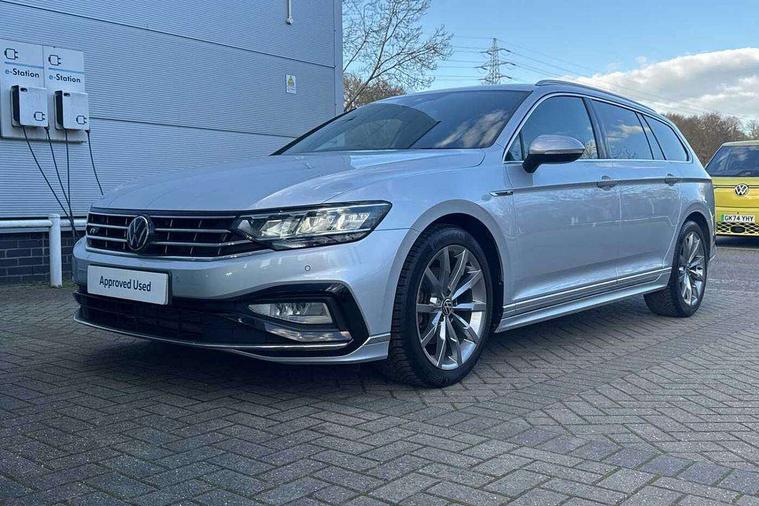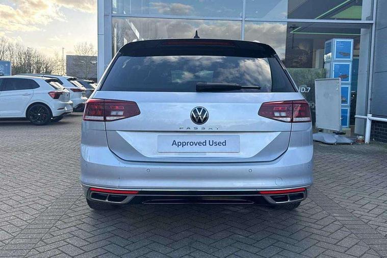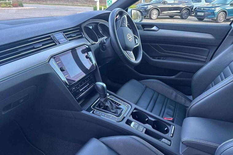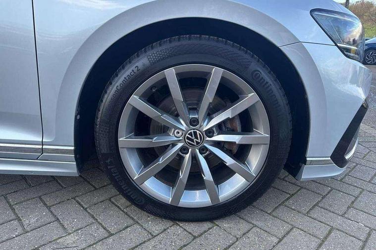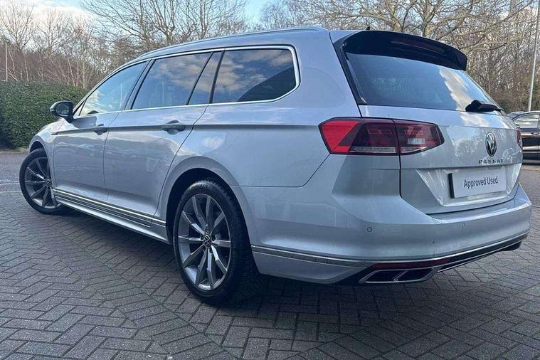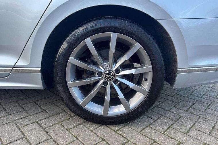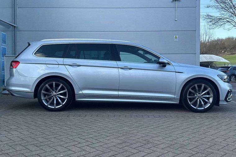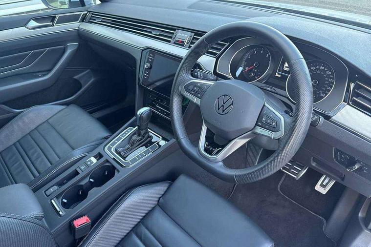 Adaptive cruise control including Front Assist, radar sensor controlled distance monitoring system, City emergency braking system, Driver alert system, Driver profile selection, Exterior temperature gauge with frost alarm, Lane assist, Low washer fluid warning light, Multifunction computer includes visual gear, One touch indicator turn signal, Proactive occupant protection, Security and service including e-call, Speed sensitive power steering, Speedo and rev counter, electronic odometer, trip, service interval display and fuel gauge, Start/Stop function, Traffic jam assist, Voice activation, Warning buzzer and light for front seatbelts unfastened, We connect plus, Battery regeneration during braking, Misfuel prevention device, Petrol Particulate Filter, Aerial for radio integrated into rear windscreen, DAB Digital radio receiver, External, USB type C data sockets with increased charging performance front (45 Watt), All LED headlights with reflector technology incl. LED DRL and 12 separate LED indicator function lights, Auto dimming interior rear view mirror, Automatic headlights with dusk sensor, Automatic leaving home and manual coming home lighting functions, Black radiator grille with chrome louvres, Body colour bumpers, Body colour door handles, Body coloured door mirrors with integrated indicators, Chrome side window surrounds, Electric heated windscreen washer jets, Front and rear electric windows, Front fog lights with static cornering function and chrome trimmed surround, Fully galvanised body, Gloss black finish on B pillar, Heated rear window, LED rear lights, LED rear number plate lights, LED third brake light, Plastic load sill protection, Rain sensor, Rear side wing doors, Rear tinted glass from B pillar backwards, approx 65% tinted, Rear window wash/wipe, Remote electrically adjustable and foldable heated door mirrors including automatic dimming function on drivers side door mirror puddle lights, Silver anodised roof rails, Warning lights for open tailgate and doors, White instrument lighting, Windscreen wipers/ intermittent wipe + 4 position delay, 12V socket in front centre console, 12V socket in luggage compartment, 3 seat bench in 2nd row, 40:20:40 split folding rear seat backrests, Carbon optic side bolsters, Climate control - 3 Zone electronic air conditioning with automatic air recirculation, Driver's door storage compartment for 1.0 litre bottle, Extending luggage compartment cover with convenience opening, stowable, Front and rear interior lighting with delay and dimming function, Front centre armrest with storage compartment and two rear air vents, Front cupholders x2 with covers, Front passenger storage compartment for 1.5 litre bottle, Front seats with embroidered R Line logo on backrest, Height adjustable and removable variable boot floor, Height adjustable rear seat head restraints (x3), Height/reach adjust steering wheel, Illuminated vanity mirrors, Isofix child seat preparation, outer rear seats, Load lashing points x 4 in luggage compartment, Load through provision, Lockable, illuminated, cooled glovebox, Luggage compartment lighting, Nappa leather upholstery, Rear seat centre armrest with storage compartment, Single front passenger seat, Stainless steel pedals, Storage compartment in rear doors, Storage compartment in roof console with cover, Unique R Line door sill protectors, Unique R Line front and rear carpet mats, Easy open package with full electric tailgate/ boot - Passat (Estate), R line styling pack - Passat (Estate), 3x3 point rear seatbelts, ABS (Anti locking brake system) includes BAS (Brake assist) and EBD (Electronic brake pressure distribution), Automatic post collision braking, Disc brakes front and rear, Door open warning reflectors, Driver/Front Passenger airbags, Drivers and front passengers safety optimised head restraints, longitudinal and height adjustable, Drivers knee airbag, Electronic parking brake with auto hold, First aid kit and warning triange with 2 face masks, Front and rear passenger curtain airbags, Front passenger airbag deactivation switch, Front side impact airbag, Height adjustable front 3 point seatbelts + pretensioners, Hill hold function, Pre crash preventive occupant protection, Rear door child safety locks, Rear seat side impact airbags, Rigid safety cell with front and rear crumple zones, Tyre pressure loss indicator, Volkswagen roadside assistance, Warning light for rear seat belts if unfastened, Alarm with interior protection and deactivation via infotainment system, Electronic engine immobiliser, Locking wheel nuts, Remote central locking, Chrome air vent and instrument surround, Unique R Line dark diamond flag decorative inserts in dash and door panels,