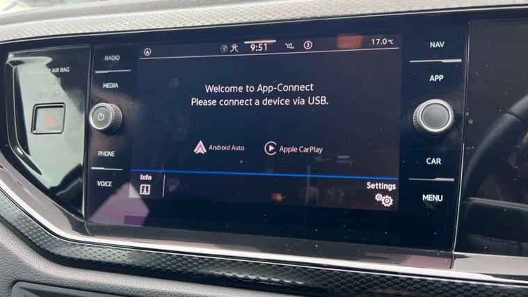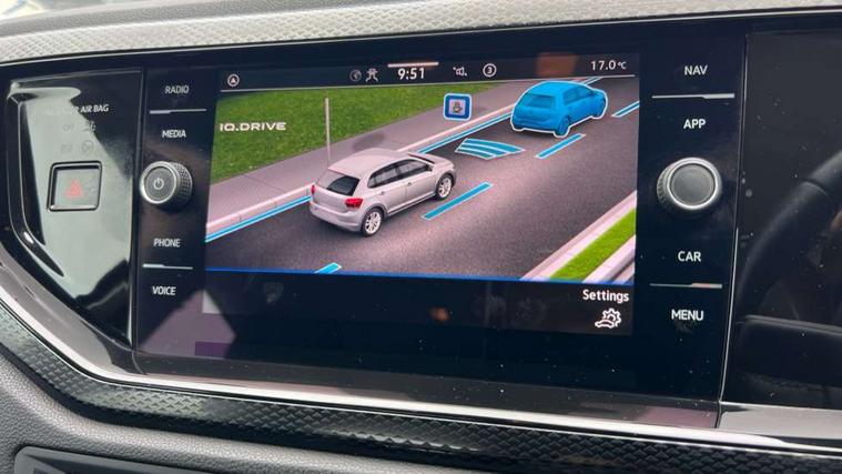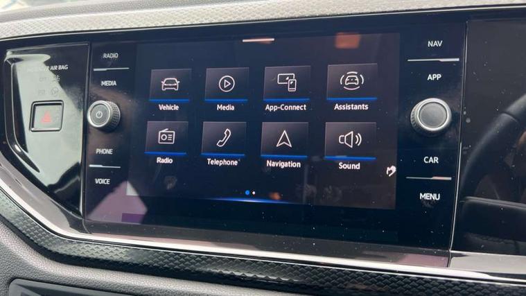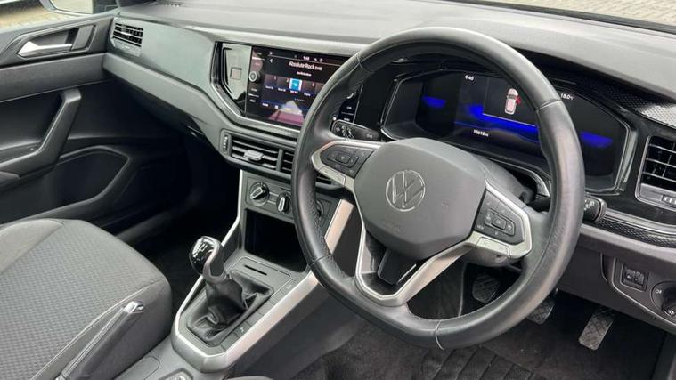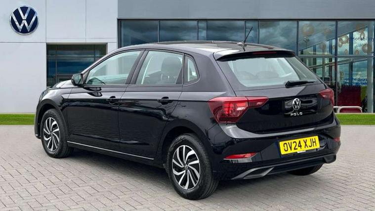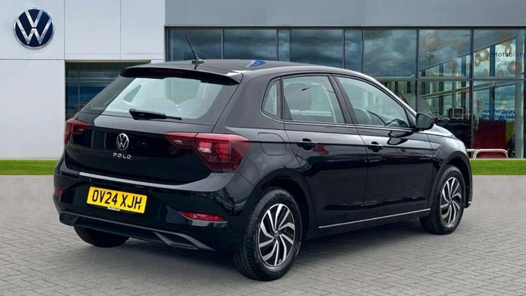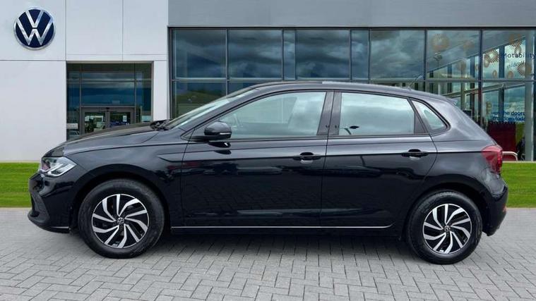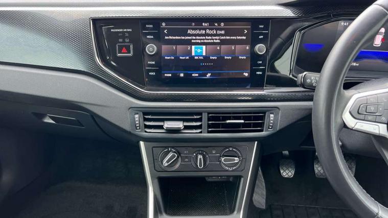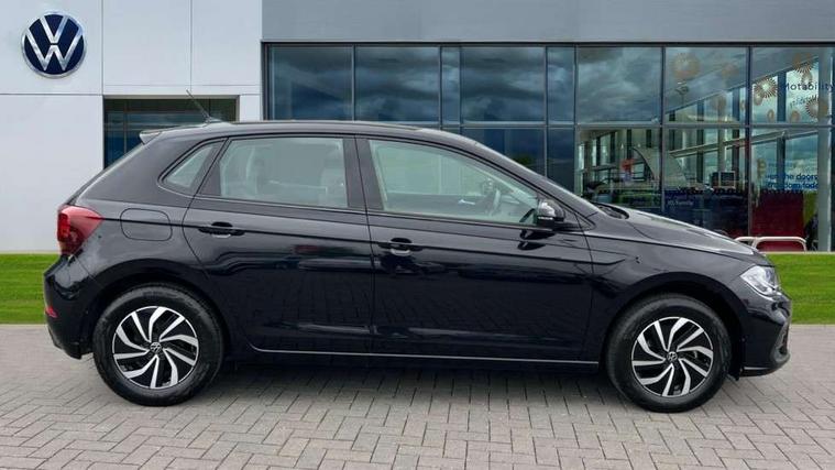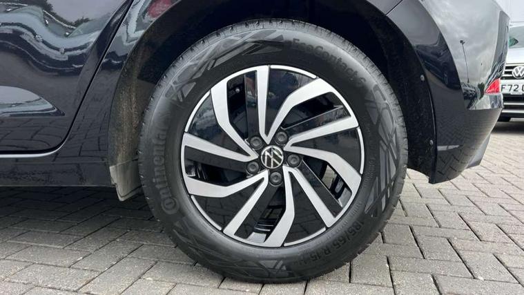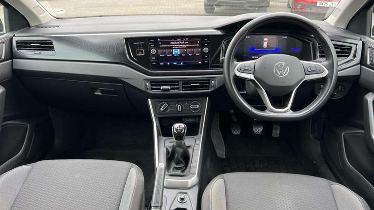 Adaptive cruise control without follow-to-stop and speed limiter, Advanced driver attention and drowsiness monitor, Bluetooth mobile phone interface, Dynamic road sign display, Emergency call service, Power assisted speed sensitive steering, Preparation for navigation system with media and internet package, Preparation for We connect and We connect plus, Speedo and rev counter, electronic odometer, trip, service interval display and exterior temperature gauge, Standard rear axle, Travel Assist - Lane keeping system and traffic jam assist, Travel assist including emergency assist, Trip computer, Warning signal and warning light for front and rear seatbelts not fastened, Washer fluid level indicator, Wireless app connect, Front wheel drive, Rear shock absorpion, Start-stop system with battery regeneration (recuperation - energy recovery during braking), DAB Digital radio, Diversity antenna for FM reception, Front and rear 6 speakers, Automatic dimming interior rear view mirror, Automatic headlight control with LED separate daytime running lights with coming/leaving home function, Body colour bumpers with chrome inserts, Body colour door handles, Body colour door mirrors, Electric front windows, Engine badge deletion, Headlight range adjustment, Heat insulating and laminated safety glass windshield, Heat insulating darkened glass in side and rear windows, Heat insulating glass windscreen, LED Headlights, LED rear combination lamps, Power folding adjustable/heated exterior mirrors and front passenger exterior mirror lowering function, Rain sensor, Rear electric windows, Rear fog light, Rear side wing doors, Rear windscreen washer and wiper with interval delay, Third brake light, 12V power socket in centre console, 2 front and 2 rear reading lights with switch off delay and dimmer, 2 USB-C ports in the front, 2 USB-C charging sockets on the center console in the rear, 3 rear head restraints, 60/40 split folding rear seat and rear seat bench not split, Ceramique roof lining, Chrome plated radiator grille inserts, air vent surrounds and light switch surrounds, Door and side trim panel, Driver and front passenger seat height adjustment, Driver/passenger sunvisors with illuminated vanity mirrors, Front centre armrest, Front seat backrest storage pockets, Front standard seats, Handbrake lever handle in leather, Hartley/Thomas cloth upholstery, Headliner in recycled material, Isofix child seat preparation easy-fit (for two outer rear seats, and front passenger seat) compatible with I-size, Leather trimmed gear knob, Luggage compartment cover, Luggage compartment lighting, Removable luggage compartment floor, Single front passenger seat, Standard climatic zones, Standard pedal cluster, Three spoke leather wrapped multifunction steering wheel, Light and vision pack - Polo, 3 point height adj front seatbelts + pretensioners, 3x3 point rear seatbelts, ABS, Driver and front passenger airbag with front passenger airbag deactivation, Drivers and front passengers safety optimised head restraints, ESC (Electronic stability control) + EDL (Electronic Differntial lock) and ASR (Traction control), Extended and predictive pedestrian/ cyclist protection, Front assist with autonomous emergency braking (for Adaptive Cruise Control ACC up to 130 mph), Front curtain and side airbags with center airbag, Front disc brakes, Hill hold control, Manual child lock in rear doors, Rear drum brakes, Single tone horn, Tyre pressure loss indicator, Alarm with interior protection, Anti-theft alarm system with interior monitoring, backup horn, and towing protection, Anti-theft wheel bolts, Electronic engine immobiliser, Lava stone black gloss/matt decorative inserts in dash and front door panels, Low rolling resistance tyres,