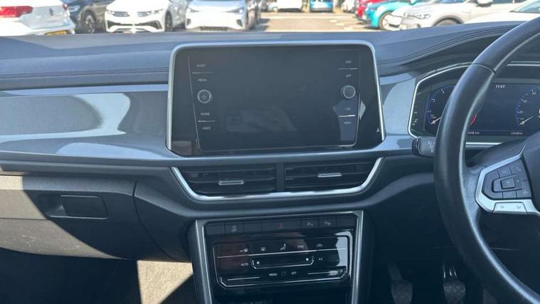 10.25" Digital cockpit pro, Bluetooth mobile phone interface, Driver alert system with fatigue detection, Driver tips and journey analysis, Emergency call service, Lane keeping system Lane Assist, Modified key software - reduce switch off time for key status change to Long no motion, Online services, Park assist including front and rear parking sensors, Service interval indicator, Tailgate/trunk lid release from outside, Think blue trainer driver tips and journey analysis, Warning sound and light for front seatbelts unfastened, Wireless app connect, Battery regeneration during braking, Start/stop function with battery regeneration, Diversity antenna for FM reception, Front and rear 6 speakers, Music playback - MP3, WMA and AAC files, Premium USB cable in choice of either Apple or Android smartphone compatibility, SD card slot, Simultaneous pairing of 2 compatible mobile devices, Title and cover art display, We Connect and We Connect Plus functionality, 3rd brake light, Auto dimming interior rear view mirror, Automatic hazard lights activation under emergency braking, Automatic headlight control with LED separate daytime running lights with coming/leaving home function, Body colour sports bumpers with silver metallic underbody fascia, Dynamic headlight range control with self adjusting whilst driving, Extended roof spoiler, Exterior mirrors aspherical on driver side, convex on front passenger side, External USB type C socket and charging sockets, Front windscreen wiper with intermittent wipe and 4 position delay, Heated rear window, LED Plus headlamps, LED rear combination lamps, LED rear number plate lights, LED tail lamp rear comination lamps, Light mode for poor weather, rain, fog or snow, Power windows with comfort operation and circuit breaker, Rain sensor, Rear exhaust tailpipe, Rear fog light on one side and reversing lights on both sides, Rear side wing doors, Rear wash/wipe with intermittent wipe setting, Remote electrically foldable door mirrors, puddle lights and reverse activated passenger's door mirror, 12V power socket in centre console, 3 rear head restraints, 3 seat bench in 2nd row, 4 load lashing points in luggage compartment, Air care climatronic air conditoning system with active combination filter and 2-zone temperature control, Chrome plated radiator grille inserts, air vent surrounds and light switch surrounds, Door and side trim panel with leatherette insert, Drawer under drivers seat, Front + rear carpet mats, Front centre armrest, Front comfort sports seats, Front cupholders x 2, Front footwell illumination, Instrument lighting, white adjustable panel illumination, Interior ambient lighting and surround lighting, Interior light delay, Isofix child seat preparation, Leather gearshift handle, LED interior light with switch off delay/dimmer and 2 front/rear LED reading lights, Load-through provision with cup holder when folded down ('Unsplit rear seat bench, split folding backrest, with centre armrest), Luggage compartment lighting, Non-folding front passenger seat backrest, Single front passenger seat, Storage compartment in left and right luggage area, Storage compartment in rear doors, Storage compartments in driver and front passenger doors, Sunvisors with illuminated vanity mirrors, Variable boot floor, height adjustable and removable, Driver assistance pack without proactive passenger protection - T-Roc, 3 point height adj front seatbelts + pretensioners, 3 point seatbelts in outer rear with ECE label, ABS, Child locks on rear doors, Driver and front passenger airbag with front passenger airbag deactivation, Driver and front passenger safety-optimised head restraints, Drivers seatbelt reminder, Electronic parking brake, Electronic Stability Control (ESC) inc EDL (Electronic Differential Lock) and ASR (Traction Control), Front and rear passengers curtain airbag system including front side airbags, Front assist with city emergency braking and pedestrian monitoring, Front seat side impact airbags, Predictive pedestrian protection, Rear disc brakes, Single tone horn, Tyre pressure loss indicator, Volkswagen roadside assistance, Alarm with interior protection, Anti-theft alarm system with interior monitoring, backup horn, and towing protection, Remote central locking with SAFELOCK, radio remote control with 2 remote control folding keys, Trims for alloy wheels,