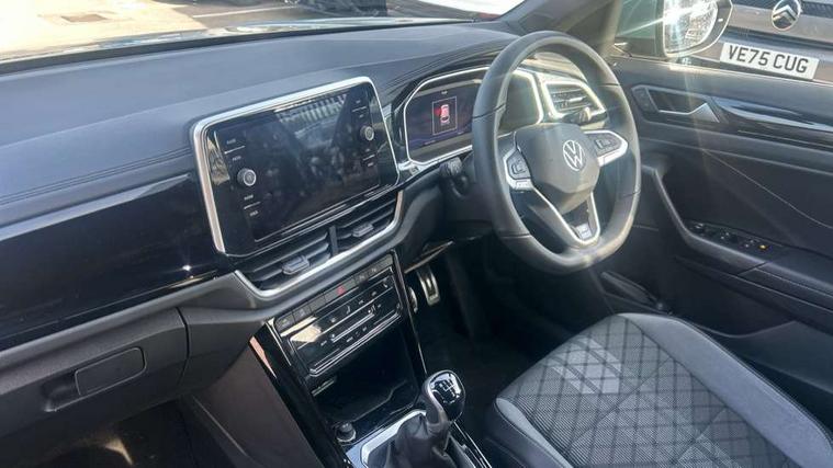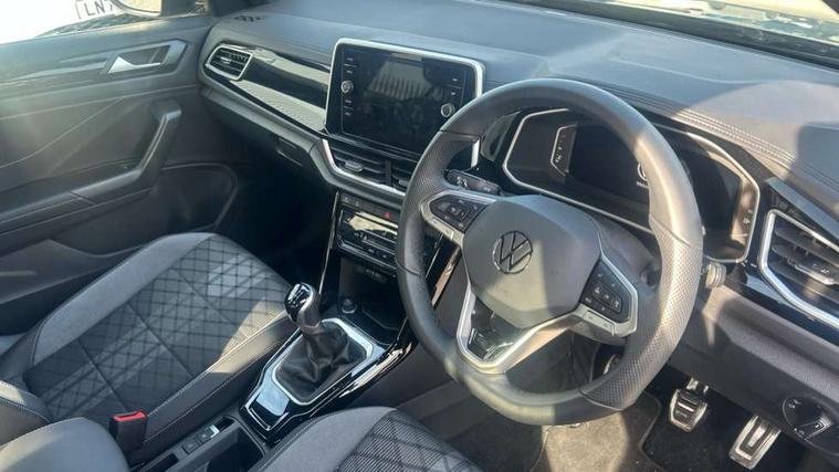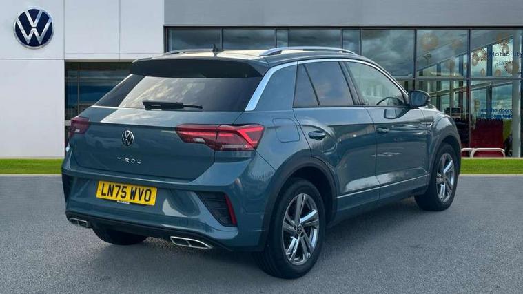 10.25" Digital cockpit pro, Advanced driver attention and drowsiness monitor, Emergency call service, Lane keeping system Lane Assist, Mobile phone interface, Modified key software - reduce switch off time for key status change to Long no motion, Online services, Park assist including front and rear parking sensors, Service interval indicator, Tailgate/trunk lid release from outside, Think blue trainer driver tips and journey analysis, Warning sound and light for front seatbelts unfastened, Wireless app connect, Battery regeneration during braking, Start/stop function with battery regeneration, DAB Digital radio, Diversity antenna for FM reception, Front and rear 6 speakers, Music playback - MP3, WMA and AAC files, Premium USB cable in choice of either Apple or Android smartphone compatibility, SD card slot, Simultaneous pairing of 2 compatible mobile devices, Title and cover art display, We Connect and We Connect Plus functionality, Auto dimming interior rear view mirror, Automatic hazard lights activation under emergency braking, Automatic headlight control with LED separate daytime running lights with coming/leaving home function, Body coloured exterior mirror housings and door handles, Electrically adjustable and heated door mirrors, Extended roof spoiler, Exterior mirrors aspherical on driver side, convex on front passenger side, External USB type C socket and charging sockets, Front windscreen wiper with intermittent wipe and 4 position delay, Heated rear window, LED 3rd brake light, LED rear combination lamps, LED rear number plate lights, Power windows with comfort operation and circuit breaker, Privacy glass for rear side windows and rear window, R-Line design body coloured bumpers, Rain sensor, Rear exhaust tailpipe, Rear fog light on one side and reversing lights on both sides, Rear side wing doors, Rear wash/wipe with intermittent wipe setting, Remote electrically foldable door mirrors, puddle lights and reverse activated passenger's door mirror, 12V power socket in centre console, 3 rear head restraints, 3 seat bench in 2nd row, 4 load lashing points in luggage compartment, Air care climatronic air conditoning system with active combination filter and 2-zone temperature control, Black roof lining, Chrome plated decorative trims, Chrome plated radiator grille inserts, air vent surrounds and light switch surrounds, Door and side trim panel with leatherette insert, Front + rear carpet mats, Front centre armrest, Front cupholders x 2, Front footwell illumination, Front reading light, Front scuff plates with R Line logo, Front seat back storage pockets, Glove compartment door with light, Instrument lighting, white adjustable panel illumination, Interior ambient lighting and surround lighting, Interior light delay, Isofix child seat preparation, Leather gearshift handle, Load-through provision with cup holder when folded down ('Unsplit rear seat bench, split folding backrest, with centre armrest), Luggage compartment lighting, Single front passenger seat, Stainless steel pedals, Storage compartment in left and right luggage area, Storage compartment in rear doors, Storage compartments in driver and front passenger doors, Sunvisors with illuminated vanity mirrors, Variable boot floor, height adjustable and removable, Driver assistance pack without proactive passenger protection - T-Roc, 3 point height adj front seatbelts + pretensioners, 3 point seatbelts in outer rear with ECE label, ABS, Child locks on rear doors, City emergency braking and pedestrian monitoring, Driver and front passenger airbag with front passenger airbag deactivation, Driver and front passenger safety-optimised head restraints, Drivers seatbelt reminder, Electronic parking brake, Electronic Stability Control (ESC) inc EDL (Electronic Differential Lock) and ASR (Traction Control), Front and rear passengers curtain airbag system including front side airbags, Hill start assist, Predictive pedestrian protection, Rear disc brakes, Two tone horn, Tyre pressure loss indicator, Volkswagen roadside assistance, Piano black decorative inserts in dashboard and front door trim panels, Trims for alloy wheels,
