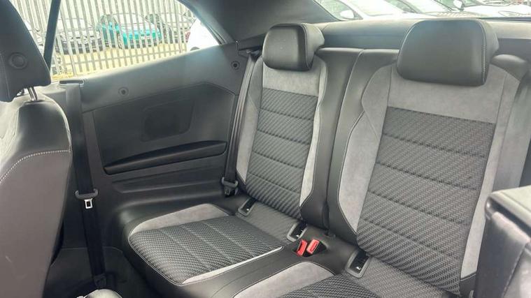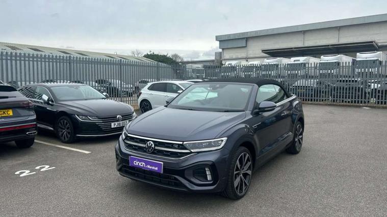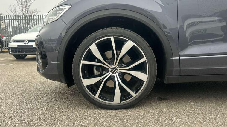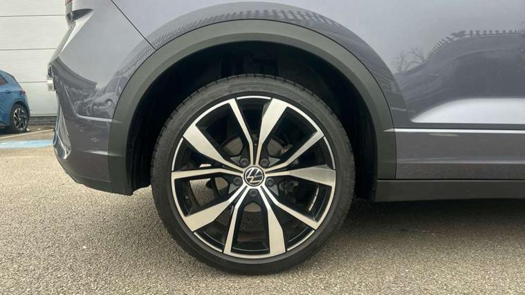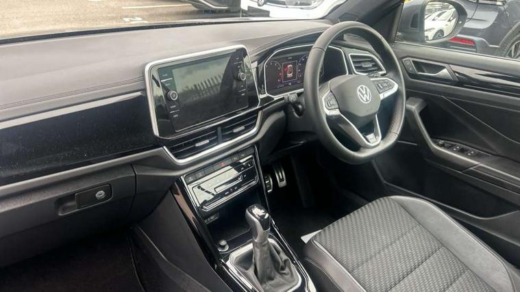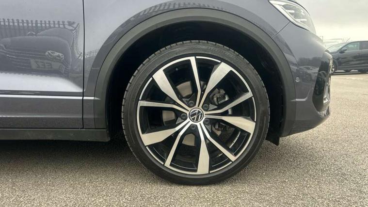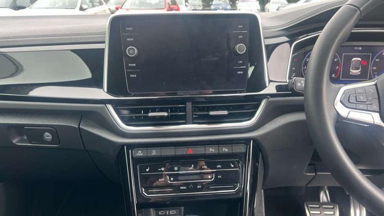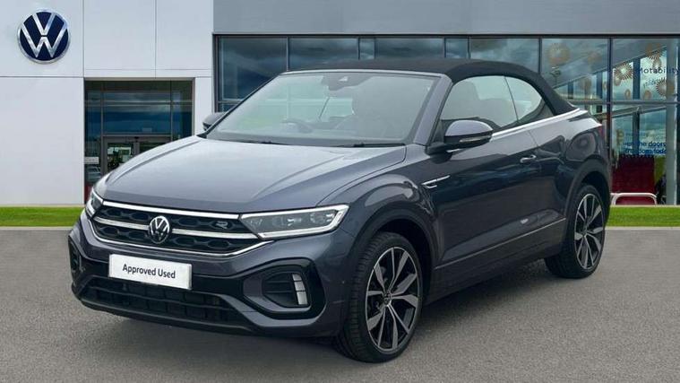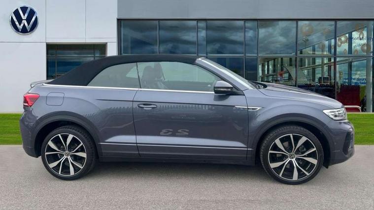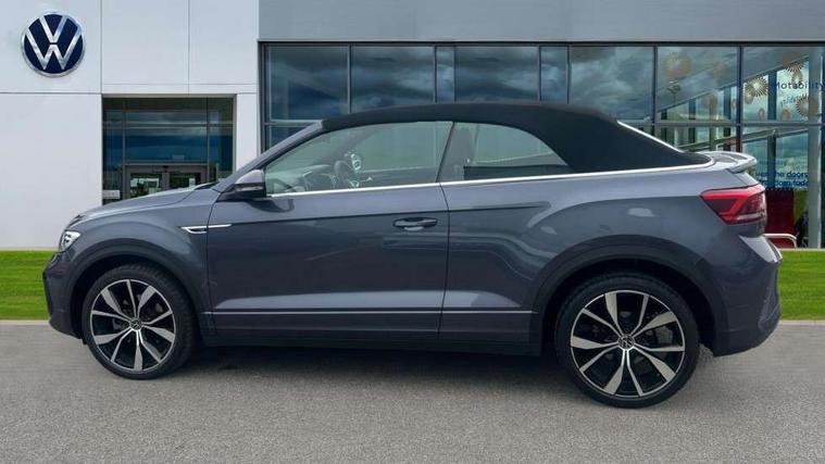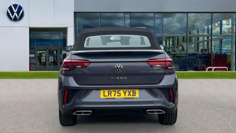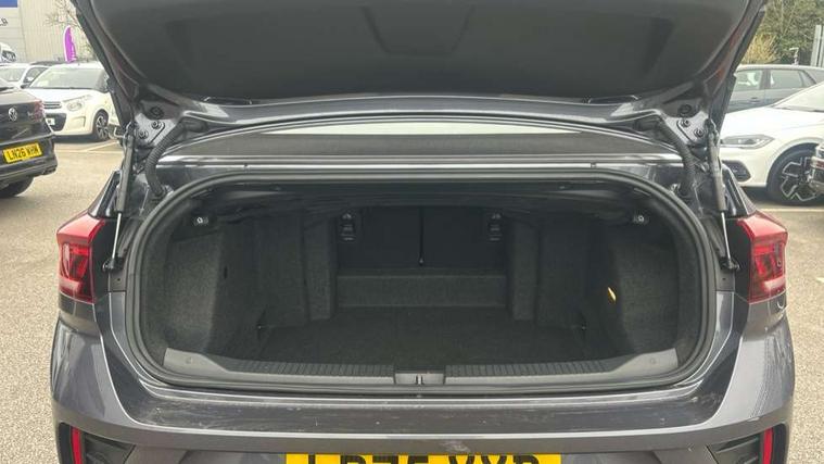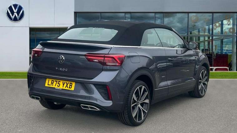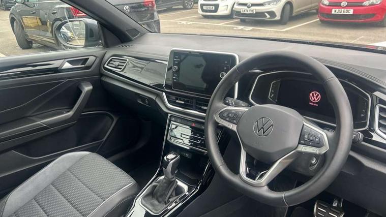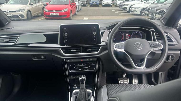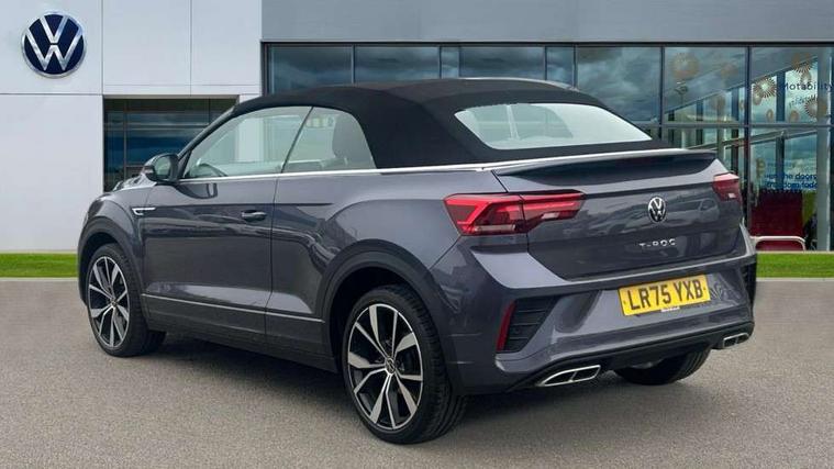 Adaptive cruise control and speed limiter, Advanced driver attention and drowsiness monitor, Brake pad wear indicator, Car information display, Digital Cockpit Pro with 10.25" Display, Driver tips and journey analysis, Dynamic road sign display, Emergency call service, Modified key software - reduce switch off time for key status change to Long no motion, Multifunction computer with visual gear change recommendation for fuel consumption, Multifunction front facing camera, Online services, Park assist including front and rear parking sensors, Speedo and rev counter, electronic odometer, trip, service interval display and exterior temperature gauge, Start/stop system with brake energy recovery, Tailgate/trunk lid release from outside, Warning sound and light for front seatbelts unfastened, Wireless App-Connect for apple Carplay and android Auto, Digital radio reception (DAB), Diversity antenna for FM reception, Mobile phone interface with inductive charging feature, Music playback - MP3, WMA and AAC files, SMS functionality - read, compose and send SMS messages using touch-screen display, Title and cover art display, USB-C Interface and USB charging socket, We Connect and We Connect Plus functionality, Ambient lighting with logo projection, Auto dimming interior rear view mirror, Automatic hazard lights activation under emergency braking, Automatic headlight control with LED separate daytime running lights with coming/leaving home function, Black roof, Body colour door handles, Body colour rear boot spoiler, Chrome effect left and right trapezoid exhaust tailpipe fascia surround, Chrome trim on upper and lower radiator grille, Dark red rear combination lamps in LED technology, Dusk sensor, Exterior mirrors aspherical on driver side, convex on front passenger side, Heat insulating glass windscreen, LED 3rd brake light, LED rear number plate lights, Power operated canvas convertible top, Power windows with comfort operation and circuit breaker, R-Line design body coloured bumpers, Rain sensor, Rear boot, Rear exhaust tailpipe, Rear fog light on one side and reversing lights on both sides, Remote electrically foldable door mirrors, puddle lights and reverse activated passenger door mirror, Volkswagen roundel, Windscreen wiper with intermittent wipe light, Without exterior ambient lighting, 12V socket in centre console storage area, 2 LED front reading lights, 2 seat bench in 2nd row, 50:50 Split folding rear seat backrests with fixed rear seat bench, Air care climatronic air conditoning system with active combination filter and 2-zone temperature control, Black door lower parts with chrome trim, Chrome plated surround to light, mirror and window switch, Door and side trim panel with leatherette insert, Easy entry backrest release, Front and rear carpet mats with black stitching, Front centre armrest, Front cupholders x 2, Front door pockets, Front seat back storage pockets, Front sports comfort seats with manual height adjustment, Heated leather wrapped multi function sports steering wheel with tiptronic, Height/reach adjust steering wheel, Inserts of front seats and outer rear seats in ArtVelours titan black, Instrument lighting, white adjustable panel illumination, Interior light delay, Interior light in footwell, Interior lighting with switch off delay and contact switches on all doors, Interior white ambient lighting and surround lighting, Isofix child seat preparation, Lockable glove compartment with light, Luggage compartment lighting, Power adjustable lumbar support in front, Rear head restraints, Single front passenger seat, Stainless steel pedals, Sun visors with illuminated vanity mirrors, Unique R Line door sill protectors, Driver assistance pack without proactive passenger protection - T-Roc Cabriolet DSG, 2 x 3-point seatbelts/outer rear seats with ECE label, Driver and front passenger airbag with front passenger airbag deactivation, Driver and front passenger safety-optimised head restraints, Drivers seatbelt reminder, Electronic parking brake, Electronic Stability Control (ESC) including ABS, ASR and EDL, Front and rear disc brakes, Front assist with autonomous emergency braking, Pedestrian monitoring, Predictive pedestrian protection, Rigid safety cell with front and rear crumple zones, Side airbag/thorax airbag system, for front passengers, Three point height adjust front seatbelts + pretensioners, Two tone horn, Tyre pressure loss indicator, Volkswagen roadside assistance, Anti-theft alarm system with interior protection and central locking system with SAFELOCK, radio remote control and 2 remote control folding keys, Electronic engine immobiliser, Trims for alloy wheels,