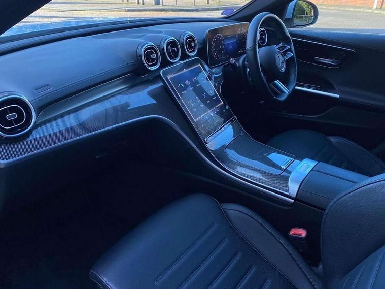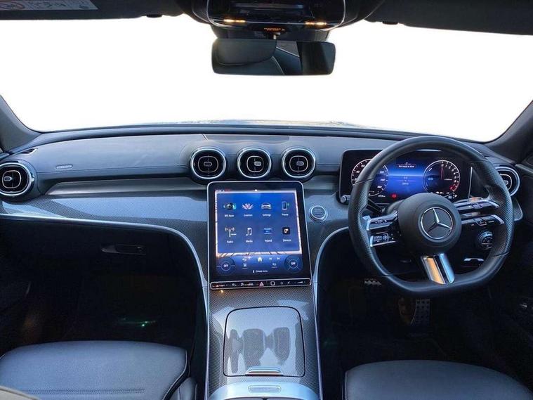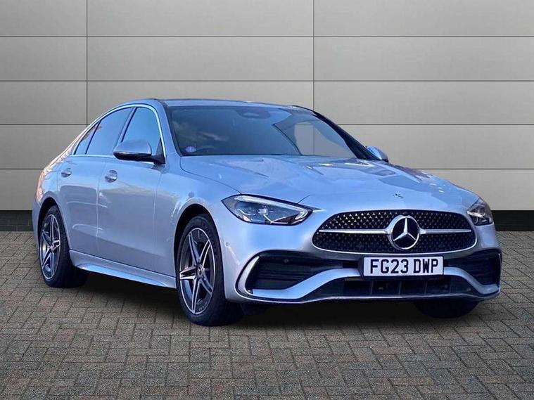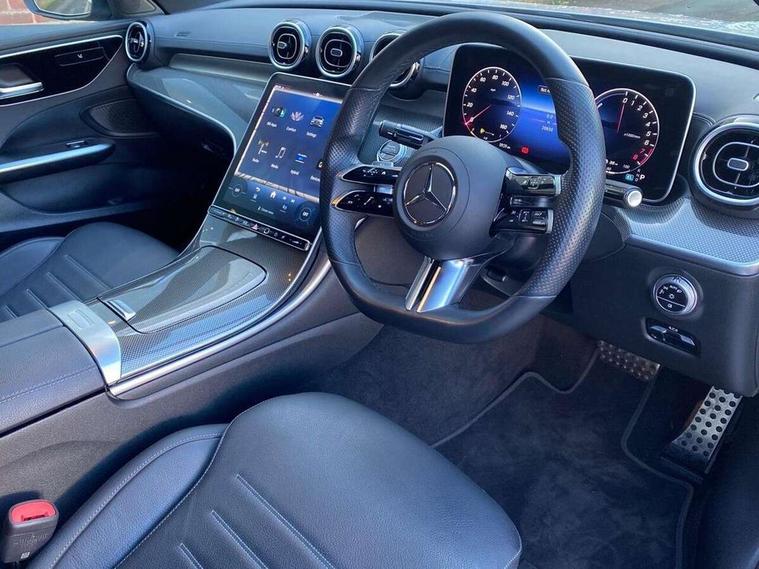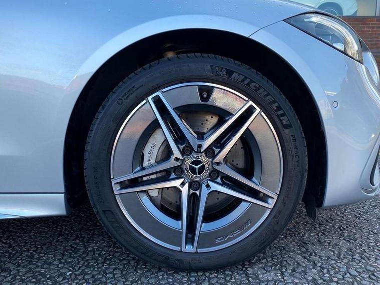 11.9" high resolution multimedia colour display, 12.3" digital instrument cluster display, Acoustic ambient protection, Active blind spot assist, Active brake assist plus, Active lane keeping assist, AMG DYNAMIC SELECT with a choice of driving modes (Slippery, Comfort, Sport, Sport+, Individual), Attention assist, Cruise control with speedtronic variable speed limiter, E-call, Extended MBUX functions, Finger print sensor, Fluorescent jacket for driver, MBUX navigation premium, MBUX voice control activated by keywords "Hey Mercedes", Mercedes connect me, Mercedes me remote services, Outside temperature gauge, Pre-installation for digital key transfer, Remote boot release, Service indicator (ASSYST), Smartphone integration, Speed limit assist, Sports direct steer speed sensitive steering, Status display for rear seat belts in instrument cluster, 11 kW AC onboard charger, 5m charging cable for household socket (mode 2), 5m charging cable for wall box/public charging stations(mode 3), 66l fuel tank with increased capacity, 9G TRONIC 9 speed automatic transmission, Agility control sports suspension and lowered by 15 mm, Petrol Particulate Filter, Sporty engine sound system, DAB Digital radio, MBUX multimedia system, Adaptive brake lights, Adaptive high beam assist, AMG body styling front apron, rear apron and side skirts, AMG front bumper with sporty air intakes and chrome elements, AMG rear bumper with high gloss chrome elements, AMG side skirts in vehicle colour, B-pillar trim in glossy black, Body coloured bumpers, Body coloured door mirrors, Chrome beltline trim, Daytime running lights, Electric windows with one touch opening/closing and obstruction sensors, Electrically adjustable and heated door mirrors, Green tinted glass, LED high performance headlamps, LED Indicators, LED tail lights, LED third brake light, Powerdomes on bonnet, Privacy glass, Radiator diamond grille with integrated Mercedes Benz star and louvre silver with chrome pins, Radio aerial integrated into rear window, Rain sensor with automatic windscreen wiper activation, Rear boot, Rear side wing doors, Side windows surround in polished aluminium, Two visible exhaust pipes integrated into rear bumper, 3 seat bench in 2nd row, 3 spoke flattened bottom AMG multifunction steering wheel in black nappa leather with chrome inserts and perforated leather in grip area, 40:20:40 split folding rear bench seat, AMG sports seats, Artico man-made leather upholstery, Audio and onboard settings control on multifunction steering wheel, Auto Mercedes-Benz child seat recognition sensor, Black air vents with silver chrome elements, Black floor mats with AMG lettering, Black roof liner, Door trim elements high gloss black with silver chrome surroundings and switches, Double cupholder in centre console, Folding rear seat backrest, Front and rear head restraints, Front centre armrest with storage compartment, Front door sills with Mercedes Benz lettering, Gearshift paddles on steering wheel, Heated front seats, Illuminated glove compartment stowage, Manually height and reach adjustable steering column, Overhead control unit in high gloss black, Rear top tether child seat ISOFIX attachment, Single front passenger seat, Sports pedals with stainless steel surfaces and rubber studs, Sunvisors with illuminated vanity mirrors, THERMATIC 2 zone automatic climate control, Interior lighting package - C Class, Mirror pack - C Class, Parking package with reversing camera - C Class, Seat comfort pack - C Class, Stowage space pack - C Class, USB package - C Class, 3 rear 3 point seatbelts, Active bonnet pedestrian safety measure which detects an impact and raises bonnet, Adaptive brake system with HOLD function and brake drying in the wet, Anti-lock braking system (ABS), Black seat belts, Brake calipers with Mercedes-Benz lettering + perforated front brake discs, Child proof door locks, Drivers knee airbag, Drivers pelvis airbag, Dual stage driver/passenger airbags, Electric parking brake, Electronic Stability Programme (ESP), Front centre airbag between driver and front passenger seats, Front side airbags, Larger brake discs on front axle, Rear seatbelt warning indicator, Sports braking system with perforated front disc brakes, Tyre pressure monitoring system, Warning triangle and first aid kit, Window airbags for driver, front passenger and rear passenger, Central locking with interior switch, automatic locking and crash sensor with emergency opening function, Chrome surround in electric key, URBAN GUARD vehicle protection (Thatcham Category 1) consisting of break-in, anti-theft alarm system (ATA), interior monitoring and tow-away protection, Artico man-made leather dashboard with contrast stitching, Centre console trim in metal weave, 18" AMG 5 spoke design aerodynamically optimised alloy wheels painted in tantalite grey with high sheen finish, Summer tyres, TIREFIT with tyre inflation compressor,
