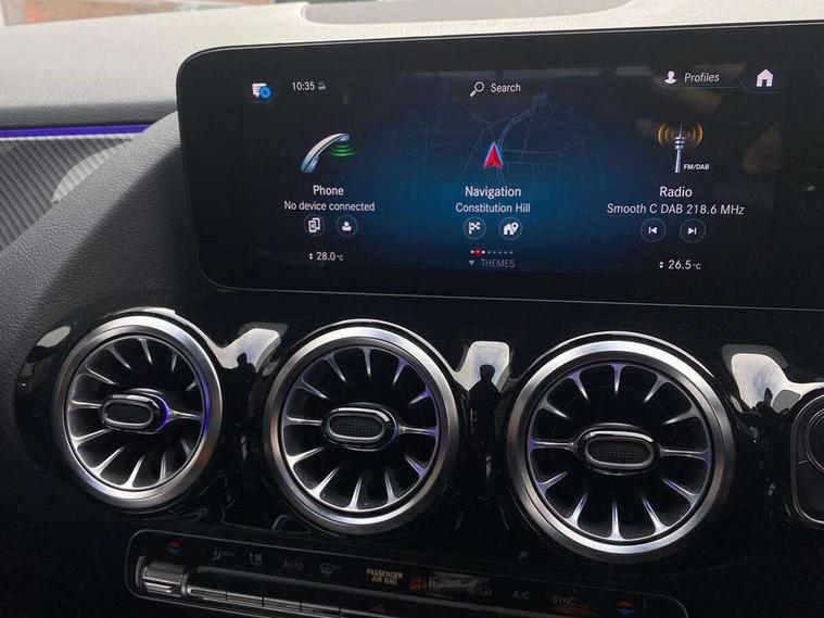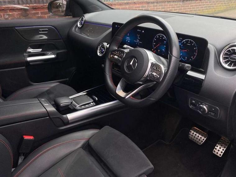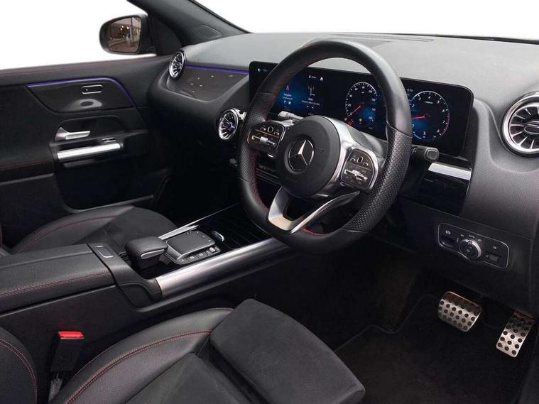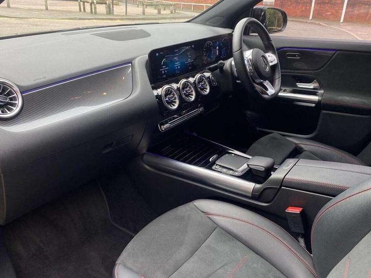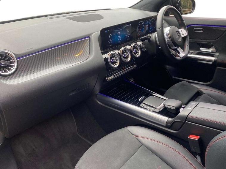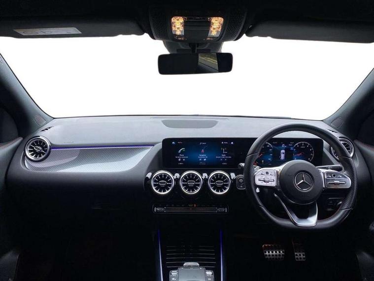 10.25 inch touchscreen central media display, 10.25" Digital instrument cluster display screen, Active lane keeping assist, Attention assist, Cruise control + speed limiter, Direct steering, DYNAMIC SELECT with a choice of driving modes (ECO, Comfort, Sport and Individual), ECO start/stop function, Fluid level warning indicator for fuel, oil, coolant and washer fluid, Hard-disk navigation, Hey Mercedes Voice activation, Lamp failure indicator, Mercedes me connect including emergency call system, accident recovery, breakdown and maintenance management, Mercedes me remote services, Multi function trip computer, Outside temperature gauge, Owners manual and service booklet in English, Pre-installation of private car share, Radio aerial integrated into front and rear windshields, Service indicator (ASSYST), Smartphone integration with Apple CarPlay and Android auto, Speed limit assist, Status display for rear seat belts in instrument cluster, Lowered comfort suspension, Rear axle multi-link, 2 USB ports (type C) in rear stowage compartment and one in front of center console, Bluetooth connectivity including audio streaming, DAB Digital radio, MBUX multimedia system, Media interface, Mercedes-Benz (225w) sound system with 10 speakers, Adaptive brake lights, Aerial for GPS, Aluminium roof rails, AMG front and rear apron, AMG specific/dual flow exhaust pipes in chrome (non-functional), Automatic headlamp activation, Beltline strips and weather strip in chrome, Black grained claddings with chrome parts, Body colour bumpers, Body colour door mirrors, Body coloured door handles with chrome insert for keyless entry, Car wash function, Dark privacy glass from B-pillar backwards, Electric front windows, Electric rear windows, Electrically adjustable and heated door mirrors with integrated LED indicators, Heated glass rear windscreen + timer control, Heated windscreen wash system, Interior mirror with black reading lamps and frameless, LED high performance headlamps with integrated LED daytime running lights, LED tail lights in two piece design, LED third brake light, Matt titanium grey front and rear apron trim, Pre-installation for trailer coupling, Rain sensor windscreen wipers, Rear fog lights, Rear side wing doors, Roof spoiler, Single lamella raditor grille with chrome dotted diamond grille and inlay, 12V power socket in centre console, 3 seat bench in 2nd row, 3 spoke multifunction sports steering wheel in nappa leather with flattened bottom and perforated grip area, 40:20:40 split folding rear seat backrests, Adjustable head restraints, Air conditioning - Two zone thermotronic luxury automatic climate control with display, Ambient lighting in front headrests, AMG floor mats with AMG lettering in front, Artico man-made leather/Microfibre Dinamica upholstery with red contrast stitching, Auto Mercedes-Benz child seat recognition sensor, Black roof lining, Brushed door pulls in silver chrome, Courtesy light in boot, Front centre armrest with stowage, Galvanished gear shift paddles on steering wheel, Heated front seats, illuminated door sills with changeable cover, Illuminated glovebox, Interior lighting - 64 colour Ambient lighting, Leather trimmed gearknob, Luggage net on driver/front passenger seat backrest, Manually height and reach adjustable steering column, Multi-gesture touchpad control on center console, Single front passenger seat, Sports pedals in brushed stainless steel with black rubber studs, Sports seats, Stowage compartment in centre console, Stowage compartment with retractable cover, Sunvisors with illuminated vanity mirrors, Twin front cup holders, Two outer rear seat isofix and top tether child seat fixing points, AMG body styling pack - GLA, Comfort seat pack - GLA Class, Interior lighting with light and sight pack - GLA, Load compartment pack - GLA, Mirror pack - GLA Class, Parking pack - GLA, 3 rear 3 point seatbelts, ABS with Brake Assist, Active bonnet pedestrain safety measure which detects an impact and raises bonnet by 65mm, Active brake assist includes forward collision warning system with autonomous braking, Adaptive brake assist with hold function and hill start assist, Bonnet with power domes, Brake pad wear warning indicator, Childproof locks manually operated for rear doors and electrically operated for rear power windows, Crash responsive emergency lighting, Driver and passenger head and side airbags, Drivers knee airbag, Dual stage driver/passenger airbags, Electronic parking brake, ESP curve dynamic assist, ESP with ASR, Front and rear seatbelt reminder, Front brake callipers with Mercedes Benz logo lettering on front, Front brake discs internally ventilated and perforated, Front passenger seat occupancy sensor, Tyre pressure monitoring system, Warning triangle and first aid kit, Window airbags, Alarm system with immobiliser and interior protection -Thatcham category 1, Keyless Go starting function, Remote central locking and crash sensor with emergency opening function, Urban guard vehicle protection, Vehicle key with decorative surround in chrome, Carbon structure trim, Chrome air vent surrounds, 19" AMG 5 twin spoke light alloy wheels aerodynamically optimised painted in tantalite grey with a high sheen finish, Summer tyres, Tirefit tyre sealant kit,