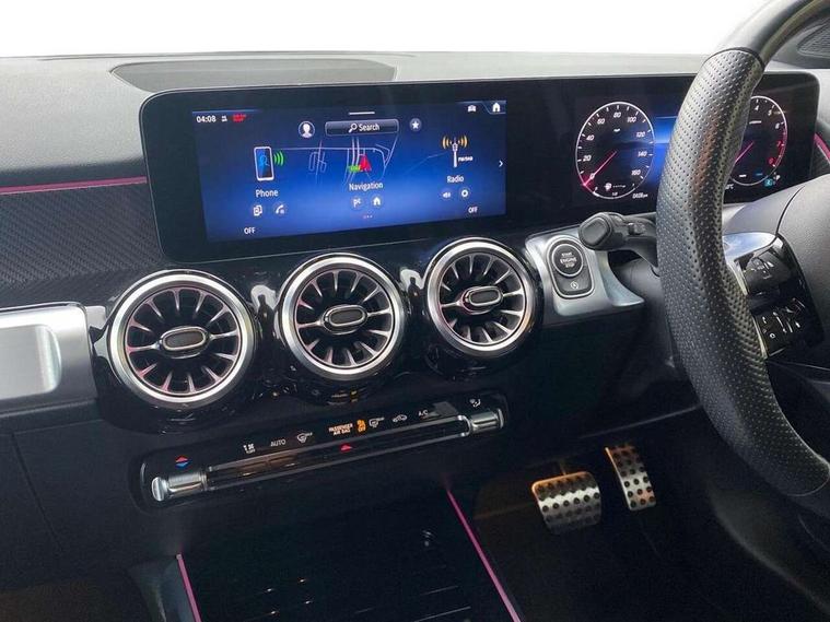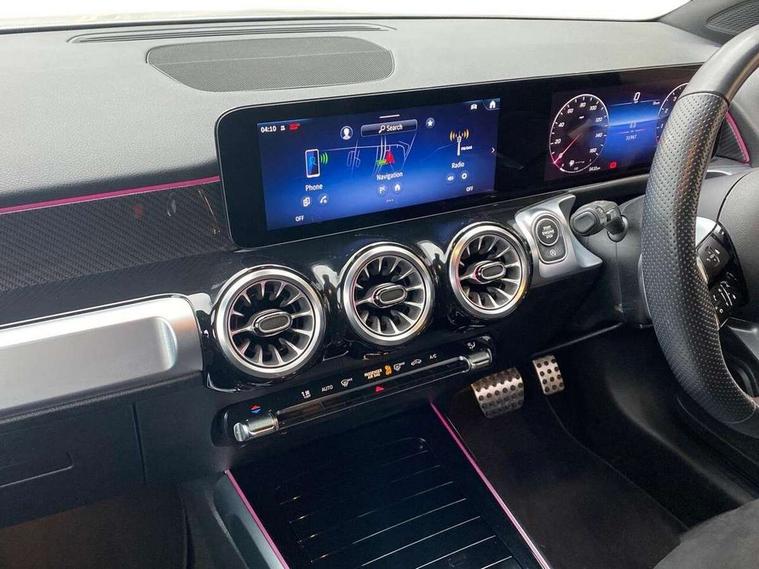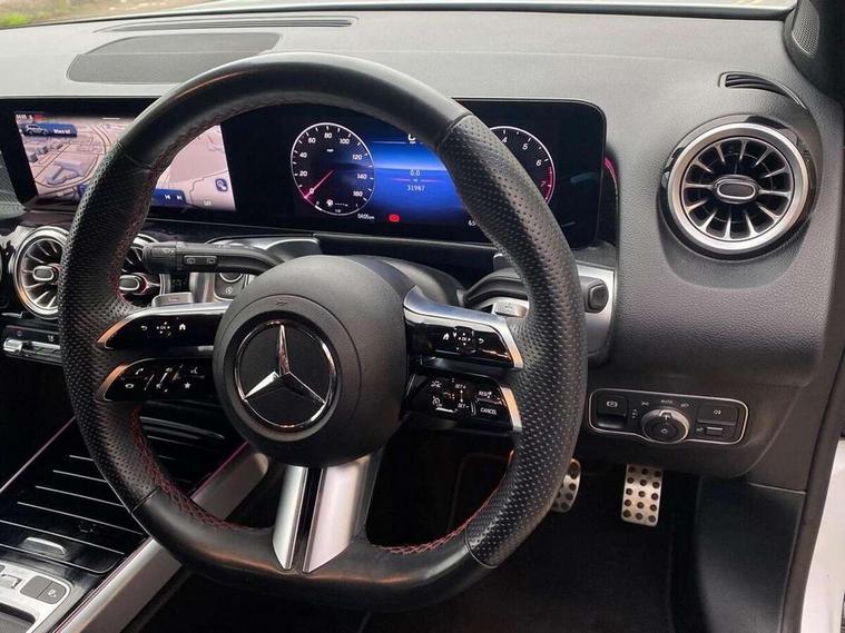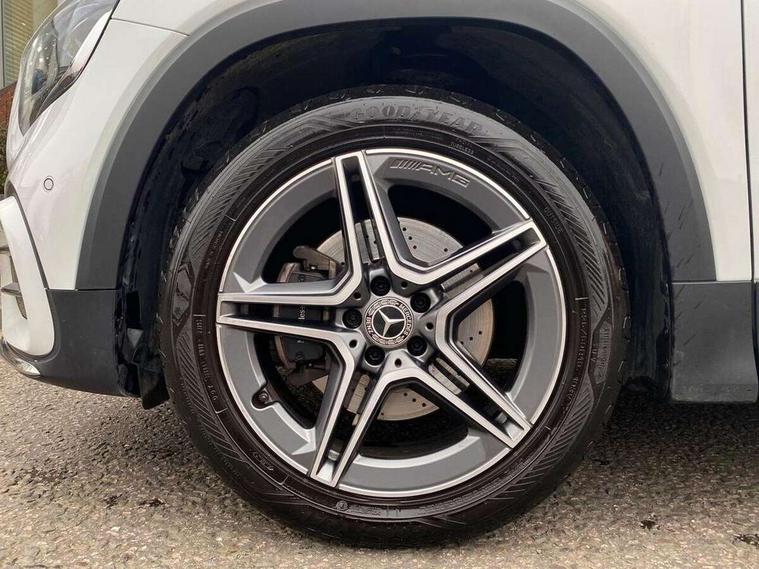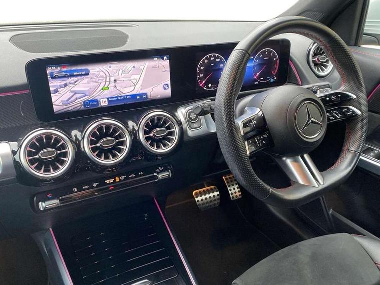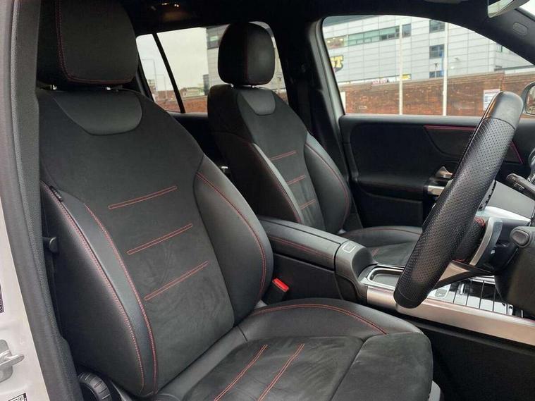 10.25 inch touchscreen central media display, 10.25" Digital instrument cluster display screen, 12 ultrasonic sensors in front and rear bumpers, 180 degree reversing camera with parking guidelines, Assisted parking: reversing backwards into perpendicular and parallel parking spaces, Attention assist - Monitors steering behaviour and long journey fatigue, Bluetooth connection, Brake pad wear indicator warning light, Car wash mode, Convenience opening and closing, Direct steering, DYNAMIC SELECT with a choice of driving modes (ECO, Comfort, Sport and Individual), ECO start/stop function, Engine start/stop button, Fluid level warning indicator for fuel, oil, coolant and washer fluid, Hard disk navigation, Hey Mercedes Voice activation, Lamp failure indicator, Lane keep assist, MBUX navigation premium, Mercedes me connect including emergency call system, accident recovery, breakdown and maintenance management, Mercedes me remote services, Outside temperature gauge, Owners manual and service booklet in English, Pre-installation of private car share, Preinstallation for parking damage notification, Radio aerial integrated into front and rear windshields, Remote boot closing, Service indicator (ASSYST), Smartphone integration with Apple CarPlay and Android auto, Speed limit assist, Tailgate, Trip computer in multifunction display with current consumption indicator, Ultrasound sensors - positioned in the handle of the tailgate, Wireless charging, Comfort suspension with ride height lowering, Rear axle multi-link, 1 USB-C port in the oddments compartment (Charge + Data transfer), 2 USB-C ports for the rear on the centre armrest (Charge only), 2 USB-C ports under the front centre armrest (Charge + Data transfer), DAB digital radio tuner, MBUX multimedia system, Mercedes Benz sound system (100 W) with 6 speakers, Pre installation for Mercedes Benz Link, Adaptive brake lights, Adaptive high beam assist, AMG front apron with front splitter in the colour of the vehicle with chrome trim element, AMG rear apron with visible tailpipe trim and chrome trim element, AMG specific/dual flow exhaust pipes in chrome (non-functional), Auto dimming rear view mirror, Beltline trim and window line trim strip in high gloss aluminium, Black grained side sill trim with chrome inlay, Body coloured door handles, Electric adjustable and heated door mirrors with integrated LED side indicators, Electric folding door mirrors, Front and rear electric windows, Headlamp assist automatic headlamp activation, Heat insulating dark-tinted glass starting from B-pillar, Heated glass rear windscreen + timer control, High level LED third brake light, Interior mirror with black reading lamps and frameless, LED high performance headlamps with integrated LED daytime running lights, LED tail lamp, Polished aluminium roof rails, Radiator grille as a diamond grille with chrome pins and central Mercedes star, Rain sensor windscreen wipers, Rear fog lamp, Rear side wing doors, Rear wiper, Single louvre in matt grey with chrome inserts and black highlights, Two visible tailpipe trim elements exhaust, Ultrasonic sensors - positioned in the front and rear bumpers, Wheel arch liners in the colour of the vehicle, 12V socket in the oddments compartment, 3 seat bench in 2nd row, 3 twin spoke flattened multifunction steering wheel in nappa leather - horizontal twin spoke in high gloss black, vertical twin spoke in silver chrome, 4 way adjustable lumbar support, 40:20:40 split folding rear seats, Air vents with silver chrome surrounds, AMG floor mats, AMG sports pedals with brushed stainless steel surfaces and black rubber studs, Automatic child seat recognition sensor, Black roof lining, Door handles with chrome inserts, Fluorescent jacket, Front and rear headrests, Front centre armrest with stowage, Galvanised steering wheel gearshift paddles in silver chrome, Handle recess lighting, Heated front seats, Height adjustable head restraints, Height/reach adjustable steering column, Interior lighting - 64 colour Ambient lighting, Luggage net on driver/front passenger seat backrest, Single front passenger seat, Sports seats, Stowage compartment with retractable cover, Sun visors with illuminated vanity mirrors, THERMATIC automatic climate control, Third row of seats for two people on rear seat, Twin front cup holders, Two outer rear seat isofix and top tether child seat fixing points, Easy pack tailgate, Interior lighting with light and sight pack - GLB, Seat comfort package - GLB, 3 rear 3 point seatbelts, Active bonnet pedestrain safety measure which detects an impact and raises bonnet by 65mm, Active brake assist includes forward collision warning system with autonomous braking, Adaptive brake assist with hold function and hill start assist, Airbags - kneebag for driver, Anti-lock braking system (ABS) with brake assist, Black seatbelts, Bonnet with power domes, Childproof locks manually operated for rear doors and electrically operated for rear power windows, Crash responsive emergency lighting, Curve dynamic assist, Driver and front passenger head and sidebags, Driver and front passenger windowbags, Dual stage driver and front passenger airbags, Electric parking brake, Electronic stability programme with acceleration skid control, Front and rear seatbelt reminder, Front brake callipers with Mercedes Benz lettering, Front passenger seat occupancy sensor, Perforated front brake discs, Tyre pressure monitoring system, Warning triangle and first aid kit, Guard 360 degree vehicle protection - Anti theft alarm system, tow away protection with visual, acoustic warning and alarm, Interior monitoring system, Keyless Go Access and drive authorisation system, KEYLESS-GO starting function, Remote central locking and crash sensor with emergency opening function, Thatcham category 1 alarm system with immobiliser and interior protection, Vehicle key with KEYLESS GO functionality, Carbon structure trim, 19" AMG 5 twin spoke light alloy wheels aerodynamically optimise