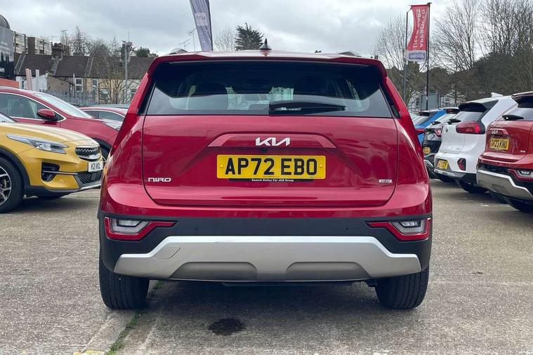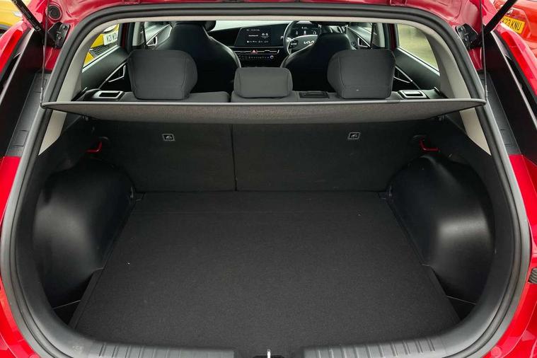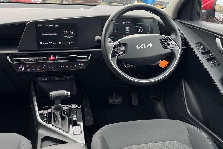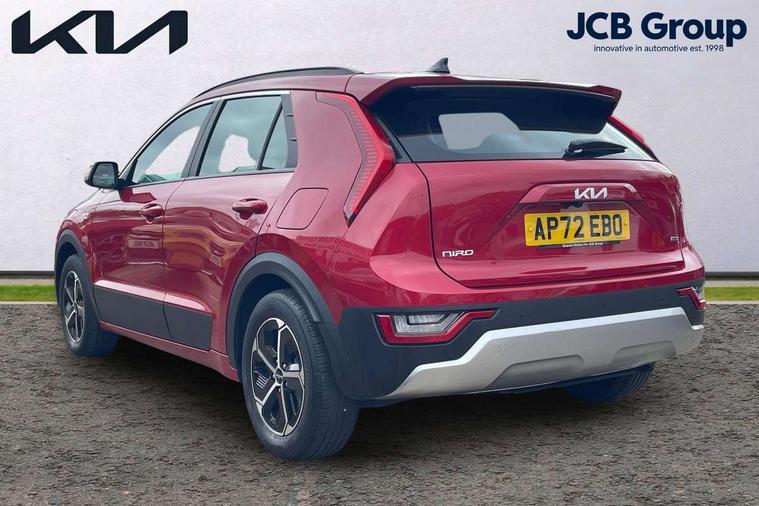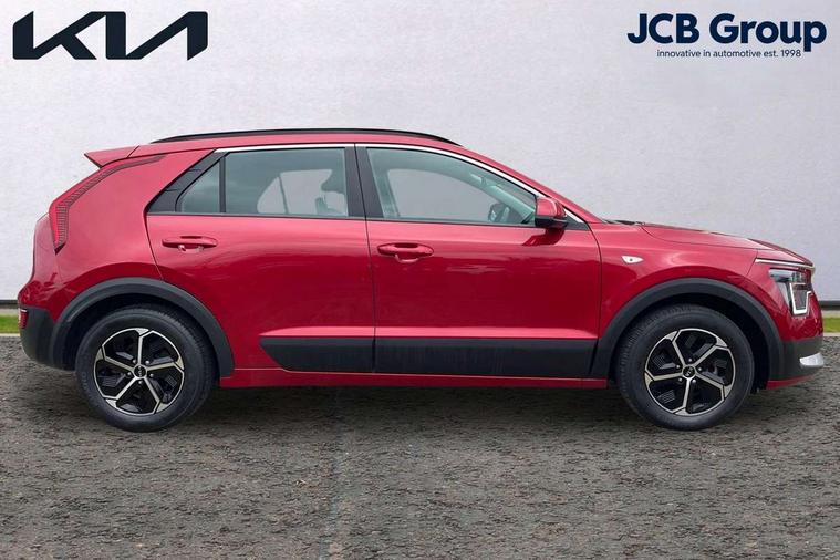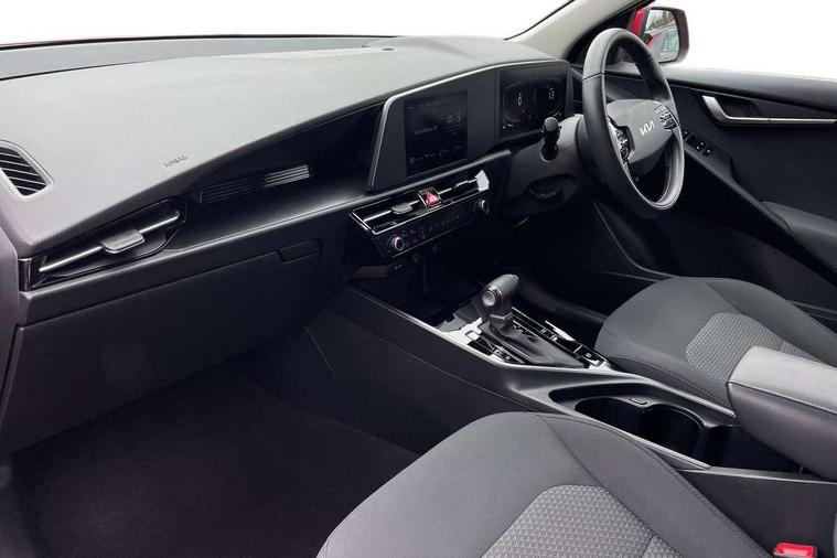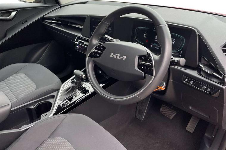 4.2" supervision colour cluster display, 8" touch screen, Adaptive smart cruise control function (SCC) with stop and go, Apple car play/Android Auto with voice control, Drive mode select (Eco, sport), E-call, Emergency stop signalling system, Forward Collision-Avoidance Assist (FCA) 1.5 - City/Pedestrian/Cyclist/Junction turning, Lane Following Assist (LFA), Lane keep assist, Motor driven power steering, Rear parking sensors, Reversing camera with dynamic guide lines, Speed limit assist, Tailgate, Trip computer with distance/fuel consumption/average speed, Sports H-Matic Automatic, 'Shark fin' mobile antenna, 2 type C USB ports on front seats, 2 USB ports in centre console including 1 type C, 6 speakers, Bluetooth with music streaming, DAB Digital radio, Steering wheel mounted controls, Acoustic windshield, All round electric windows with drivers auto up/down function, Auto dimming rear view mirror, Automatic defog system, Automatic headlight control system, Black embossed cladding, Body colour bumpers, Body colour door mirrors, Body colour exterior door handles, Dual LED headlights (low and high projection), Electric heated door mirrors, Front and rear silver skid plates, Heated rear window with timer, LED daytime running lights, LED rear combination lights, LED third brake light, Manual folding door mirrors, Rain sensor, Rear fog lights, Rear side wing doors, Rear spoiler, Rear wiper, Roof rails, Solar glass rear windows and tailgate, Solar glass windscreen, Welcome and follow-me home light functionality, Windscreen Washer Level Warning, 12V socket in front, 12V socket in luggage compartment, 3 seat bench in 2nd row, 60/40 split/folding 2nd row of seats, All-round height adjustable headrests, Artificial leather centre console storage box, Artificial leather steering wheel, Bulb overhead console, 2nd row and luggage lamp, Centre console cupholder, Cloth upholstery, Driver seat manual adjustment, Driver/passenger sunvisors with illuminated vanity mirrors, Dual zone automatic air conditioning, Front and rear door storage, H-Matic gear selection, Illuminated glovebox, Interior door lock/unlock function, ISOFIX Child seat top tethers and anchor fixings, Luggage area load cover, Luggage board, Metal paint interior door handles, Passenger seat height adjuster, Rear armrest, Single front passenger seat, Tilt/telescopic adjustable steering wheel, Towing pack - Niro, 3 point seatbelts on all seats, ABS, Automatic unlocking of doors in case of impact, Centre side front airbags, Curtain and side airbags, Drivers knee airbag, Dual shell horn, Electric parking brake with auto hold function, Electronic stability control, Front passenger airbag deactivation, Height adjustable front seatbelts, Hill start assist control (HAC), Manual rear child locks, Rear seat alert system, Traction control, Tyre pressure monitoring system, Alarm system and engine immobiliser, Deadlocks, Locking wheel nuts, Remote central door locking with fold away key, Visible vehicle identification number, Warranty - 7 Years/ 100, 000 miles, Graphite paint centre fascia, 16" alloy wheels, Tyre mobility kit,