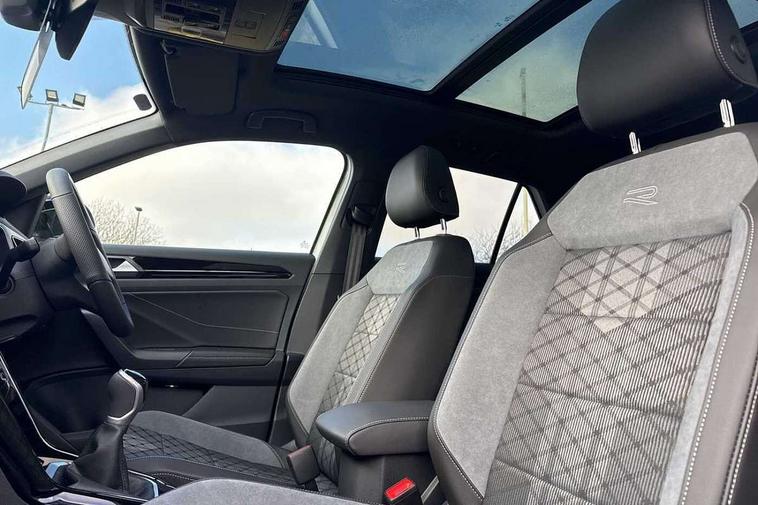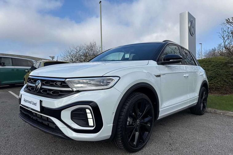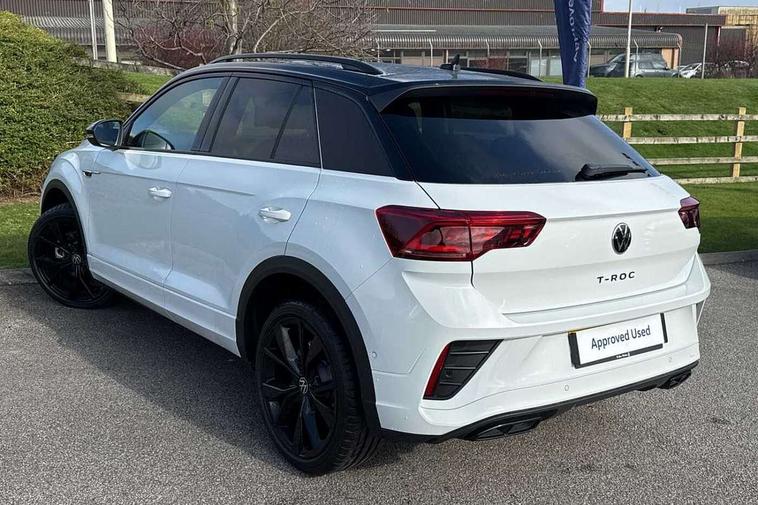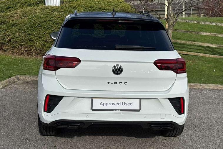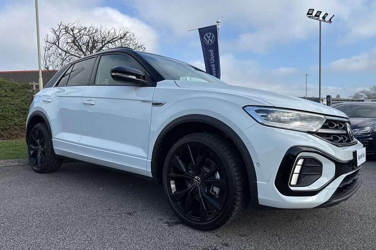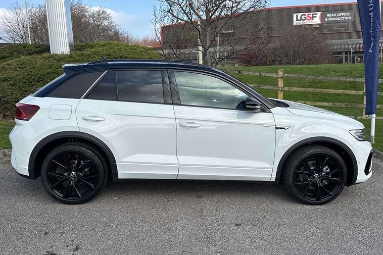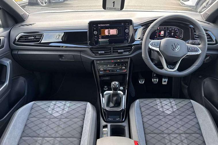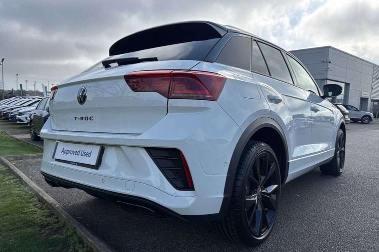 10.25" Digital cockpit pro, Advanced driver attention and drowsiness monitor, Emergency call service, Lane keeping system Lane Assist, Mobile phone interface, Modified key software - reduce switch off time for key status change to Long no motion, Online services, Park assist including front and rear parking sensors, Power assisted speed sensitive steering, Rear view camera, Service interval indicator, Tailgate/trunk lid release from outside, Think blue trainer driver tips and journey analysis, Warning sound and light for front seatbelts unfastened, Wireless app connect, Battery regeneration during braking, Rear shock absorption chassis with increased ride height, Start/stop function with battery regeneration, DAB Digital radio, Diversity antenna for FM reception, Music playback - MP3, WMA and AAC files, SD card slot, Simultaneous pairing of 2 compatible mobile devices, Title and cover art display, We Connect and We Connect Plus functionality, Advanced dynamic light assist for LED matrix headlights, Auto dimming interior rear view mirror, Automatic hazard lights activation under emergency braking, Black roof rails, Dynamic cornering light, Dynamic headlight range control with self adjusting whilst driving, Electrically adjustable and heated door mirrors, Extended roof spoiler, Exterior ambient lighting, Exterior mirrors aspherical on driver side, convex on front passenger side, External USB type C socket and charging sockets, Front windscreen wiper with intermittent wipe and 4 position delay, Heated rear window, Illuminated front grille, IQ LED matrix headlights, LED 3rd brake light, LED rear number plate lights, LED rear tail lights with dynamic turn signal, LED separate daytime running light, Light mode for poor weather, rain, fog or snow, Power windows with comfort operation and circuit breaker, Privacy glass for rear side windows and rear window, R-Line design body coloured bumpers, Rain sensor, Rear exhaust tailpipe, Rear fog light on one side and reversing lights on both sides, Rear side wing doors, Rear wash/wipe with intermittent wipe setting, Remote electrically foldable door mirrors, puddle lights and reverse activated passenger's door mirror, Tilting and sliding panoramic sunroof with rear panoramic sunroof, 12V power socket in centre console, 3 rear head restraints, 3 seat bench in 2nd row, 4 load lashing points in luggage compartment, Air care climatronic air conditoning system with active combination filter and 2-zone temperature control, Chrome plated radiator grille inserts, air vent surrounds and light switch surrounds, Door and side trim panel with leatherette insert, Drawer under drivers seat, Front + rear carpet mats, Front centre armrest, Front comfort sports seats, Front cupholders x 2, Front footwell illumination, Front reading light, Front scuff plates with R Line logo, Front seat back storage pockets, Glove compartment door with light, Instrument lighting, white adjustable panel illumination, Interior ambient lighting and surround lighting, Interior light delay, Isofix child seat preparation, Leather gearshift handle, Load-through provision with cup holder when folded down ('Unsplit rear seat bench, split folding backrest, with centre armrest), Luggage compartment lighting, Non-folding front passenger seat backrest, Single front passenger seat, Stainless steel pedals, Storage compartment in left and right luggage area, Storage compartment in rear doors, Storage compartments in driver and front passenger doors, Sunvisors with illuminated vanity mirrors, Variable boot floor, height adjustable and removable, Black design pack - T-Roc black edition plus, Easy open package with safelock - T-Roc, Sport pack with sports suspension - T-Roc, 3 point height adj front seatbelts + pretensioners, 3 point seatbelts in outer rear with ECE label, ABS, Child locks on rear doors, City emergency braking and pedestrian monitoring, Driver and front passenger airbag with front passenger airbag deactivation, Driver and front passenger safety-optimised head restraints, Drivers seatbelt reminder, Electronic parking brake, Electronic Stability Control (ESC) inc EDL (Electronic Differential Lock) and ASR (Traction Control), Front and rear passengers curtain airbag system including front side airbags, Front disc brakes, Hill start assist, Predictive pedestrian protection, Rear disc brakes, Two tone horn, Tyre pressure loss indicator, Volkswagen roadside assistance, Keyless locking and starting system keyless access with safelock, Gloss deep iron dash trim, 19" Misano black diamond turned alloy wheels with low rolling resistance and anti theft wheel bolts, Tool kit, Trims for alloy wheels, Tyre mobility kit including compressor and sealing foam,