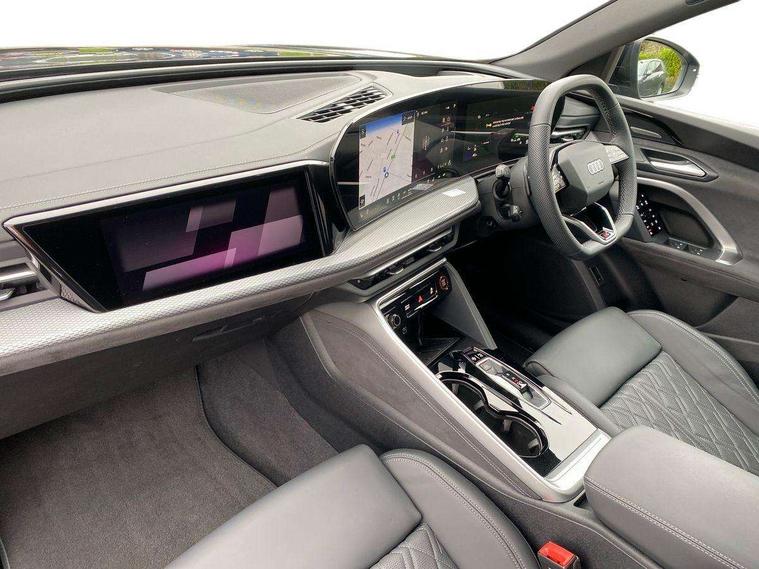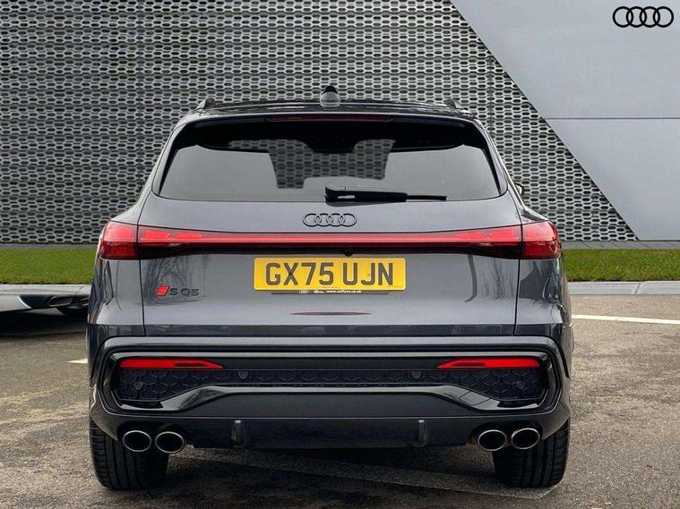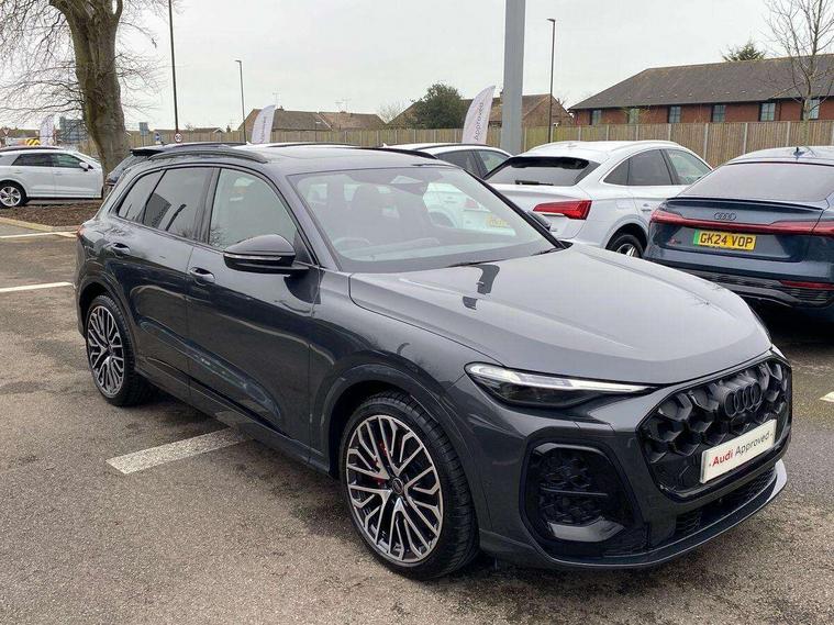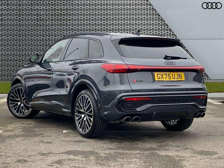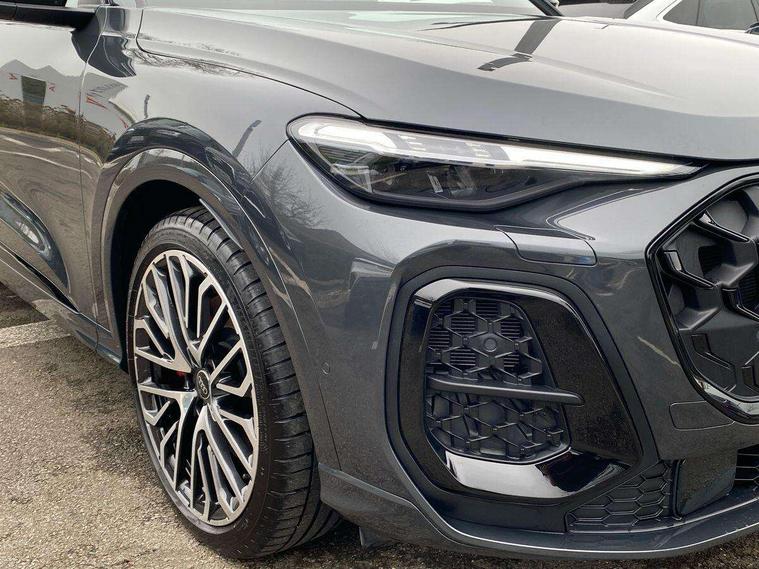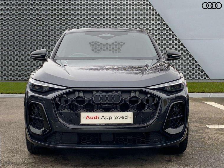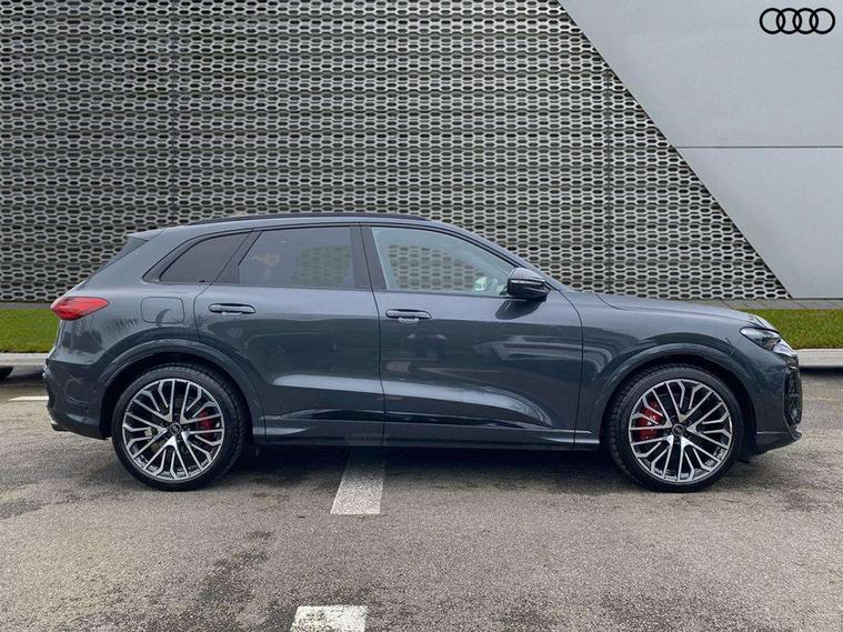 Adaptive cruise assist plus with steering intervention, Advanced driver attention alert, Audi application store, Audi connect emergency call and service, Audi digital key, Audi drive select, Audi smartphone interface, Audi virtual cockpit plus with 11.9" OLED colour display, Camera based traffic sign recognition, Fatigue monitor, Front cross traffic intersection assist, Garage door opener, Lane change assistant with exit warning system, rear cross traffic alert and rear turn assist, Lane departure warning with emergency assist, MMI 10.9" front passenger touch display, MMI navigation plus with high resolution 14.5" OLED touchscreen colour display, Park assist plus, Parking system plus with 360 display, PAS, Reversing camera, Swerve assist and turn assist, Top view camera, Traffic sign based speed limiter, S adaptive air suspension, 2 USB-C ports in both the front and rear, DAB Digital radio, Smartphone compartment with wireless charging, Acoustic glass for front door windows, Active digital light signatures - Six additional combinations of active daytime running light signature, Auto dimming rear view mirror, Coming/leaving home lighting function, Digital OLED tail lights including communication light, Electrically adjustable heated and folding + automatically dimming exterior mirrors, Exhaust tailpipes in dark chrome, Front and rear electric windows, Front door sill trims with aluminium inlays, illuminated with 'S' logo, Full body paint finish, Grill frame, inlay and front air inlets in matt anthracite chrome, Headlight cleaning system, Heated rear window, High beam assist, High gloss window surrounds, Logo projection light in exterior mirrors, Matrix LED headlights, Memory function for door mirrors, Privacy glass, Projection third brake light for rear window in LED, Radiator grille in phantom black, Rear and side windows with heat insulating glass, Rear honeycombe grille in matt black with inlay in matt anthracite chrome, Rear side wing doors, Rear wash/wipe, Red S rhombus badging with 'S' lettering on rear, S exterior styling, Towbar preparation, Windscreen with acoustic glazing, 3 rear head restraints, 3 seat bench in 2nd row, 3 spoke leather steering wheel with multi-function buttons with touch control, flattened on top and bottom, with S badging and contrast stitching, 40:20:40 split folding rear seat bench with centre armrest and cup holders, Comfort centre armrest front, Deluxe 3 zone electronic climate control, Electric steering wheel adjustment, Electrically adjustable front seats with memory function for driver's side, Front and rear floor mats, Front seat ventilation, Front sport seats with integrated head restraints, Headlining in black cloth, Heated front seats, Heated outer rear seats, Heated steering wheel, i-Size child seat mounting on the front passenger side and outer rear seats, i-Size and top tether on the outer rear seats, Increased charging capacity for USB ports 2X100 Watts in rear, 2X60 Watts in front, Interior trim in aluminium look, Luggage compartment lid, electrically opening and closing, Perforated fine nappa leather upholstery with diamond stitching incl ventilation and massage function for front seats, Pneumatically adjustable lumbar support with massage function for front seats, S embossed logo on front sport seats, Single front passenger seat, Softwrap in Dinamica, Stainless steel pedals and footrest, Steering wheel grips in perforated leather and shift paddles, Ambient lighting package plus - Q5, Black styling package plus - Q5, Sound and Vision pack - Q5, Storage and luggage compartment pack - Q5, 3x3 point rear seatbelts, ABS, Acoustic vehicle alerting system, Convenience key with safelock, Driver and front passenger airbag with passenger airbag deactivation, Electric child safety locks, First aid kit with warning triangle and high visibility vests, Front emergency brake assist, Front side airbags with head airbag system and front interaction airbag, Hill hold assist, Occupant detection in rear seat area, Proactive passenger protection system for front, sides and rear, Red brake calipers, Side airbags in front and rear with head airbag system and front interaction airbag, Tyre pressure loss indicator, Anti theft alarm, Anti-theft wheel bolts, Remote control key with SAFELOCK and keyless go, Accent surfaces and control buttons in gloss black, Black dashboard with contrast stitching, Steel grey seat stitching, Upper and lower interior elements in dinamica microfiber, Tyre repair kit,