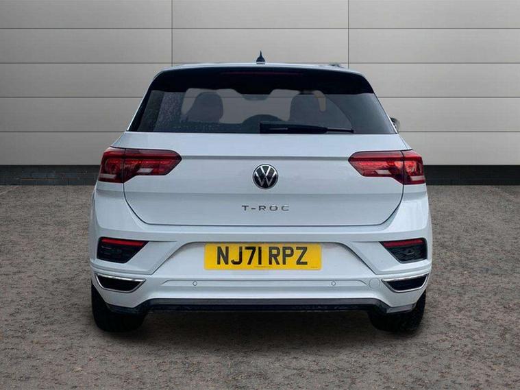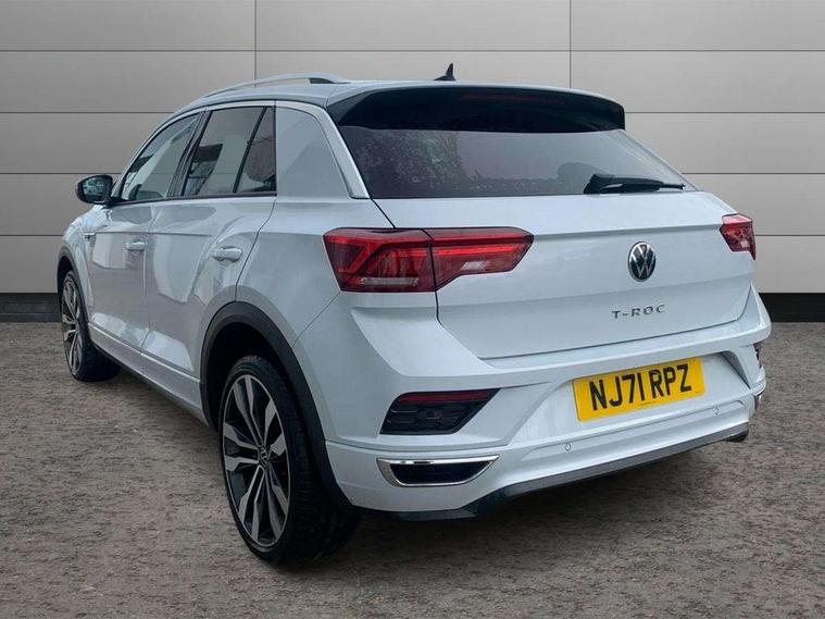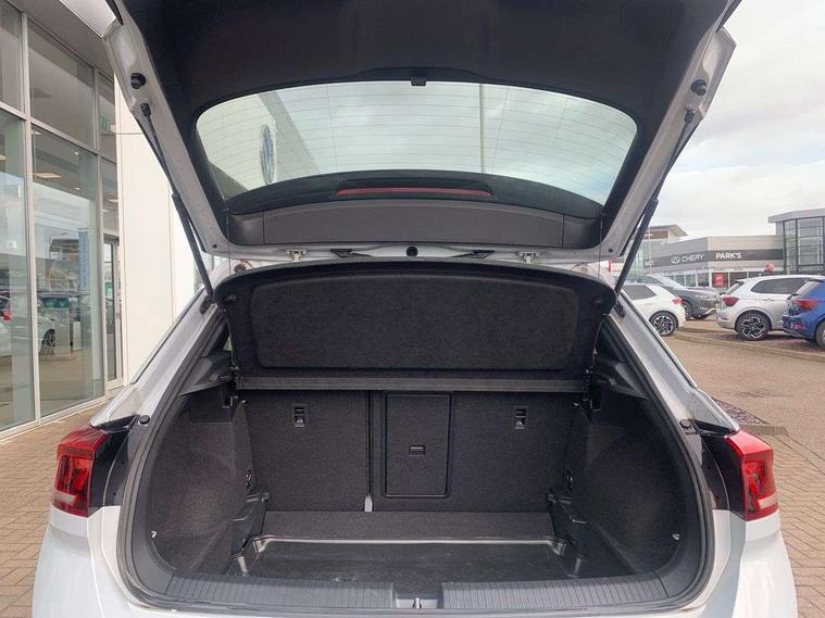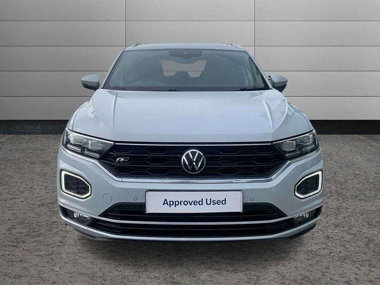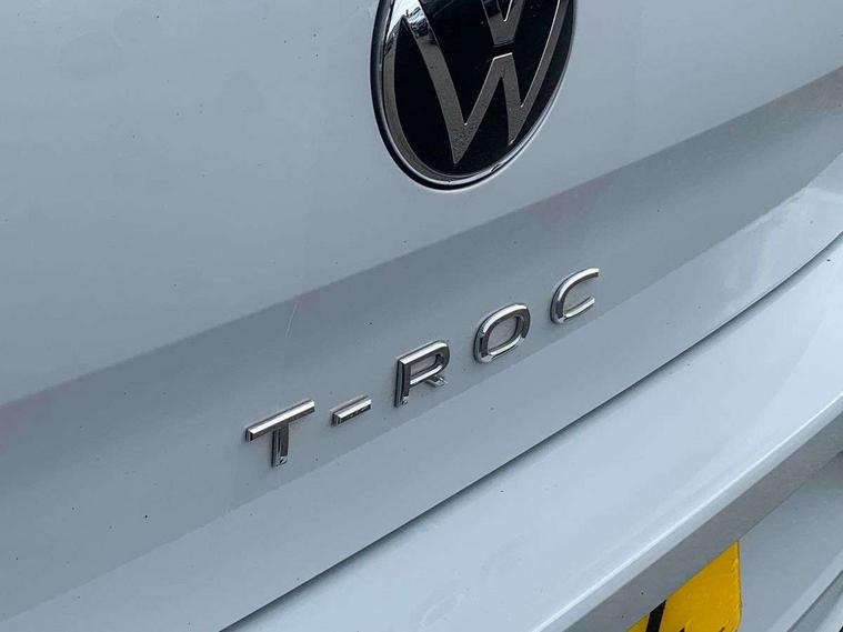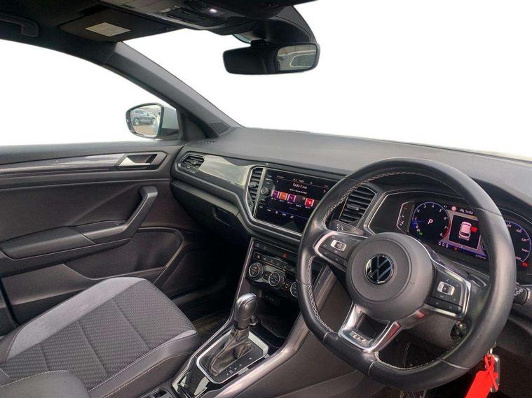'Lights On' Reminder warning buzzer, Adaptive cruise control, Bluetooth telephone and audio connection for compatible devices, Car information display, Digital Cockpit Pro - Active info display, Driver alert system with audible and visual fatigue detection system, Driver tips and journey analysis, Emergency call service, Lane assist with warning text instrument cluster, Modified key software - reduce switch off time for key status change to Long no motion, Multifunction camera, Multifunction computer with visual gear change recommendation for fuel consumption, Navigation system discover media including streaming and internet, Service interval indicator, Think blue trainer driver tips and journey analysis, Traffic sign recognition, Voice activation, Warning sound and light for front seatbelts unfastened, Wireless app connect for apple carPlay, Battery regeneration during braking, Rear shock absorption for sports version, Start/stop function with battery regeneration, DAB Digital radio, Disk brakes in front, Diversity antenna for FM reception, Music playback - MP3, WMA and AAC files, Premium USB cable in choice of either Apple or Android smartphone compatibility, SD card slot, Simultaneous pairing of 2 compatible mobile devices, SMS functionality - read, compose and send SMS messages using touch-screen display, Storage compartment with longitudinal and height adjustable in armrest and two rear air vents, Three route options - Fast, Short, Eco, Title and cover art display, USB-C Interface and USB charging socket, Auto dimming interior rear view mirror, Automatic coming/leaving home lighting function and daytime running lights, Automatic hazard lights activation under emergency braking, Black grained lower door protectors, Body colored door lower parts, Body colour door handles, Body colour rear roof spoiler, Chrome effect left and right trapezoid exhaust tailpipe fascia surround, Chrome plated moldings, Chrome trim on upper and lower radiator grille, Dusk sensor, Dynamic headlight range control with self adjusting whilst driving, Electrically foldable, adjustable and heated door mirrors with puddle lights and reverse activated kerb-view adjustment on passenger's door mirror, External USB type C socket and charging sockets, Front and rear electric windows, Front fog lights with static cornering function, Front windscreen wiper with intermittent wipe and 4 position delay, Fully galvanised body, Heated rear window, Heated windscreen washer jets, High level 3rd brake light, LED darkened rear light clusters, LED headlamps with automatic range adjustment and unique signature LED separate daytime running lights, LED rear number plate lights, LED tail lamp rear comination lamps, Privacy glass, R-Line design body coloured bumpers, Rain sensor, Rear tinted glass from B-pillar backwards approx 65% tinted, Rear wash/wipe with intermittent wipe setting, Silver anodised roof rails, Volkswagen roundel, 12V socket in centre console storage area, 3 rear head restraints, 4 load lashing points in luggage compartment, Aluminium pedals, Black roof lining and sun visors, Branded points of interest, Carbon flag cloth upholstery, Chrome plated radiator grille inserts, air vent surrounds and light switch surrounds, Climate control - 2 zone electronic air conditioning with automatic air recirculation and allergy filter, Door and side trim panel, Door and side trim panel in foam film, insert in leatherette, Drawer under drivers seat, Front + rear carpet mats, Front centre armrest, Front cupholders x 2, Front seat back storage pockets, Front sports seats with R-Line logo on seat backrest, Glovebox, Heated front seats, Height adjustable front seats, Height/reach adjust steering wheel, Instrument lighting, white adjustable panel illumination, Interior light delay, Interior light in footwell, Isofix easy fit child seat preparation for 2 outer rear seats, Leather gearshift knob, Leather multi function sport steering wheel with gear change selection via paddle shift on steering wheel, LED interior light with switch off delay/dimmer and 2 front/rear LED reading lights, Load through provision with single cup holder when folded down, Luggage compartment cover, removable, Luggage compartment lighting, R Line badge, Scuff plates in door apertures, Split folding rear seat backrests with centre armrest, Stainless steel pedals, Storage compartment in left and right luggage area, Storage compartment in rear doors, Storage compartments in driver and front passenger doors, Sunvisors with illuminated vanity mirrors, Unique R Line door sill protectors, White ambient lighting, R line styling pack - T-Roc, Winter pack - T-Roc, 3 rear three point seatbelts, ABS, Curtain airbags, Driver and front passenger safety-optimised head restraints, Drivers and front passengers airbags with passengers deactivation switch, Drivers seatbelt reminder, Electronic parking brake with auto hold, Electronic stability control (ESC) includes ASR, EDL, EDTC and trailer stabilisation function, Front assist with city emergency braking and pedestrian monitoring, Front seat side impact airbags, Hill start assist, Predictive pedestrian protection, Rigid safety cell with front and rear crumple zones, Single tone horn, Three point height adjust front seatbelts + pretensioners, Tyre pressure loss indicator, Ventilated front and rear disc brakes, Volkswagen roadside assistance, Alarm with remote central locking and interior protection, Electronic engine immobiliser, Remote central locking with SAFELOCK, radio remote control with 2 remote control folding keys, Shadow grey decorative inserts in dash, centre console and door panel, 19" Suzuka alloy wheels with low rolling resistance tyres and anti wheel bolts,