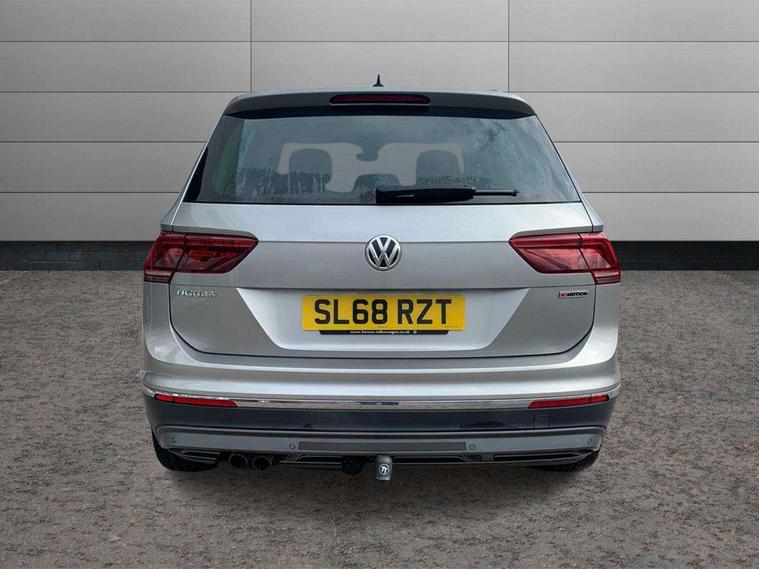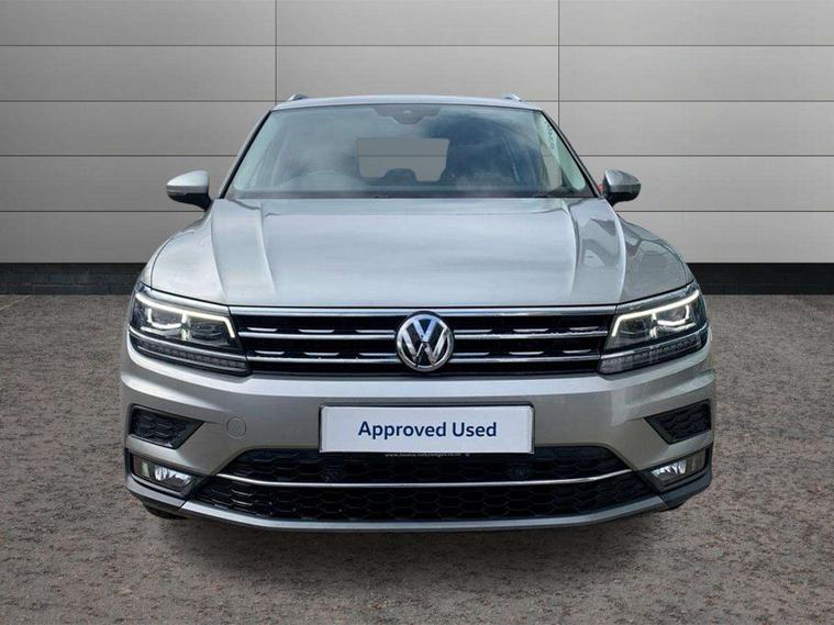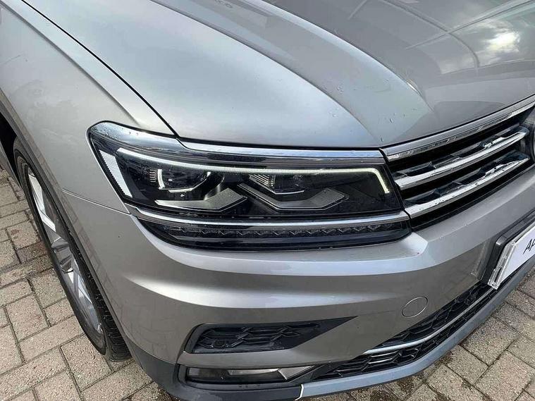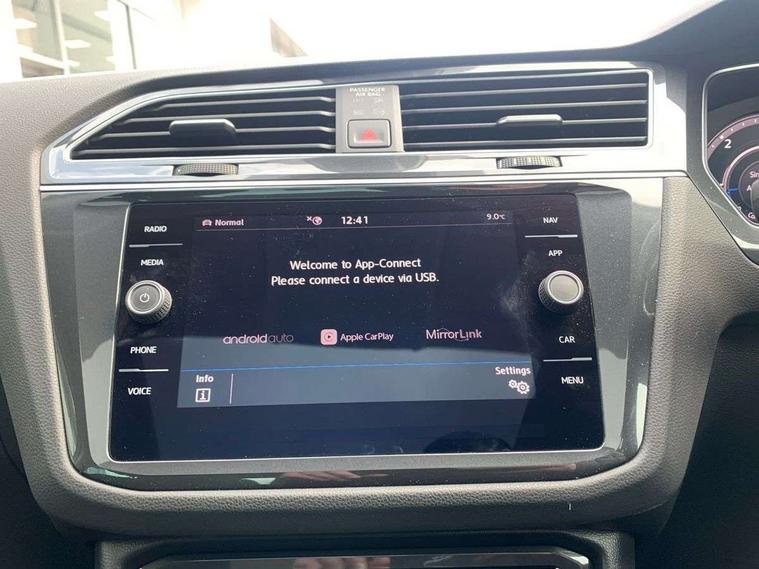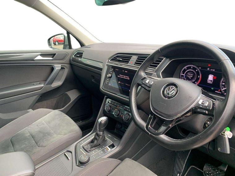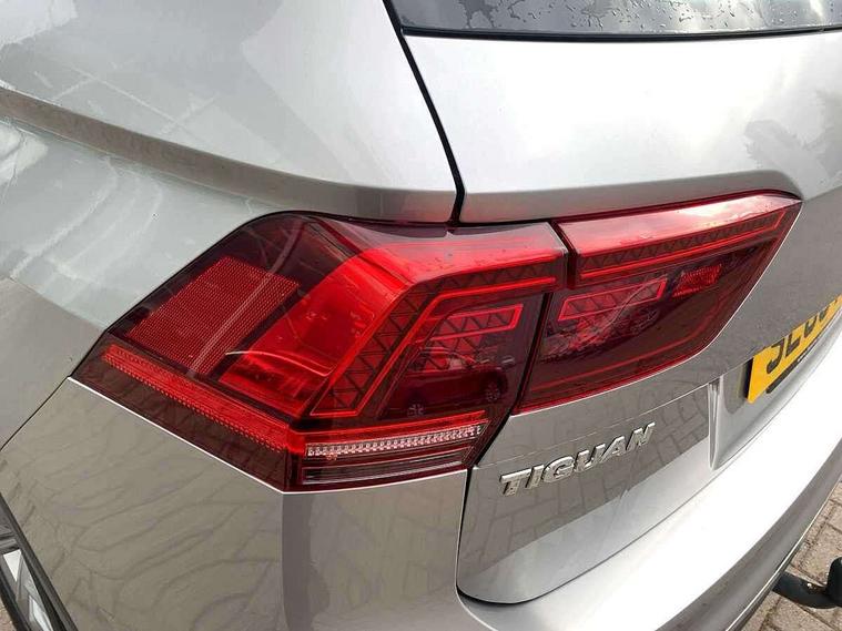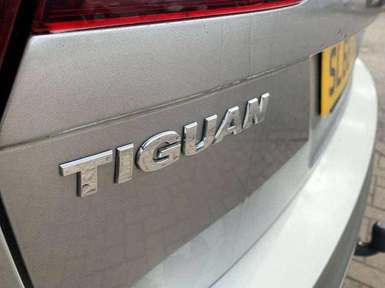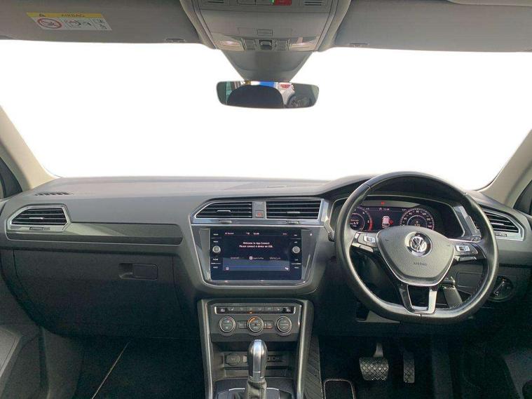 Active information display, Adaptive cruise control, App-Connect, Bluetooth phone integration system, Distance control assist, Drive mode selector, Fatigue detection system, Instrument cluster, Lane assist, Low washer fluid warning light, Outside temperature display, Service interval indicator, Speed limiter, Warning lights, Diesel particulate filter, XDS electronic differential lock, 2x USB sockets in front, Aux-in socket, DAB Digital radio, MP3 compatible single CD player, SD card slot, Auto dimming interior mirror, Automatic activation of hazard warning lights, Black door protector with chrome inserts, Body colour door handles, Body colour door mirrors, Body coloured bumpers, Chrome side body trim, Chrome side window surrounds, Chrome trimmed radiator grille, Coming/leaving home lighting function, Dusk sensor + auto driving lights, Electric folding door mirrors, Electric heated + adjustable door mirrors, Electric panoramic sunroof with sunblind, Front and rear electric windows, Heated rear window, LED headlights with dynamic light assist daytime running lights and cornering front fog lights, LED rear lights, Rain sensor windscreen wipers, Rear windscreen washer and wiper with interval delay, Silver rear diffuser trim, Silver roof rails, Silver under body guard, Tinted windows (B pillar backwards), Windscreen wipers/ intermittent wipe + 4 position delay, 12V Accessory socket in centre console, 3 rear headrests, 3 zone climate control, 4 load lashing points, 40:20:40 split folding rear seats, Bag hook in luggage compartment, Driver + front passenger lumbar support, Foldable passenger seatback, Front + rear carpet mats, Front centre armrest with 12v socket, Front centre armrest with storage + rear 2 air vents + cupholders, Front seatback folding tables, Height/reach adjust steering wheel, Illuminated driver/passenger vanity mirrors, Illuminated scuff plates, Interior light with delay, Isofix Preparation 2 Rear child seats, Leather gear knob, Load through provision with 2 cupholders when folded, Lockable cooled glovebox, Luggage compartment lighting, Luggage compartment side storage, Map pockets on front seats, Passenger seat height adjuster, Passenger underseat drawer, Rear cupholders, Removable luggage cover, Sliding/reclining rear seats, Storage compartment in driver's door, Storage compartment in passenger's door, Storage compartment in rear doors, Storage tray on dashboard, Sunglasses storage, Variable boot floor, Ambient lighting pack - Tiguan, 3 rear 3 point seatbelts, ABS+EBD+Brake assist, Active bonnet, Active pedestrian safety system, Curtain airbags, Driver/Front Passenger airbags, Driver/Passenger whiplash optimised head restraints, Drivers knee airbag, DTC - Drag torque control, Electronic parking brake with auto hold, ESP with EDL + ASR, First aid kit, Front assist including city emergency braking, Front side airbags, Head airbag system, Height adjustable front 3 point seatbelts + pretensioners, Hill hold control, Passenger airbag deactivate switch, Passenger knee airbag, Pre crash system, Rear side airbags, Seatbelt warning lamp and buzzer, Two tone horn, Warning triangle, Alarm with interior protection, Electronic engine immobiliser, Remote central locking with 2 remote folding keys, Chrome door trim inserts, Piano black interior trim, Steel space saver spare wheel,
