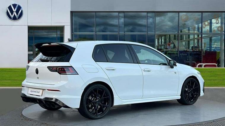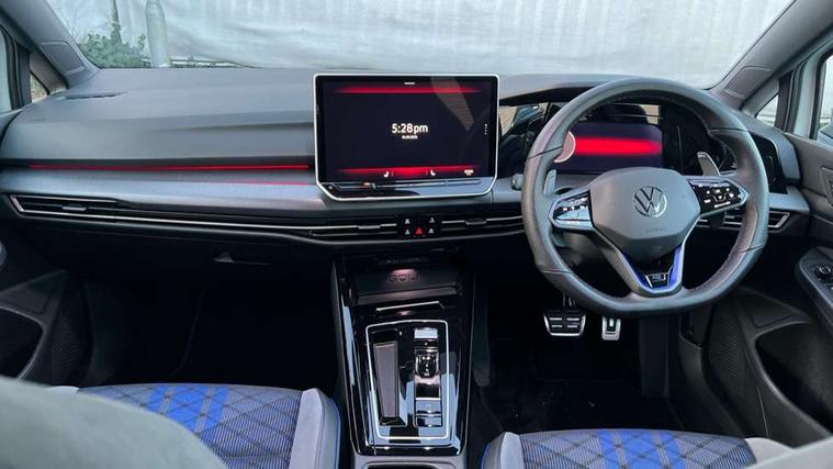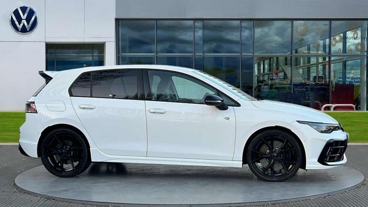 Activated carbon canister, Adaptive cruise control (ACC), Advanced driver attention and drowsiness monitor, Dynamic road sign display, E-Sim card for online connectivity, eCall emergency call system, Electronic maximum speed limit increased to 270 km/h, includes driving Modes 'drift' and 'special', larger roof spolier and GPS laptimer + G-Meter, Multi-color Digital cockpit pro, selection of different info profile possible, Multifunction front facing camera for distance control, Navigation system, Oncoming vehicle braking when turning including swerve support, Side assist blind spot lane change system, rear traffic alert and exit warning system, Speed limiter, Speedo, rev counter, electronic odometer, trip, service interval display, exterior temperature and fuel gauge, Traffic jam assist, Voice enhancer and voice control, Warning signal and warning light for front and rear seatbelts not fastened, We connect plus preparation, We connect preparation, Wireless app connect, All wheel drive - 4Motion, Petrol Particulate Filter, Start-stop system with battery regeneration (recuperation - energy recovery during braking), XDS electronic differential lock for improved traction and handling, 2 USB C ports in front, 2 USB charging sockets on the centre console in the rear charging capacity upto 45W, Digital radio reception (DAB), Diversity antenna for FM reception, Gaming platform via car app, Infotainment system with 12.9" display, Mobile phone interface with inductive charging feature, 3rd brake light, Auto dimming rear view mirror, Automatic headlamp activation with Coming home and Leaving home feature, Black badge on B-pillar, Black mirror caps, Black strips on radiator grille and headlights, Body colour door handles, Darkened headlights, Darkened R Logos and VW logos in front, rear and on fender, Exterior mirrors convex on the left and aspherical on the right, Front and rear electric windows, Front fog lamps and cornering light, Heat insulating windshield made of laminated glass, Illuminated lighting animation with wake up/goodbye scenario, LED matrix headlights with ambient light V2, advanced high beam, dynamic range contol with cornering, LED rear lamp with indicator, poor weather, LED separate daytime running light, R name plate, Rain sensor, Rear fog light on one side and reversing lights on both sides, Rear side wing doors, Rear tinted glass 65% light absorbing from B pillar backwards, Rear windscreen washer and wiper with interval delay, Remote electrically foldable door mirrors, puddle lights and reverse activated passenger's door mirror, Welcome light with surround lighting, 12V socket in front centre console, 12V socket in luggage compartment, 3 rear head restraints, 3 seat bench in 2nd row, 30 colour ambient lighting, illuminated center console storage compartment in front, Air care climatronic 3 Zone automatic climate control with rear air conditioning control panel, Aluminium gearshift handle, Brushed stainless steel pedals, Chrome plated radiator grille inserts, air vent surrounds and light switch surrounds, Entry lights, Front + rear black carpet mats, Front centre armrest, Integrated front head restraints, ISOFIX anchors for child seats on outer rear bench seats and on front passanger seat compatible for i-Size, Luggage compartment lighting, Rear cupholder and loadthough, Single front passenger seat, Soul black instrument panel, Soul black roof lining, Split folding backrest with centre armrest and unsplit rear seat bench, Sun visors with illuminated vanity mirrors, Driver assistance pack - Golf Estate/Hatchback Auto, R styling pack - Golf, Technology park and comfort pro package - Golf Hatchback, 3 point height adj front seatbelts + pretensioners, 3 rear three point seatbelts, ABS, Autonomous emergency braking front assist with pedestrian and cyclist monitoring, Child locks on rear doors, Driver and front passenger airbag with front passenger airbag deactivation, Electronic parking brake with auto hold, ESC (Electronic Stability Control), Extended pedestrian protection measures, Front and rear black brake calipers with darkened R-logo, Hill start assist, Rear disc brakes, Two tone horn, Tyre pressure loss indicator, Volkswagen roadside assistance, Anti theft wheel bolts, Preparation for alcohol interlock, 19" Estoril alloy wheels in black with progressive steering, Sporty vehicle dynamics, Tool kit for tyre mobility set, Tyre mobility kit Includes 12V compressor and tyre sealant, Wheel hub cover with darkened R-logo,