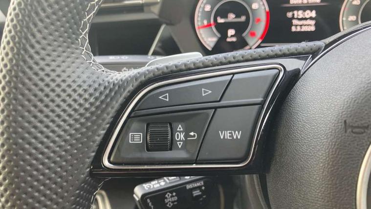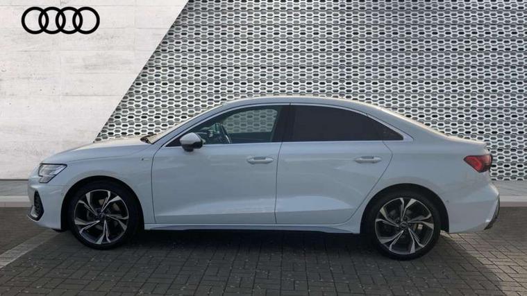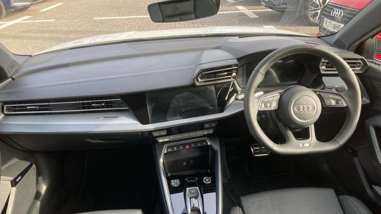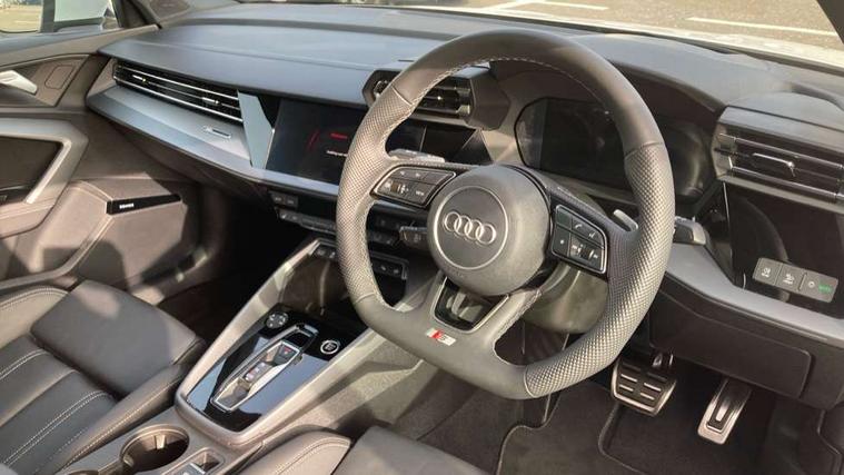 Adjustable speed limiter, Audi drive select, Audi smartphone interface with app store includes wireless Apple carplay, Android auto and Amazon alexa integration, Audi virtual cockpit plus - 12.3" full HD resolution dynamic digital instrument cluster, Automatic start/stop system with recuperation, Bluetooth interface, Camera based traffic sign recognition, Collision avoidance assistant, Cruise control, Distraction and Fatigue warning, e-Call (emergency call), Electromechanical power speed sensitive steering, Emergency assist, Lane departure warning system, MMI Navigation Plus with high resolution 10.1" colour touch screen display, Park Assist with parking system Plus, Service indicator, Trip computer, Voice control system with natural language interaction, Sports suspension, Audi Phonebox light with wireless charging, Audi sound system - 10 loudspeakers including centre loudspeaker and subwoofer, DAB Digital radio, USB ports with charging function in the rear, Acoustic glass windscreen, All weather light, Aluminium window trim, Auto dimming frameless rear view mirror, Automatic dynamic range control, Body colour exterior mirrors, Chrome exhaust tailpipes, Dipped beam, main beam, position light and turning light, Electrically adjustable/heated/folding/auto dimming door mirrors with integrated LED indications + kerb view function for passenger side, Exterior model badging, Front and rear side air inlets in grained matt black with dark liquid chrome frame, Front electric windows, Front radiator grill in high gloss dark chrome, Heat insulating glass windscreen, Illuminated door sills with aluminium inserts at the front with S logo, Intersection light, LED 3rd brake light, LED brake lights, LED daytime running x3, LED headlights with LED rear lights and dynamic rear indicators, LED rear number plate lights, LED reverse light, LED tail lights, Light and rain sensors, Manoeuvring light, Motorway light, Privacy glass - dark tinted rear window, rear door and side windows, Rear boot, Rear diffuser and grill in grained matt black with inlay in dark liquid chrome, Rear electric windows, Rear side wing doors, S line bumpers, Side S line emblems on front wings, Side sill trim in dark liquid chrome, Static cornering light, 12V socket and storage compartment in front centre console, 3 seat bench in 2nd row, 3 spoke flat bottomed leather multifunction sport steering wheel with gear shift paddles, 3-zone deluxe automatic air conditioning, 4 way electrically adjustable lumbar support for driver and front passenger, 40/20/40 split folding rear seat bench, Black cloth headlining, Black front and rear floor mats, Front and rear centre armrest in artificial leather with contrasting stitching on armrests and instrument panel, Front and rear headrests, Heated front seats, Height and reach adjustable steering wheel, Manual boot compartment lid, Manually adjustable front seats, Rear centre armrest with cupholder, S badging on the steering wheel, Seat side bolsters, Single front passenger seat, Stainless steel pedals and front footrest in black, Twin leather upholstery with front sports seats S embossed logo, Aluminium interior elements pack - A3, Multi-coloured LED interior lighting package with Multi-coloured contour lighting of instrument panel - A3, 3x3 point rear seat belts, Driver and front passenger airbag with passenger airbag deactivation, Electronic Stabilisation Control (ESC) including ABS, ASR and EDL, First aid kit with warning triangle and 2 safety vests, Front side airbags with head airbags and interaction airbag, Hill hold assist, Pre-sense front with pedestrian and cyclist detection, Seatbelt monitoring, Tyre pressure loss indicator, Anti theft alarm, Anti-theft wheel bolts, Electronically operated child locks, Immobiliser, Remote central locking with safelock, Black dashboard, Inlay in dark aluminium spectrum,