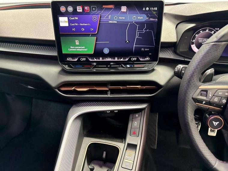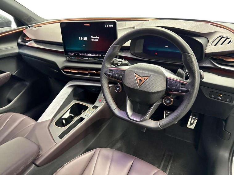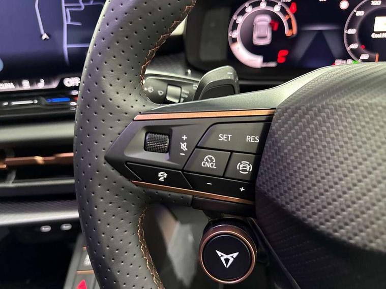 10.25" digital cockpit and configurable dashboard, Adaptive cruise control with follow-to-stop and speed limiter, Advanced driver alert system, Advanced lane assist with semi-automatic vehicle control in a medical emergency and traffic jam assist, Driving profile selection (DCC- Comfort, performance, CUPRA, Individual, Dynamic road sign display, E-call, Electric tailgate with virtual pedal, Emergency steering support with turn assist, Front and rear parking sensors, Front assist (Forward collision warning with automatic braking) with multifunction camera and front cross traffic assist, Head up Display, Intelligent park assist, Media system with Nav - 12.9" touch display, voice control, full link phone (wired/wireless), DAB and Steering wheel mounted controls, Rear traffic assist, Side and exit assist, Speed sensitive power steering, Start/stop system with regenerative braking, Top view camera (front camera, rear camera, 2 side cameras), Wireless phone charger, Adaptive chassis control with a 2-valve shock absorber, Auto dimming rear view mirror, Black roof rails, CUPRA 3D rear lights with ceremony & swiping indicator and illuminated logo, Dark tinted rear windows, Daytime running lights with automatic headlight control and Coming and Leaving home function, Door mirrors with memory function and lowing function on passenger mirror, Electric front/rear windows, Electrically adjustable, heated and folding door mirrors, Front fog lamps with cornering function, Heat reflecting windscreen, High beam assist, Rain sensing wipers, Rear fog light on one side, back up light on both sides, Rear side wing doors, Rear wash/wipe, Third brake light, Welcome lights (within exterior mirror housing), 3 seat bench in 2nd row, Black roof lining, Cupra sports pedals, Driver seat memory function, Electrically adjustable front seats including lumbar support, Four x USB Type C ports (2 in front and 2 in rear), Front and rear head restraints, Front and rear reading lights X 4, Front centre armrest, Heated front seats, Heated leather wrapped multi function sports steering wheel with tiptronic, Illuminated interior front door sills, Isofix, Leather upholstery, Operating voltage 12V, Single front passenger seat, Smart wraparound interior lighting, Sunvisors with illuminated mirror, Three zone climate control with control panel in rear, Unsplit rear seat bench, split folding backrest, with centre armrest, Variable luggage/load compartment floor, Pure performance pack - Terramar, 3 point seatbelts in front with pretensioner and electric height adjustment, 3 point seatbelts on all rear seats, Brake control system - ESC and brake booster, Child proof door locks, Driver and front passenger airbags, Electronic parking brake, Front and rear disc brakes, Front interaction airbag, Front passenger airbag deactivation switch, Front side airbags with curtain airbags, Pre-crash front and rear seat belt tensioner, window closure and hazard lights, Tyre pressure monitoring system, Visual and acoustic seat belt reminder, electric contact in front and rear, Anti theft alarm, Keyless locking and starting system with keyless access, Locking wheel bolts, Black decorative trims, Chrome interior detailing, Performance tyres in polmer coating, Tool kit,