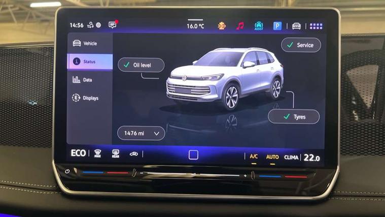 Adaptive cruise control (ACC), Advanced driver attention and drowsiness monitor, Bluetooth mobile phone interface, Car2X technology, Digital Cockpit Pro - 10.25" high resolution dash display screen with customisable menus and information, Dynamic road sign display, E-Sim card for online connectivity, eCall emergency call service, Front Assist - Autonomous emergency braking with pedestrian and cyclist monitoring, Lane change system, Side assist, Rear traffic alert and Exit warning system, Lane keeping system Lane Assist, Oncoming vehicle braking when turning including swerve support, Park assistance plus with front and rear parking sensors, Power assisted steering with speed sensitive, Start/stop system with regenerative braking, Warning signal and warning light for front and rear seatbelts not fastened, Wireless App-Connect, Adaptive chassis control DCC pro includes driving mode selection, Charging cable Mode 3 Type 2 / 3 (16A), Front shock absorption, Front wheel drive, Rear shock absorption, Digital radio reception (DAB), Diversity antenna for FM reception, Auto dimming interior rear view mirror, Automatic headlight control system, Body coloured bumpers and air intake with chrome trim, Body coloured door handles, Body-coloured exterior mirror housings, Coming/leaving home lighting function, Heat insulating glass in side and rear windows, Heat insulating windshield, Heated rear window, High level 3rd brake light, Illuminated door handle recesses, Illuminated lightline between headlamps, Puddle lights and reverse activated passengers door mirror, Rain sensor windscreen wipers, Rear fog light on one side, reversing light on both sides, Rear side wing doors, Rear wiper, 12V outlet in center console rear and in luggage compartment, 12V socket in centre console, 3 bench rear seats in 2nd row, Air care climatronic 3 zone air conditioning system with rear air conditioning control panel, Carpet mats, front and rear, Ceramique headlining, Door and side trim panel in foam film and woven fabric, Front centre armrest, ISOFIX anchors for child seats on outer rear seats and front passenger seat compatible with i-Size, Mechanical rear seat release, Power adjustable lumbar support in front, Rear bench seat, split folding, longitudinally movable and folding with load-through hatch and centre armrest, Safety optimised front head restraints, Single front passenger seat, Sun visors with illuminated vanity mirrors, Three rear head restraints, Variable luggage compartment floor, Comfort package with park assist plus and Safelock - Tiguan, Design package - Tiguan Life/Match, 3 point seat belt for centre rear seats, 3 Point seat belts in front with pretensioners, 3 point seatbelts in outer rear with ECE label, Driver and front passenger airbag with front passenger airbag deactivation, Electronic parking brake with auto hold, Front and rear curtain airbags, Front and rear side airbags, Front centre airbag, Front disc brakes, Hill start assist, Manual child proof rear door locks, Rear disc brakes, Two tone horn, Warning triangle, Soul instrument panel, Tyre mobility kit including compressor and sealing foam,
