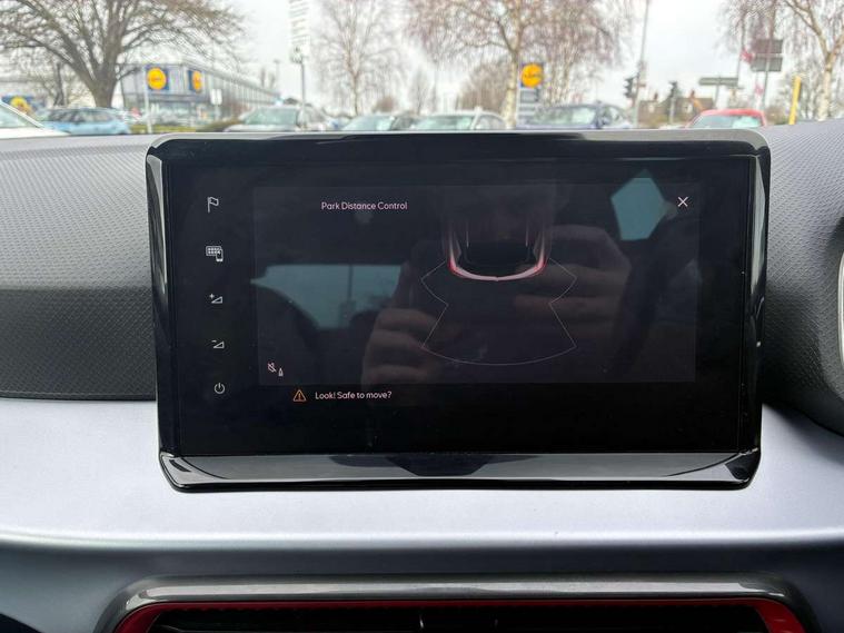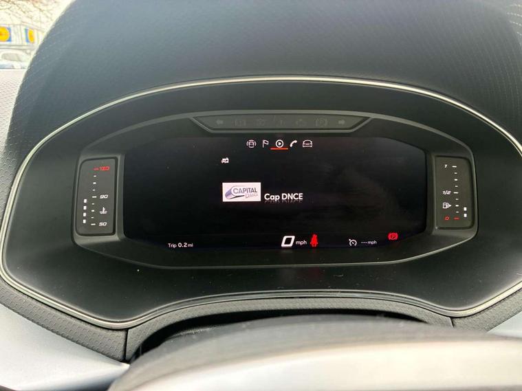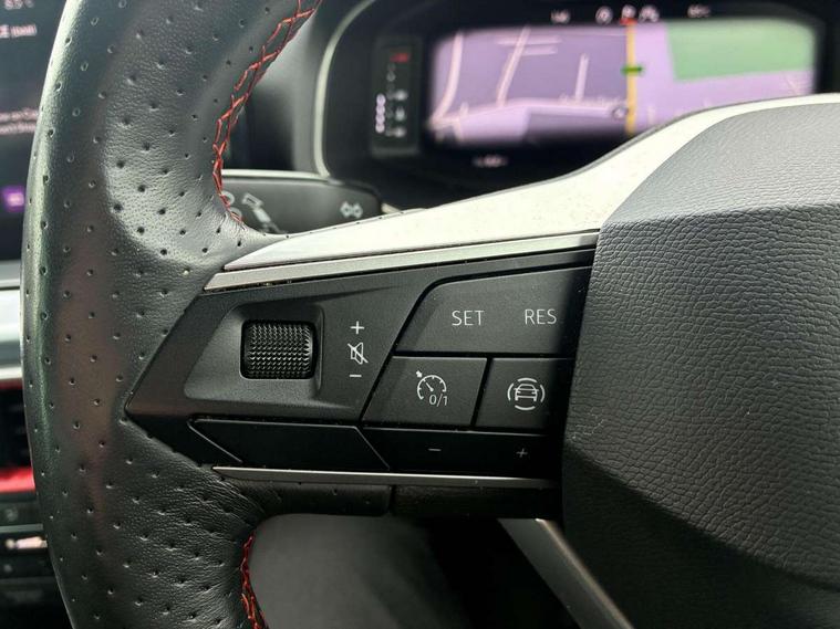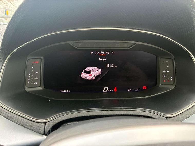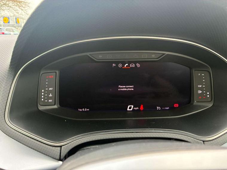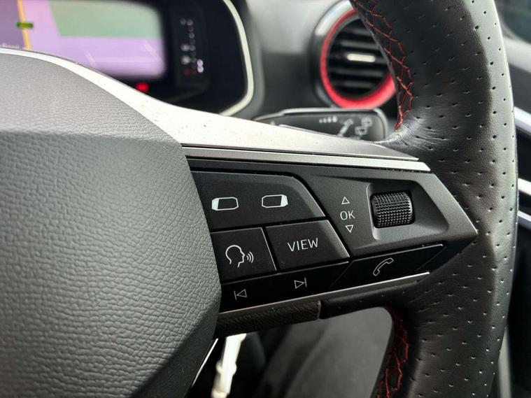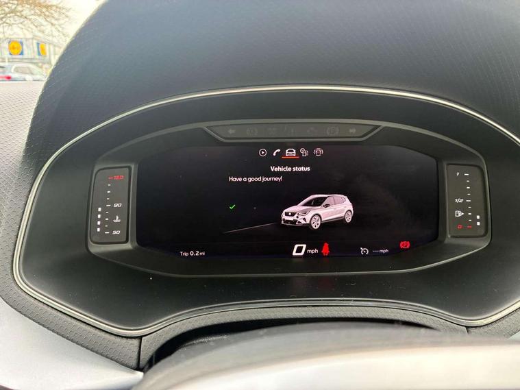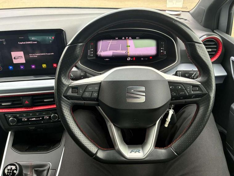 'Lights On' Reminder warning buzzer, 10" Digital cockpit, Digital clock, E-call, Electric speed sensitive power steering, Full Link Smartphone Integration with Mirror Link, Apple Car Play, Google Android Auto with USB Type C cable for Apple and Android compatibility, Low fuel warning light, Outside temperature display, Rear parking sensor, RPM counter, Seat connect with safety, service, remote and online, SEAT Drive profile - Four different models normal-sport-eco-individual, steering response, throttle response, Trip computer, Wireless phone charger, 9.2" colour touchscreen with navigation system, voice control and USB port (type c), Bluetooth interface for hands free and audio streaming, DAB digital radio and AM/FM radio, Steering wheel mounted audio controls, Anti theft roof antenna, Auto dimming interior rear view mirror, Automatic activation of hazard warning lights, Body coloured bumpers, Body coloured door handle inserts, Chrome roof rails and window surrounds, Dark tinted rear windows, Electric front/rear windows, Electrically adjustable, heated and folding door mirrors, Front fog lights with cornering function and rear fog light, FULL LED automatic headlights with dynamic headlight range control, coming and leaving home, LED daytime running lights, LED rear tail lights and licence plate lights, Protective side mouldings, Rain sensing wipers, Rear side wing doors, Rear spoiler, Rear window wash/wipe, Roof colour door mirrors, Third brake light, Twin exhaust pipe styling hidden exhaust pipe, Visible VIN plate, Windshield wiper with intermittent control and potentiometer, 2 cupholders, 3 seat bench in 2nd row, 60/40 split folding rear seat, Aircare filter, Black interior roof, Double boot floor, Driver sunvisor with covered mirror + card holder, Dual zone climate control, Front comfort seats, Front courtesy light with front and rear reading lights, Front seat back storage pockets, Gear shift indicator, Heated front seats, Height adjustable front seats, Height/reach adjustable steering column, Illuminated boot, Instrument lighting with brightness control, Interior ambient lighting, Interior light in footwell, central console and door panel, ISOFIX points in outer rear seats with top tether anchorage points, Microsuede cloth upholstery, Passenger sunvisor with vanity mirror, Perforated flat bottomed leather steering wheel/gear knob/handbrake with red stitching and FR logo, Single front passenger seat, Two front and three rear height adjustable headrests, Interior chrome pack - Arona, 3 point seatbelts on all rear seats, ABS, Active front headrests, Child locks on rear doors, Driver and front passenger airbags with front passenger airbag de activation, front side and curtain airbags, Electronic stability control, Emergency Brake Assist (EBA) and front assist, Front and rear seatbelt reminder, Hill hold control, Multi-Collision braking, Tiredness recognition system, Traction control, Tyre pressure monitoring system, Alarm with back-up horn, Electronic engine immobiliser, Locking wheel bolts, Remote central locking + deadlocks, Tow away protection, Titan black dashboard, 18" Performance Cosmo grey matt alloy wheels,