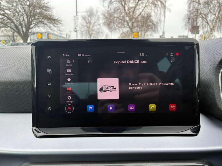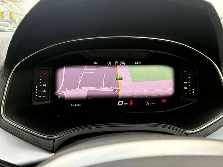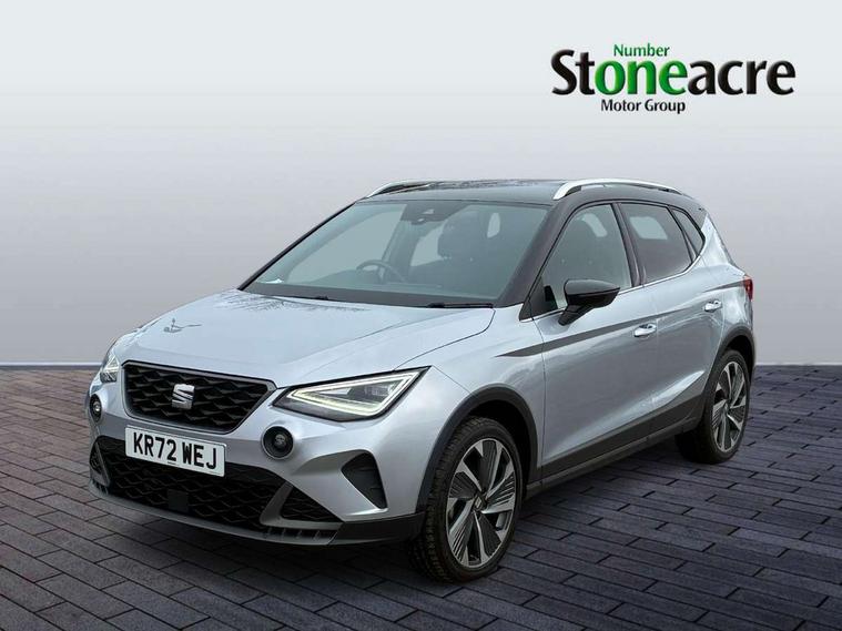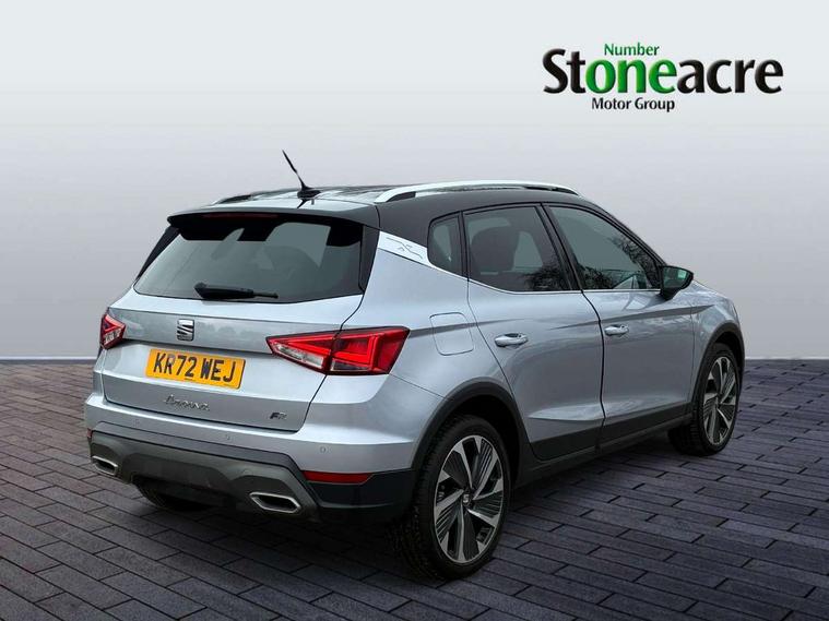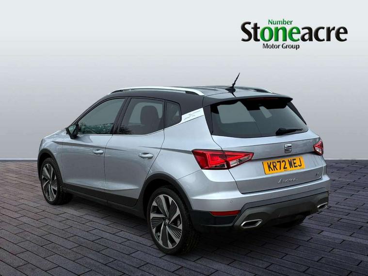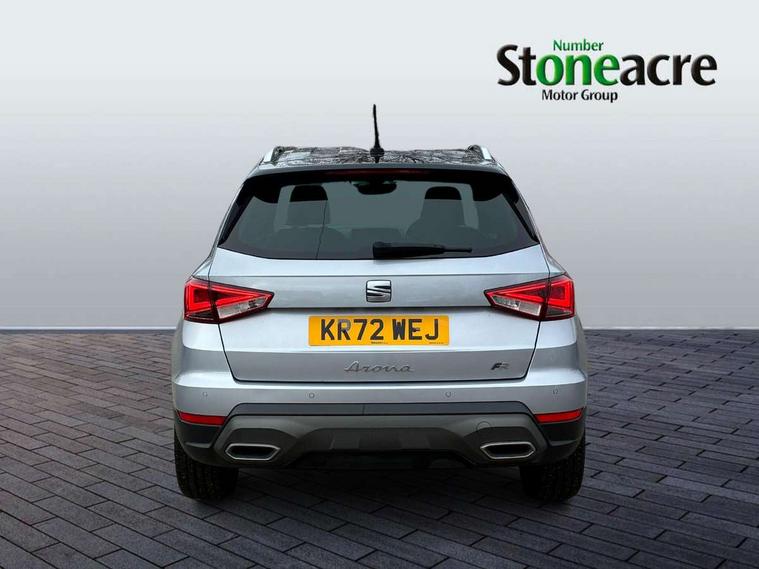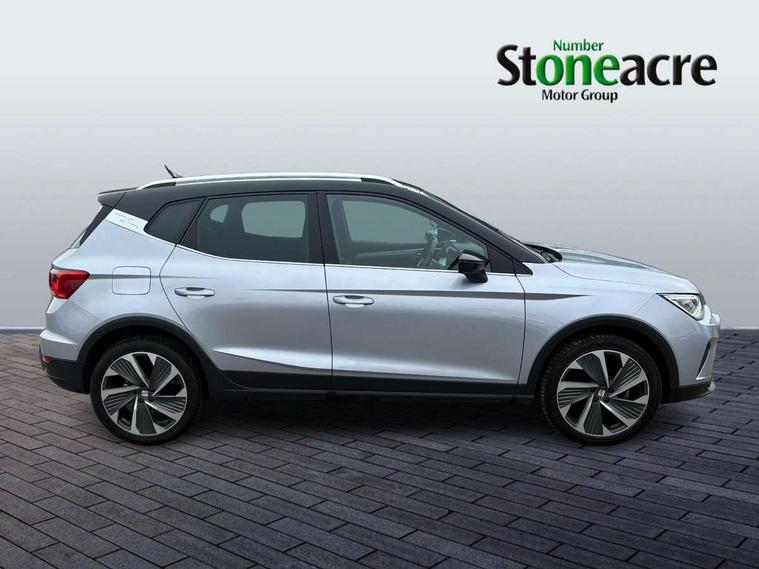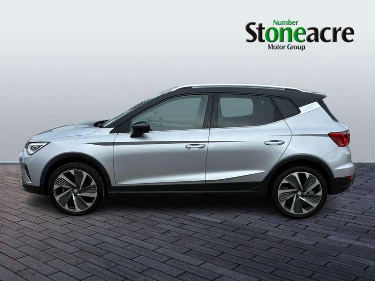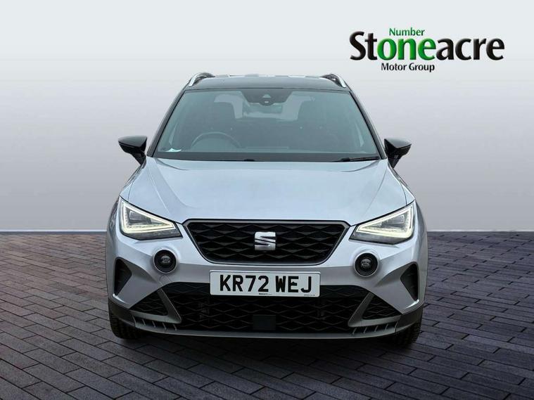 'Lights On' Reminder warning buzzer, 10" Digital cockpit, Digital clock, E-call, Electric speed sensitive power steering, Full Link Smartphone Integration with Mirror Link, Apple Car Play, Google Android Auto with USB Type C cable for Apple and Android compatibility, Low fuel warning light, Outside temperature display, Rear parking sensor, RPM counter, Seat connect with safety, service, remote and online, SEAT Drive profile - Four different models normal-sport-eco-individual, steering response, throttle response, Trip computer, Wireless phone charger, 9.2" colour touchscreen with navigation system, voice control and USB port (type c), Bluetooth interface for hands free and audio streaming, DAB digital radio and AM/FM radio, Steering wheel mounted audio controls, Anti theft roof antenna, Auto dimming interior rear view mirror, Automatic activation of hazard warning lights, Body coloured bumpers, Body coloured door handle inserts, Chrome roof rails and window surrounds, Dark tinted rear windows, Electric front/rear windows, Electrically adjustable, heated and folding door mirrors, Front fog lights with cornering function and rear fog light, FULL LED automatic headlights with dynamic headlight range control, coming and leaving home, LED daytime running lights, LED rear tail lights and licence plate lights, Protective side mouldings, Rain sensing wipers, Rear side wing doors, Rear spoiler, Rear window wash/wipe, Roof colour door mirrors, Third brake light, Twin exhaust pipe styling hidden exhaust pipe, Visible VIN plate, Windshield wiper with intermittent control and potentiometer, 2 cupholders, 3 seat bench in 2nd row, 60/40 split folding rear seat, Aircare filter, Black interior roof, Double boot floor, Driver sunvisor with covered mirror + card holder, Dual zone climate control, Front comfort seats, Front courtesy light with front and rear reading lights, Front seat back storage pockets, Gear shift indicator, Heated front seats, Height adjustable front seats, Height/reach adjustable steering column, Illuminated boot, Instrument lighting with brightness control, Interior ambient lighting, Interior light in footwell, central console and door panel, ISOFIX points in outer rear seats with top tether anchorage points, Microsuede cloth upholstery, Passenger sunvisor with vanity mirror, Perforated flat bottomed leather steering wheel/gear knob/handbrake with red stitching and FR logo, Single front passenger seat, Two front and three rear height adjustable headrests, Interior chrome pack - Arona, 3 point seatbelts on all rear seats, ABS, Active front headrests, Child locks on rear doors, Driver and front passenger airbags with front passenger airbag de activation, front side and curtain airbags, Electronic stability control, Emergency Brake Assist (EBA) and front assist, Front and rear seatbelt reminder, Hill hold control, Multi-Collision braking, Tiredness recognition system, Traction control, Tyre pressure monitoring system, Alarm with back-up horn, Electronic engine immobiliser, Locking wheel bolts, Remote central locking + deadlocks, Tow away protection, Titan black dashboard, 18" Performance Cosmo grey matt alloy wheels,