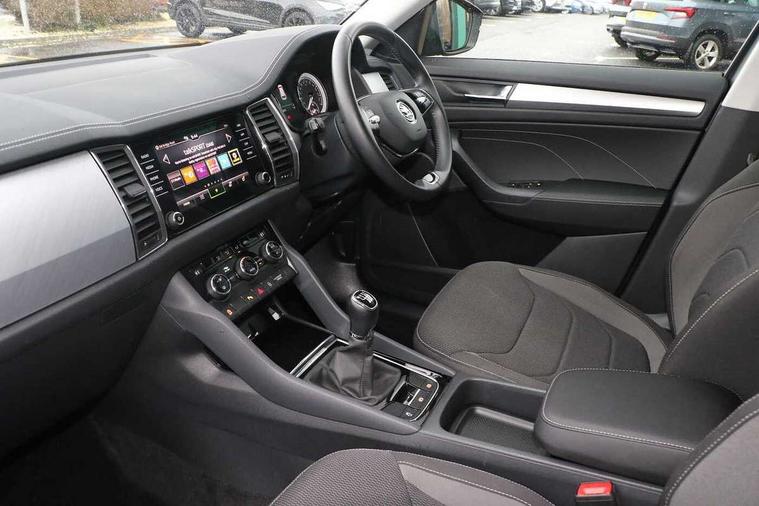 Amundsen satellite navigation with 8" touchscreen, integrated Wi-Fi, web radio, Bluetooth system, Colour multifunction trip computer, Digital voice enhancement, E-call, ECO Stop/start function, Exterior temperature indicator, Power assist steering, Rear view camera, Smartlink wireless for apple carplay and wired for android auto, Speed limiter, Tailgate unlocking from outside, USB C Port x 2 in front centre console, 8 Speakers, DAB Digital radio, Aero front windscreen wipers with intermittent function, Aero rear window wiper, Auto dimming rear view mirror, Black wheel arch surrounds, Body colour bumpers, Body colour door mirrors and handles, Electric front and rear windows, Extended rear spoiler with finlets in gloss black, Front fog lights, Headlight washers, Heated rear window, Invisible tailpipe, LED rear fog light, LED third brake light in rear spoiler, Light assistant (coming/leaving home/tunnel light), Off-road style lower front bumper element, Privacy glass, Radiator grille frame in matt black with chrome strip, Rain and light sensors, Rear LED lights (high functionality) with welcome effect and dynamic indicators, Rear side wing doors, Safety reflectors on front and rear doors, Window control switches with black trim, 12V socket in boot, 2 rails with 2 hooks, 3 seat bench in 2nd row, 4 foldable roof handles with rear coat hooks, 60:40 foldable rear seat with sliding adjustment and backrest angle adjustment, Bottle holders in door panel in the 1.5 litre front and 1 litre rear, Chrome interior door handles, Cloth upholstery, Coat hooks on B pillar, Covered storage compartment on driver side, Dual zone automatic air conditioning with humidity sensor and control, Front centre armrest with storage compartment, cup holder and 12V socket, Gear shift lever with chrome frame and black gloss insert, Grey headlining, Grey stitching in front and rear armrests and door armrests + door inserts, Height adjustable front headrests, Height adjustable front seats, Illuminated and cooled glovebox, Illuminated glovebox, Illuminated luggage compartment, Isofix child seat fittings in outer rear seats with top tether, Manually adjustable steering column, Net programme in boot (1x horizontal Net, 2x vertical Nets), Overhead glasses storage compartment, Pollen filter, Rear centre armrest with cupholders, Single front passenger seat, Sliding trunk cover, Small Bags on the inner sides of the front backrests, Sunvisors with illuminated vanity mirrors, Three rear height adjustable headrests, Ticket holder on A Pillar, Umbrella in door panel, Auto door release and activation of warning lights in the event of an accident, Child locks on rear doors, Driver and front passenger airbag with knee airbag and front passenger airbag deactivation, Electronic parking brake with hill start assist, Emergency rear braking signal, ESC (incl. ABS+MSR+ASR+EDS+HBA+DSR+RBS+MKB), Front assist with autonomous emergency braking, Front side airbags with curtain airbags, Fuel cut off safety device, Height adjustable front 3 point seatbelts + pretensioners, Hill hold control, Rear disc brakes, Safety vest holder in door, Seat belt reminder for all seats, Three point rear seat belts, Two tone horn, Tyre pressure monitor, Alarm with interior monitoring and tilt sensor with safe function, Anti-theft wheel bolts, Immobiliser, Keyless entry and start system (KESSY), Remote central locking with 2 keys, Grey stitching in dashboard,