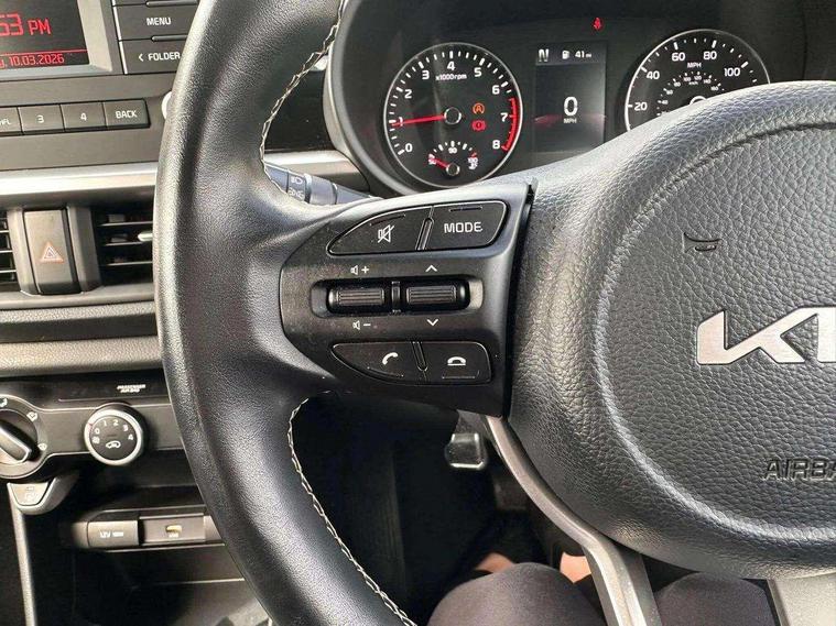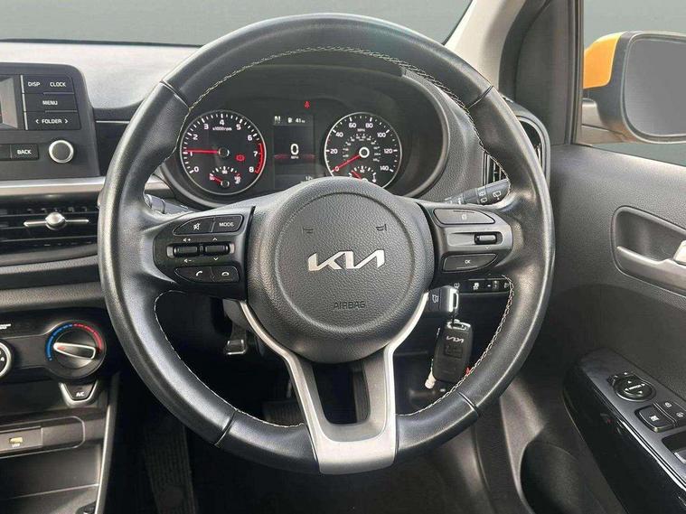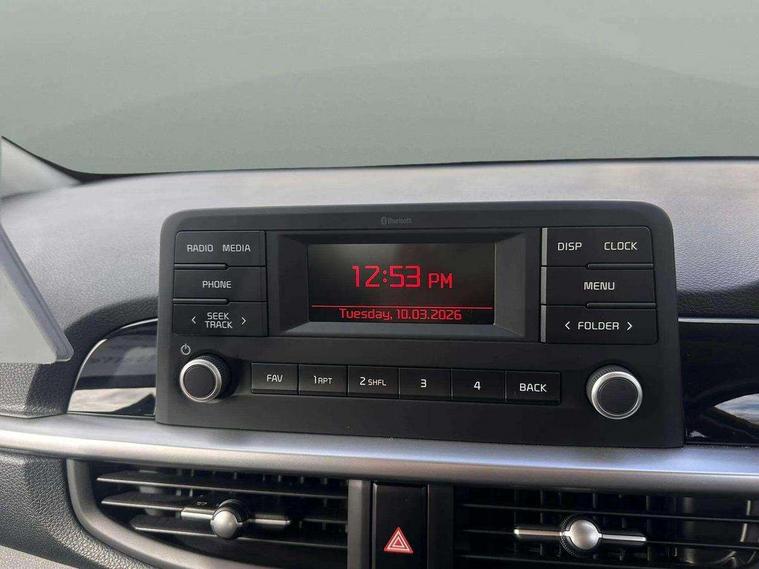 3.8" monochrome audio display with RDS and DAB, Emergency call service, Emergency stop signalling system, External temperature gauge, Motor driven power steering, Tachometer, Tailgate, Trip computer, 4 speaker audio system, Bluetooth with music streaming, Steering wheel mounted controls, USB ports for connection of a media device, Automatic headlight control system, Black radiator grille with chrome surround, Body colour bumpers, Body colour mirrors and door handles, Day/night rear view mirror, Daytime running lights, Electric adjustable heated door mirrors, Front and rear electric windows with drivers's auto up/down function, Headlamp levelling, Heated rear window, High mount brake light, MFR - Multi Focus Reflector halogen headlights with black bezel, Rain sensor, Rear fog lights, Rear side wing doors, Rear wash/wipe, Speed variable front wipers, Tinted glass, Visible VIN plate, Welcome and follow-me home light functionality, 1 x rear coat hook, 12V power point front, 2 seat bench in 2nd row, 3 x passenger assist grips, 60/40 split/folding 2nd row of seats, All round height adjustable headrests, Cupholders in centre console, Driver and front passenger sunvisor with vanity mirror, Driver seat height adjust, Front cabin lights, Glovebox, High gloss lower centre fascia trim, door armrest and air vents, ISOFIX Child seat top tethers and anchor fixings, Leather trimmed steering wheel and gearshift, Luggage area light, Luggage area parcel shelf, Manual air conditioning, Passenger front seatback pockets, Premium cloth upholstery, Silver paint finished interior door handles, Single front passenger seat, Slide/reclining front seats, Tilt adjustable steering wheel, Advanced Driver Assistance Pack - Picanto, 2 x 3-point rear seatbelts, ABS/EBD, Automatic unlocking of doors in case of impact, Dual front airbags, ESC + BAS + VSM + HAC, Front passenger airbag cut-off switch, Front seatbelt height adjusters, Front seatbelt pretensioners + load limiters, Hill hold control, Knee airbags, Rear child proof door locks, Seatbelt warning, Side impact protection, Torque vectoring brake based and straight line stability (SLS), Traction control, Twin curtain airbags, Twin front side airbags, Tyre pressure monitoring system, Anti theft alarm, Engine immobiliser, Folding key, Locking wheel nuts, Remote central door locking, 14" alloy wheels, Tyre mobility kit,