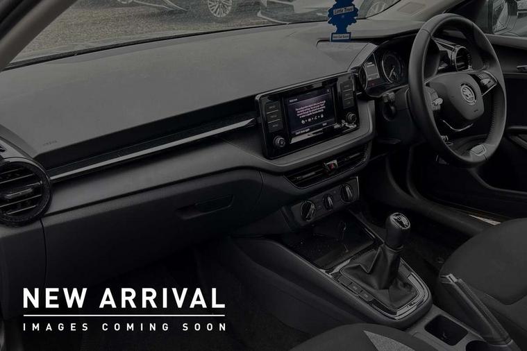 Bluetooth connection, Driver alert system - DAS, Electromechanical power steering, Exterior temperature gauge, Lane assist including road edge detection, Multifunction trip computer in black and white, Service interval indicator, Speed limiter, 2x USB-C in the front (for data transmission and charging), 4 speakers in front, Auxiliary socket for external MP3 player, DAB digital radio reception, Radio Swing with 6.5" colour display, Basic LED Headlights, Basic rear lights, Body colour door mirrors, Body coloured bumpers, Dimming rear view mirror with black frame, Door mirror integrated indicators, Electrically adjustable and heated door mirrors, Electrically adjustable front windows with function auto up/down, Front fog lights, Front window wiper intermittent control, Headlight range control - Automatic, Ice scraper in fuel cap, LED daytime running lights with coming and leaving home feature, Mechanical adjustable rear windows, Rain sensor, Rear LED fog light, Rear side wing doors, Rear window wiper with washing nozzles, Roof mounted spoiler, SKODA tailgate lettering in chrome, Third brake light, 2 reading lights in front and 2 reading lights in rear, 2 spoke leather multifunction steering wheel, 3 rear headrests, Backrest split and folding, Central console with fixed cup holder and storage box, Chrome handbrake release button, Fabric upholstery, Gearshift knob/handle in leather, Grain satin black interior door handles, Hand brake lever handle in leather, Height adjustable front headrests, Height adjustable front seats, Height adjustable steering wheel, ISOFIX and TopTether anchorage points to the outer rear seats, ISOFIX and TopTether on the front passenger seat, Luggage compartment lighting, Manual air conditioning, Manually adjustable lumbar support in front seats, Pollen filter, Rear seat bench unsplit, Single front passenger seat, Storm grey headlining, Sun visors with mirror and airbag label on passenger side, Ticket holder, 3-point height adjustable front seats belts with pretensioner and force limiter, Automatic warning lights in case of crash, Driver and passengers airbag with switch off function, e-Call+, ESC including ABS, MSR, ASR, EDS, HBA and XDS, Front and rear seat belt warning, FRONT ASSIST (AEB City and AEB Inter Urban), Front side airbags, Head airbags, One tone horn, Pedestrian protection, Three rear 3-points safety seat belts with pretensioner and force limiter including stop function for outer rear seat belts, Tyre pressure monitoring system, Anti-theft alarm system including immobiliser, interior monitoring, backup horn, and towing protection, Central locking with radio remote control, interior controls, SAFE function and 2 foldable keys, Black painted air vents, Glossy black decorative trim, Grain satin black central console cover, Grain satin black lower decorative trim, Satin black door and side trim panel in front, Anti-theft wheel bolts protection, Super-low rolling resistance tyres,