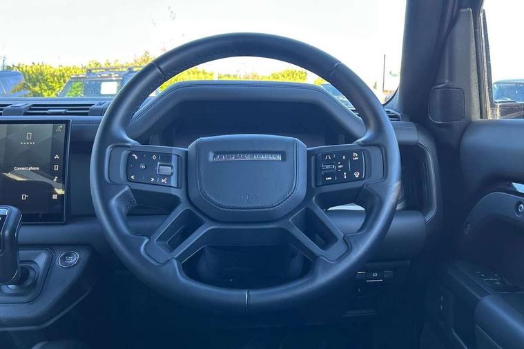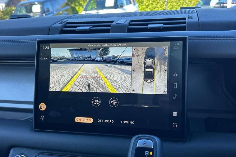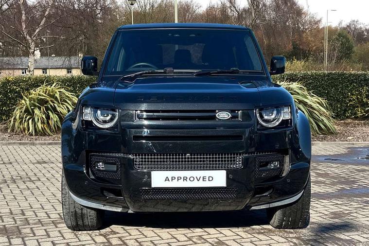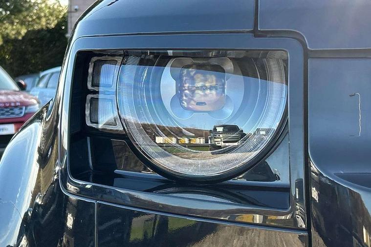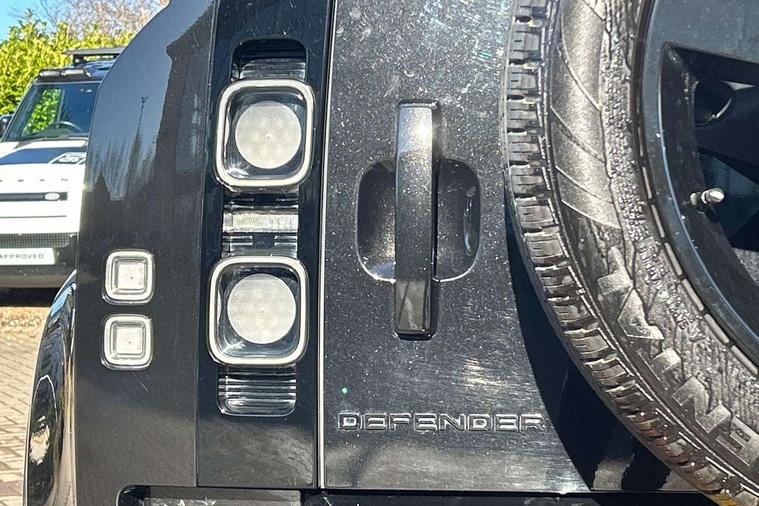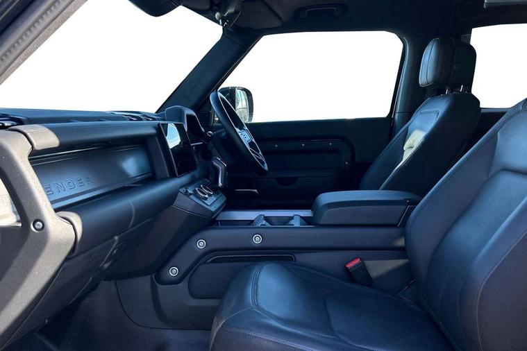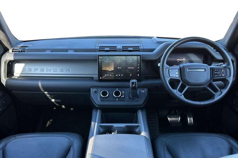 1 x USB-C (power only) & 1 x USB-C (power & data) in Row 1, 2 x USB-C in Row 2, 11.4" touchscreen, 360 degree parking aid, 3D Surround Camera with 360 View, 180 Rear View, Front Traffic Detection, Forward Vehicle Guidance, Tow Hitch Assist and clear sight Ground View, Adaptive cruise control, Android Auto, Apple CarPlay, Blind spot assist, Bluetooth system, Brake pad wear indicator, Clear exit monitor, Connected navigation pro, Driver condition monitor, Electric power assisted steering (EPAS), Head up Display, Interactive driver display, Lane keep assist, Push button start, Rear collision monitor, Rear traffic monitor, Traffic sign recognition with adaptive speed limiter, Trip computer, Wade Sensing, Wireless device charging, 8 speed automatic transmission, Adaptive dynamics, All terrain progress control, All wheel drive system, Configurable Terrain Response, Electronic active differential with brake torque vectoring, Electronic air suspension, Terrain Response 2, Twin speed transfer box, DAB Radio (Digital Audio Broadcasting), Meridian 700w surround sound audio system with 15 speakers, Pivi pro connected, Automatic headlight levelling, Automatic headlights, Centre high mounted stop light, ClearSight interior rear view mirror, Darkened LED tail lights, Electric heated/power fold door mirrors with approach lights and auto dimming driver side, Electric windows with one touch open/close and anti-trap, Follow me home lighting, Front fog lights, Heated rear window with timer, Heated windscreen, Illuminated metal treadplates with brand name script, Matrix LED headlights with signature DRL, Panoramic rear side glass, Privacy glass, Puddle lights, Rain sensing windscreen wipers, Rear fog lights, Rear wiper, Side hinged tailgate, Sliding panoramic roof, Standard tail door, Trailer stability assist, X badge, 12V power socket in loadspace, 14 way heated and cooled electric driver memory front seats with 4 way manual winged headrests, 3 seat bench in 2nd row, 40:20:40 folding, heated rear seats with centre armrest, Alpine lights, Bright metal pedals, Configurable cabin lighting, Domestic plug socket, Durable rubber cabin flooring, Durable rubber loadspace flooring, Electric reach + rake adjustable steering column, Electrically adjustable steering column, Flat load space floor tray, Footwell lights, Front head restraints, Heated steering wheel, Loadspace cover, Loadspace Hook, Multifunction steering wheel, Overhead stowage for sunglasses, Rear headrests, Rear ISOFIX, Rear reading lights, Signature interior upgrade, Single front passenger seat, Soft close tail door, Standard seat configuration, Storage glovebox, Sunvisors with illuminated vanity mirrors, Twin front cupholders, Non-smoker package, Online pack with data plan - Defender, 5 x 3 point seatbelts, ABS, Brake hold function, Cornering brake control (CBC), Cross car beam in metallic grey powder coat brushed finish, Customer configurable autolock, Driver and passenger airbags, DSC - Dynamic Stability Control, EBD - Electronic brakeforce distribution, Electric parking brake (EPB), Emergency brake assist, Emergency braking, ESP + traction control, Front airbags with passenger seat occupant detector, HDC - Hill descent control, Hill launch assist, Low traction launch, Orange brake calipers, Remote for (e-Call, Optimised assistance call, InControl app, Climate, beep and flash and door), RSC - Roll stability control, Seat belt reminder, TPMS (Tyre pressure monitoring system), Alarm, Immobiliser, Intrusion sensor, Keyless entry, Locking wheel nuts, Secure tracker pro,
