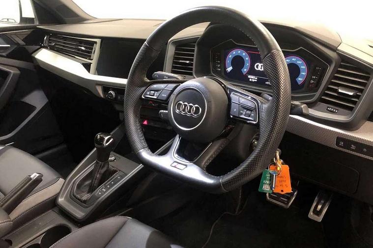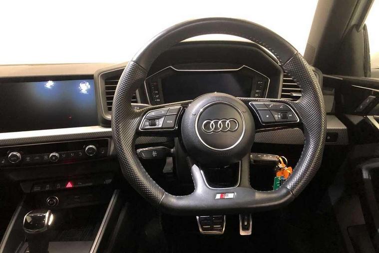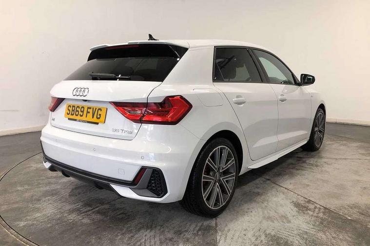 10.25" Digital instrument cluster display classis style instrument dials + speed, odometer, time, outside temperature, telephone menu + fuel level warning, Audi connect safety emergency and service including E-call, Audi drive select - power steering assistance + engine + gear shift 3 preset modes (auto, dynamic, efficiency and an Individual mode), Audi smartphone interface with connect compatible smartphone via USB directly MMI display + Nav, music, third party apps controlled via MMI controller, Automatic start/stop system, Bluetooth interface, Cruise control, Driver's information system, Electromechanical power steering, Lane departure warning system, Rear parking sensor, Service interval indicator, Speed limiter, Voice control system, Washer fluid level indicator, Sports suspension, 1 x SDXC card reader, 1 x USB type C and 1 USB type A charging points, DAB Digital radio, MMI radio plus with 8.8" colour MMI display screen and MMI touch, Auto dimming rear view mirror, Body coloured door mirrors, Door sills with aluminium inlays and S Line logo, Electric front and rear windows, Electrically adjustable, heated, folding door mirrors with integrated LED side indicator, Front side air inlets in grained matt black and C frame in titanium black, Heat insulating glass windscreen and side windows, Heated rear windscreen, LED headlights with LED rear lights + dynamic rear indicators + headlight adjustment and high beam, turning light + LED daytime running lights, Radiator grille and rear diffuser in matt titanium black, Radiator protective grille frame in matt aluminium silver, Rain and light sensors, Rear fog lights, Rear wiper, S line badges on front wings, Side front spoiler lips in grained matt black, 12V socket in centre console with two cup holders, 3 rear seats with headrests, 40:60 Split folding rear seat or folded fully, Black cloth headlining, Driver and passenger seat with manual height adjust with forward and backwards adjustment, Front and rear black floor mats with contrast stitching in fine silver, Front head restraints, Height and reach adjustable steering wheel, ISOFIX child seat mounting for front passenger and outer rear seats including top tether attachment point of outer rear seats, Leather gear knob with aluminium trim, Luggage compartment light with front and rear reading lights, Manually adjustable lumbar support in front seats, Stainless steel pedals, LED interior lighting pack - A1, Luggage compartment pack - A1, S line exterior styling pack - A1 Sportback, 3x3 point rear seatbelts, Audi pre-sense front with pedestrain and cyclist recognition, Brake assist function, Driver and front passenger airbag with front side and head airbags, Electronic Stability Control including ABS, EBD, ASR and EDL, Front and rear seatbelt reminder, Front passenger airbag deactivation switch, Hill hold assist, Seatbelt height adjustment for front seats, Seatbelt monitoring, Tyre pressure warning light, Warning triangle and first aid kit, Anti theft alarm, Anti theft wheel bolts and loose wheel warning, Immobiliser, Remote central locking with 2 foldaway keys, Aluminium trim for control switches, air vents and digital instrument cluster, Silver grey inlays polygon structure in diamond paint finish, Structured grey accent areas including air vents, door handle recesses and centre console in quartz paint finish,