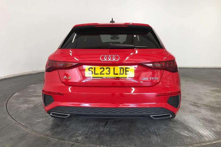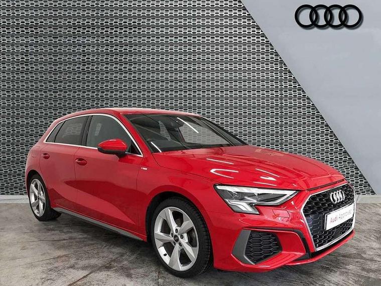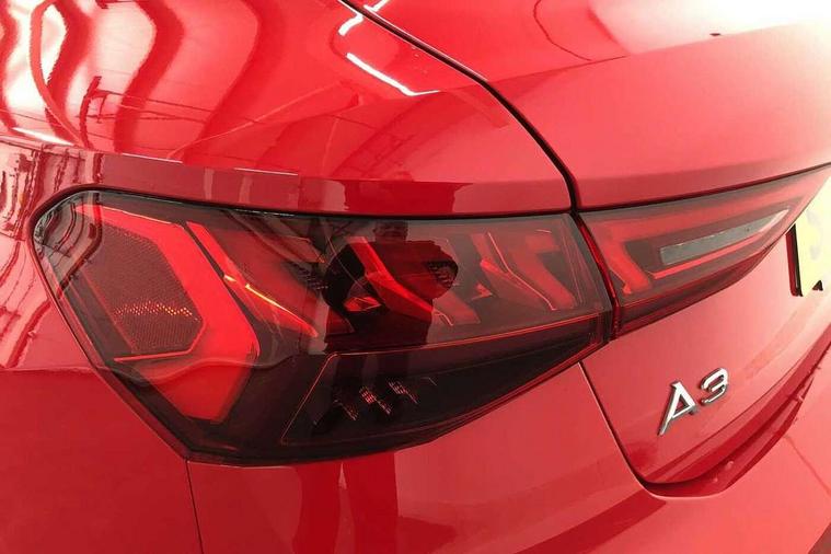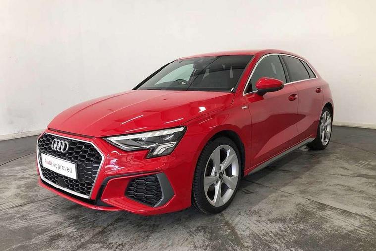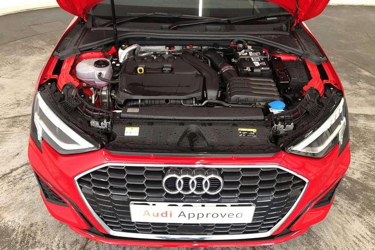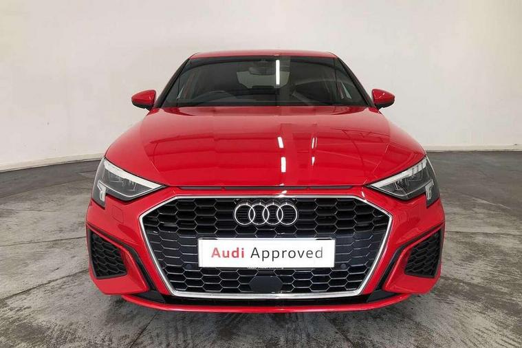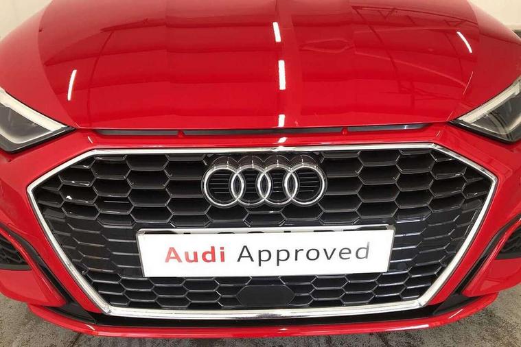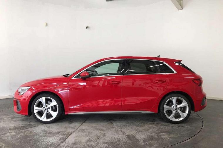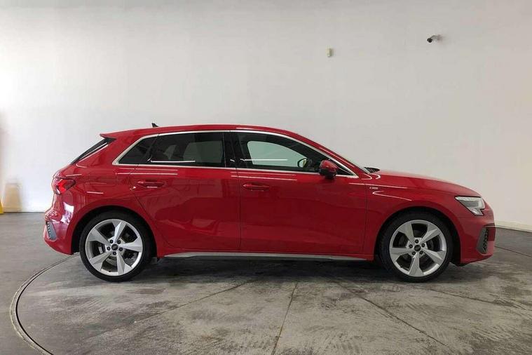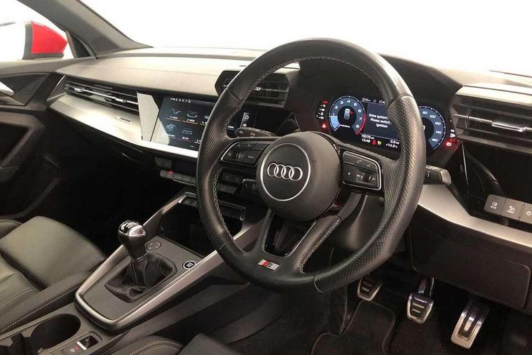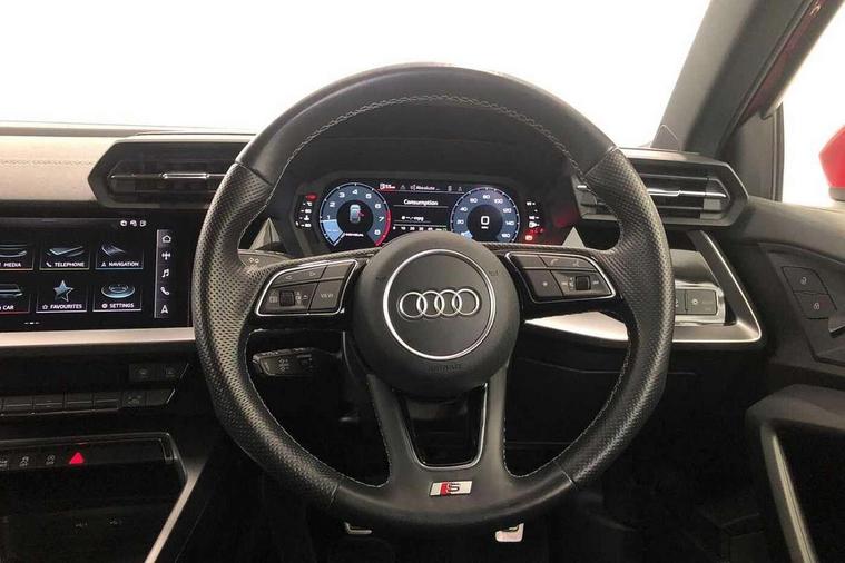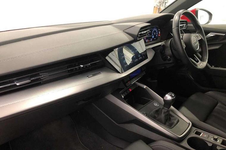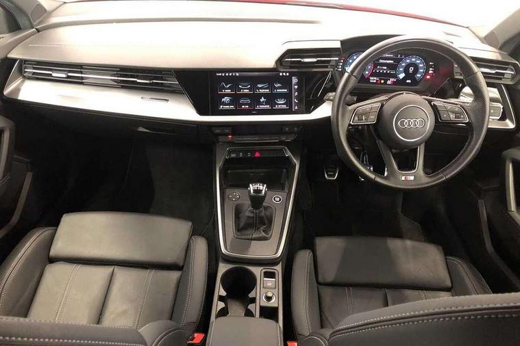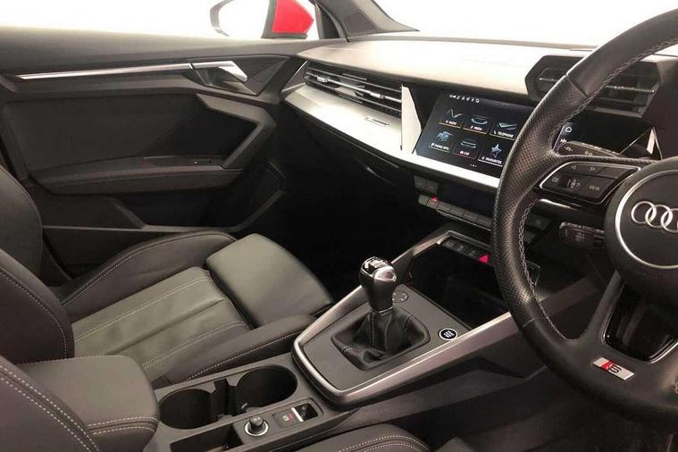 Audi drive select (Auto, Comfort, Dynamic, Efficiency and Individual), Audi smartphone interface, Audi Virtual Cockpit - 10.25" digital and colour instrument cluster, Automatic start/stop system with recuperation, Bluetooth interface, Collision avoidance assistant, Cruise control, e-Call (emergency call), Electromechanical power speed sensitive steering, Lane departure warning system, MMI Navigation Plus with high resolution 10.1" colour touch screen display, Rear parking sensors, Service indicator, Trip computer, Voice control system with natural language interaction, Sports suspension, 2xUSB-C connection with data and charging functions, 6 passive loudspeakers, DAB Digital radio, 3rd brake light, Acoustic glass windscreen, Aluminium window trim, Auto dimming frameless rear view mirror, Body colour exterior mirrors, Electrically adjustable/heated/folding/auto dimming door mirrors with integrated LED indications + kerb view function for passenger side, Front electric windows, Illuminated aluminium inserts front door sills with S logo, LED daytime running lights, LED headlights with LED rear lights and dynamic rear indicators, Light and rain sensors, Privacy glass - dark tinted rear window, rear door and side windows, Rear electric windows, Rear side air outlets in grained matt black, Rear side wing doors, Rear wiper, S line bumpers, S roof spoiler, 12V socket and storage compartment in front centre console, 3 seat bench in 2nd row, 3 spoke leather multifunction steering wheel, 40/20/40 split folding rear seat bench with cupholder, Black cloth headlining, Dual zone electronic climate control, Front and rear centre armrest in leather, Front and rear headrests, Front/rear floor mats, Height and reach adjustable steering wheel, Illuminated vanity mirror, Interior lighting - glove compartment light and right hand side, Luggage compartment floor covering, Manual boot compartment lid, Manually adjustable front seats, Seat side bolsters, Single front passenger seat, Stainless steel pedals and front footrest in black, Twin leather upholstery with front sports seats S embossed logo, Aluminium interior elements pack - A3 Sportback, LED interior lighting pack - A3 Sportback, S line styling pack - A3 Sportback, 3x3 point rear seat belts, Audi pre sense front, Driver and front passenger airbag with passenger airbag deactivation, Electronic Stabilisation Control (ESC) including ABS, ASR and EDL, First aid kit with warning triangle and 2 safety vests, Front side airbags with head airbags and interaction airbag, Pre-sense front with pedestrian and cyclist detection, Seatbelt monitoring, Tyre pressure loss indicator, Anti theft alarm, Anti-theft wheel bolts, Electronically operated child lock, Immobiliser, Remote control central locking, Accent surfaces in the dashboard and centre console in platinum grey silk effect paint finish, Dark spectrum aluminium inlays,