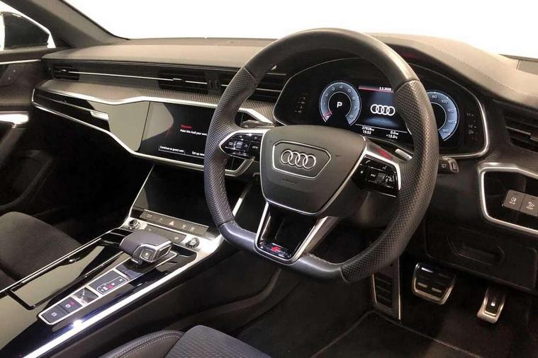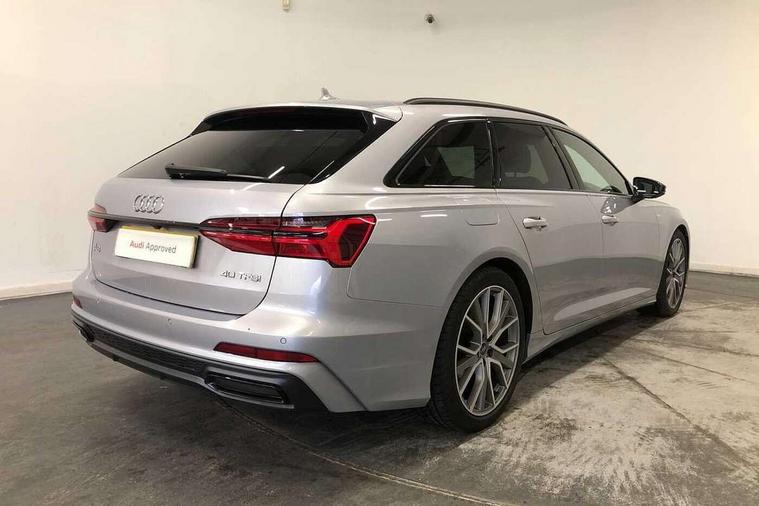 7" high resolution colour driver information display system, Audi connect safety and service (e-call), Audi connect with Amazon Alexa Integration, Audi drive select, Audi parking system plus - acoustic and visual park assist system for front and rear, Automatic start/stop system with coasting functionality, Bluetooth interface, Lane departure warning system, Power operated tailgate, Progressive steering, Rear view camera, Service interval indicator, Smartphone interface includes wireless Apple carplay/Android Auto, Voice control system, Sports suspension, Audi front music interface, Audi sound system, Auxiliary input socket, DAB Digital radio, USB connection, All weather LED headlights, Black roof rails, Electric front/rear windows, Frameless auto dimming interior rear view mirror, Front intermittent wipers, Gloss black highlights on the exterior area of the Audi Single frame, Gloss black highlights on the front and rear bumpers, Gloss black highlights on the radiator grille, Gloss black highlights on the side windows trim strips, Headlight washers, Heat insulating darkened glass in side and rear windows, Heat insulating glass in windshield, LED rear lights, LED signature front daytime running light, LED third brake light, Matt black rear diffuser with diffuser strip and tailpipes in chrome, Matt black side air intake grille with inlay in matt aluminium, Privacy glass, Rain and light sensors, Rear roof spoiler, Rear side wing doors, Rear wiper, 2 zone deluxe electronic climate control, 4 way electric lumbar support for driver and front passenger, 40/20/40 split folding 3 rear seat bench in 3 parts with rear centre armrest, Black cloth headlining, Black front and rear carpet floor mat, Black steering wheel insert, Electrically adjustable front seats with driver memory, Front centre armrest, Front head restraints, Heated front seats, Height/reach adjust steering wheel, Illuminated door sill trims with S logo, Illuminated sun visors with vanity mirrors, ISOFIX child seat mounting and Top Tether with front passenger airbag deactivation, Leather gear knob, Luggage compartment system, Rear headrests, Single front passenger seat, Stainless steel pedals and foot rest, LED Interior Ambient Lighting Pack - A6, Non smoking pack - A6, Technology pack - A6, 3 point seatbelts on all seats, Airbags - Front side, front and rear including head, Audi pre-sense front, Black seatbelts, EBD - Electronic brakeforce distribution, Electromechanical parking brake, Electronic Stability Control (ESC) including ABS, ASR and EDL, Extended pedestrian protection measures, Manual child proof rear door locks, Seatbelt monitoring, Tyre pressure warning light, Warning triangle and first aid kit, Anti theft alarm with tow away protection, Anti-theft wheel bolts and wheel loosening detection, Immobiliser, Keyless Go, Remote central locking, Carbon twill inlays, 20" 5 V spoke star design Audi sport cast aluminium alloy wheels in matt titanium look,