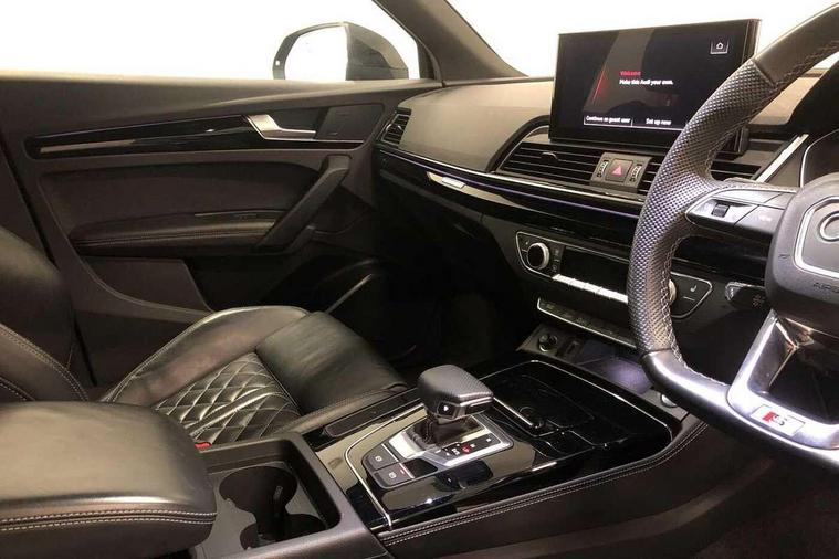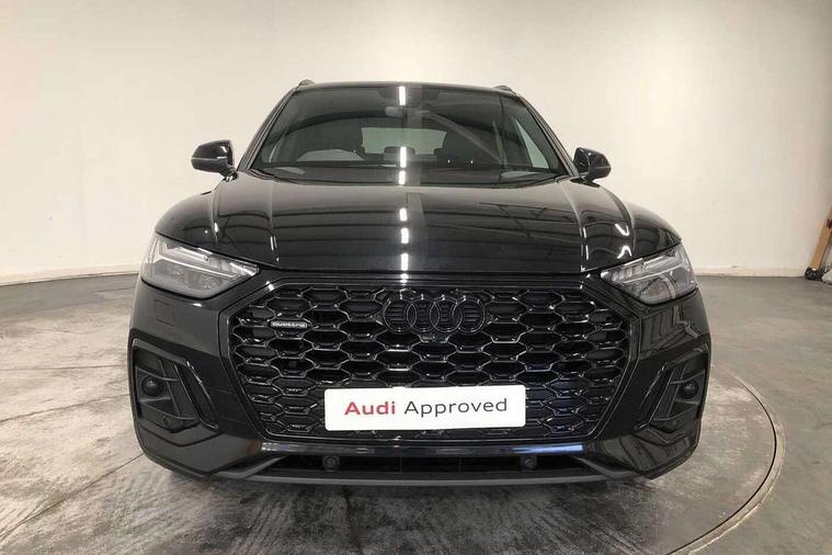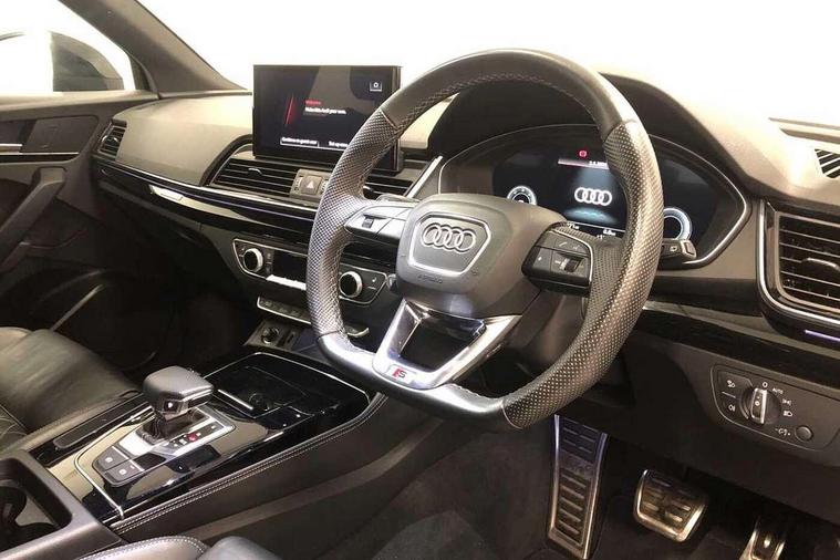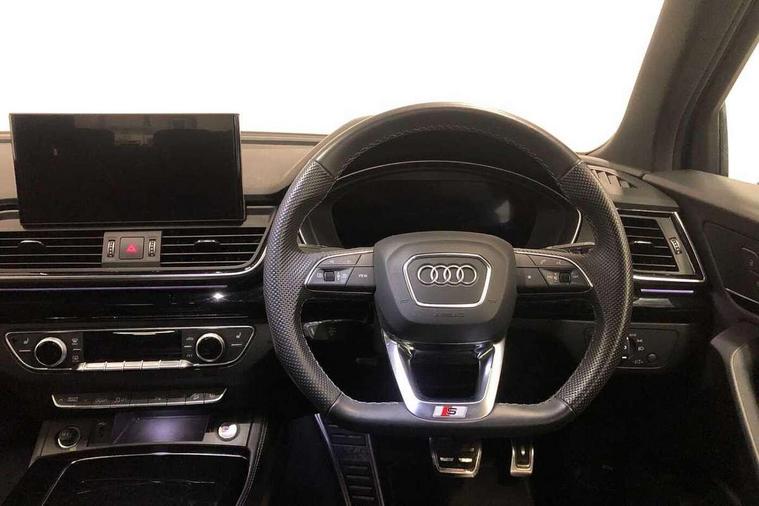 Audi connect safety and service (e-call), Audi connect with Amazon Alexa Integration, Audi drive select, Audi virtual cockpit plus with 12.3" screen and three different layout designs, Audi wireless smartphone interface, Automatic start-stop system with coasting functionality and efficiency programme, Bluetooth interface, Electro - mechanical power assisted steering, MMI navigation plus with 10.1" touch screen, Power tailgate, Reversing camera, Service interval indicator, Voice control system with Audi hotword activation "Hey Audi", Diesel particulate filter, Quattro on demand, S line sports suspension, 2 x USB charging port with aux input socket, DAB Digital radio, Acoustic windscreen, Audi beam with Audi rings logo, Audi matrix LED headlights with dynamic front and rear indicators, Audi rings at front and rear in black, Audi rings decal on rear doors, Auto dimming door mirrors, Auto dimming rear view mirror, Automatic headlights and windscreen wipers, Black door mirrors, Black roof rails, Body colour underbody protection, Chrome plated exhaust trims, Daytime running lights, Door sills in Selenite silver, Electric adjustable/heated/folding door mirrors, Front air inlet surrounds in aluminium, Front and rear electric windows, Headlight washers, High gloss black B pillar trims and triangular rear door trim, High level LED brake light, Rear chrome trim strip below lights, Rear privacy glass and rear side windows, Rear side wing doors, Rear spoiler, Rear wiper, Roof bars, Without model and engine badging at rear, 3 rear headrests, 4 way electric lumbar support for driver and front passenger, 40:20:40 split folding 3 rear bench seat in 2nd row with rear centre armrest, Black cloth headlining, Comfort front centre armrest, Contrast stitching on seats, steering wheel and gear lever gaiter, Deluxe 3 zone electronic climate control, Electrically adjustable front seats, Fine Nappa leather upholstery with diamond pattern contrast stitching + front sport seats with S embossed logo, Front head restraints, Front/rear floor mats, Gear lever in black leather, Heated front seats, Height/reach adjustable steering column, Illuminated door sill trims with S logo, ISOFIX child seat mounting and top tether, Rear seat bench plus, Removable luggage compartment floor, Single front passenger seat, Stainless steel pedals, Sunvisors with vanity mirrors, Trunk roller cover, Artificial leather pack - Q5, Black styling package - Q5 Edition 1, Extended LED Interior multi coloured Lighting Pack - Q5, 3 point seatbelts on all seats, 6 airbags - Driver, front passenger, curtain and side airbags, Electrically operated child locks on rear doors, Electromechanical parking brake, Electronic stabilisation control including ABS, ASR and EDL, Front and rear brake calipers painted in red, Front passenger airbag deactivation, Hill descent control, Hill hold assist, Multi collision brake assist, Pop-up bonnet for pedestrian protection, Pre sense city, Seat belt force limiter, Seatbelt monitoring, Tyre pressure warning, Warning triangle and first aid kit, Anti theft alarm, Anti-theft wheel bolts, Keyless Go access/ignition system, Remote central locking, Piano black finish inlay,